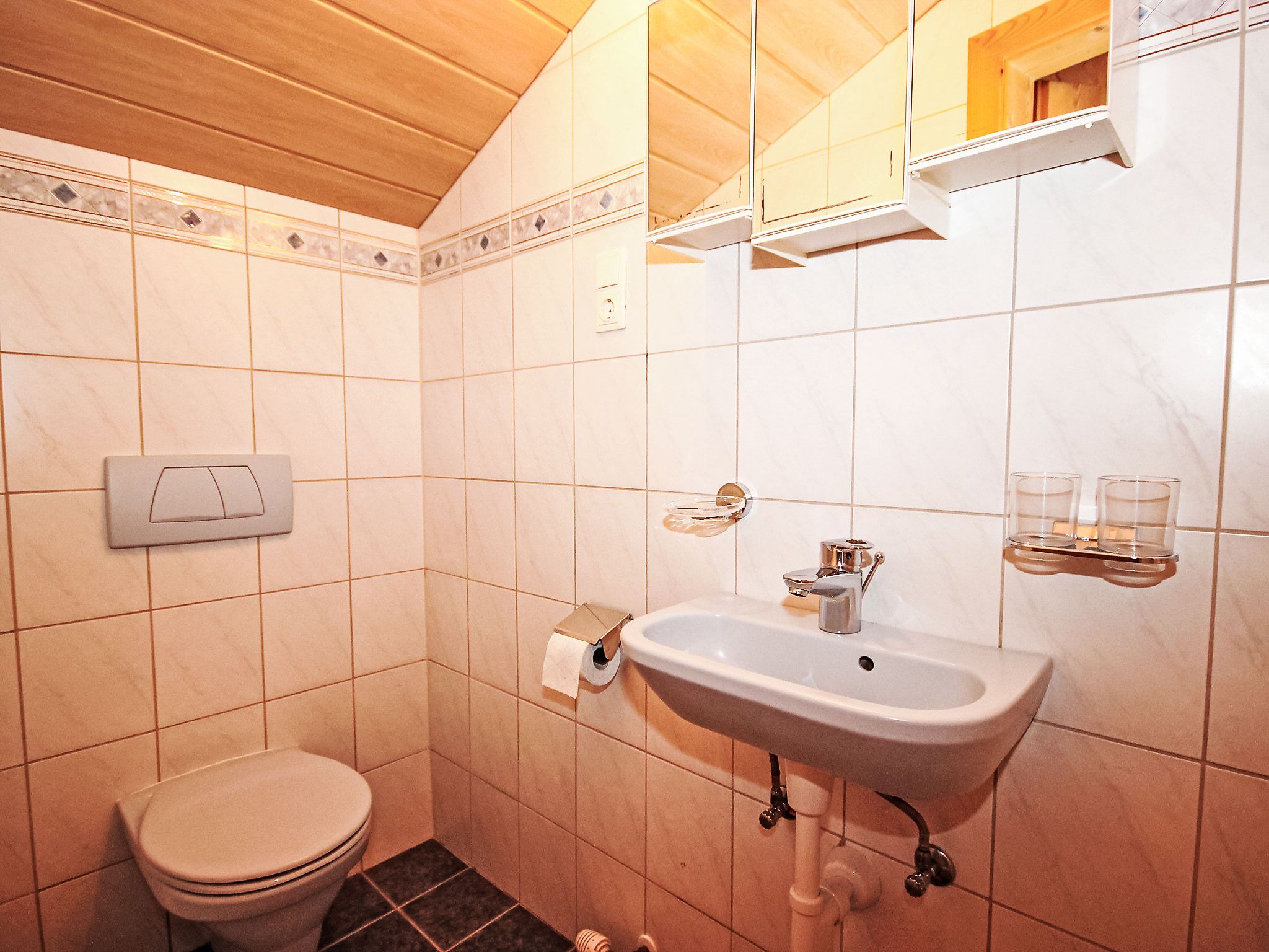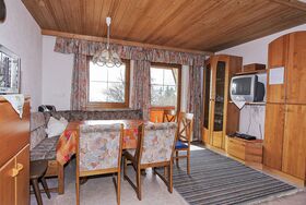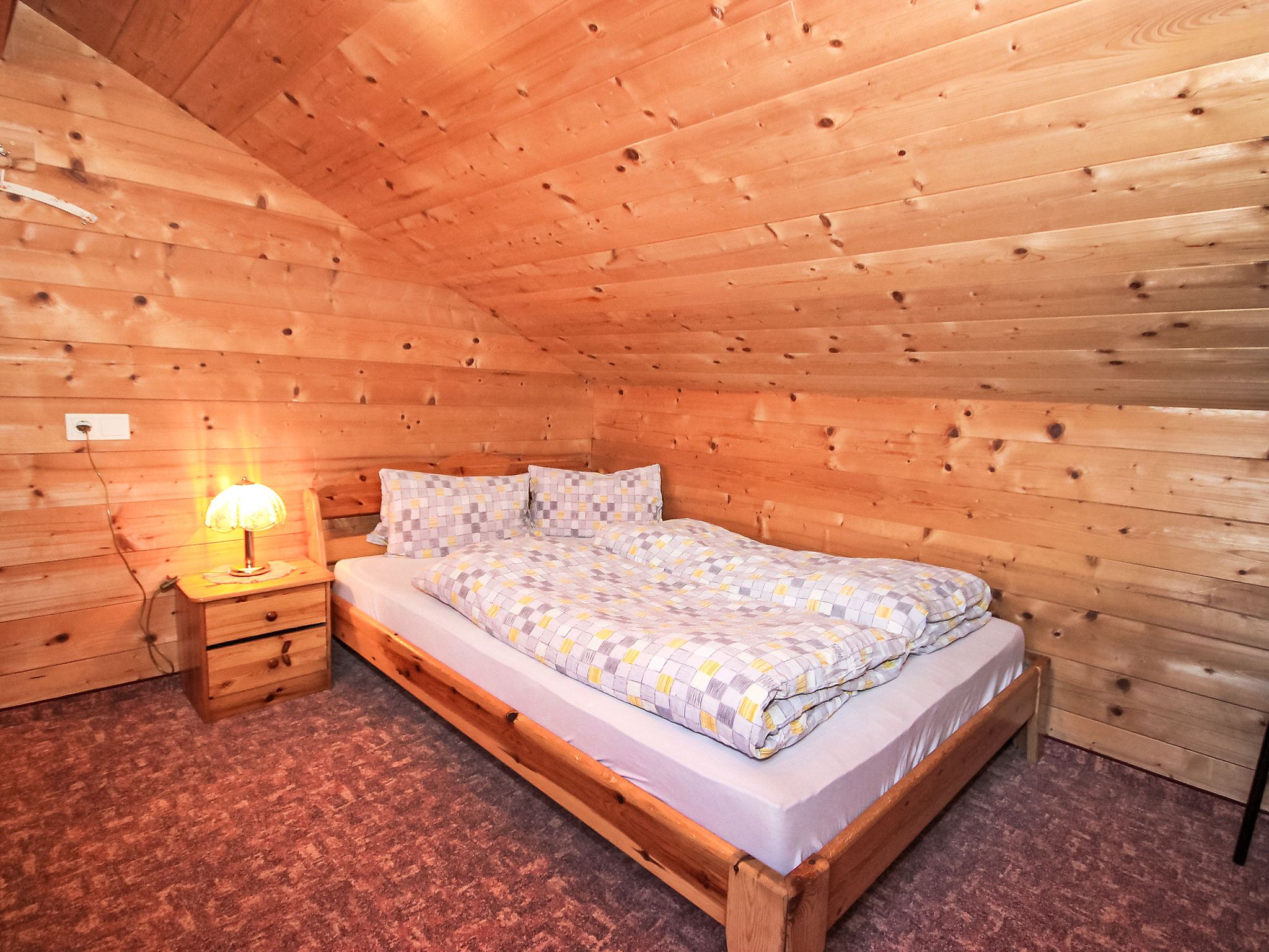 5-Zimmer-Wohnung 100 m2 auf 2 Stockwerken im 1. Stock. Rustikal und gemütlich eingerichtet: Eingang. Wohn-/Esszimmer mit Essecke und Sat-TV. Ausgang zum Balkon. 1 abgeschrägtes Zimmer mit Dachfenster mit 1 Diwanbett, 1 Doppelbett und Dusche/WC. 1 Doppelzimmer. Ausgang zum Balkon. 1 Zimmer mit 2 Betten und 1 x 1 Etagenbetten. Offene Küche (4 Kochplatten, Backofen, Geschirrspüler, Mikrowelle). Bad, sep. WC. Dachgeschoss: (steile Treppe) 1 abgeschrägtes Zimmer mit Dachfenster mit 1 franz. Bett (140 cm, Länge 200 cm), Waschbecken und sep. WC. 2 Balkone. Balkonmöbel. Herrliche Panoramasicht auf die Berge und die Landschaft. Zur Verfügung: Internet (Wireless LAN, extra). Bitte beachten: Rauchmelder. In einem 3 Bett Zimmer steht ein Etagenbett, unten können 2 Personen schlafen, eine Person schläft oben. Die Wohnung darf maximal mit 10 Personen belegt werden (inklusive Gitterbett). Bei Belegung mit weniger Personen als der maximalen Personenzahl stehen nicht alle Schlafzimmer zur Verfügung.
