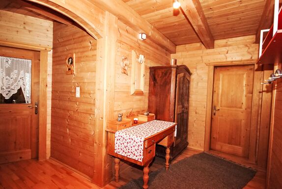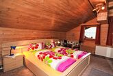 4-Zimmer-Wohnung 85 m2, im Dachgeschoss. Teilweise abgeschrägt, gemütlich und mit viel Holz eingerichtet: Eingang. 1 Doppelzimmer mit Waschbecken. 1 Zimmer mit 1 Diwanbett, 1 Doppelbett und Waschbecken. 1 Zimmer mit 1 Diwanbett und 1 Doppelbett. Wohnküche (4 Kochplatten, Backofen) mit 1 Diwanbett, Essecke und Sat-TV (Flachbildschirm). Ausgang zum Balkon. Bad/Dusche/WC. Grosser Balkon. Balkonmöbel. Herrliche Sicht. Zur Verfügung: Internet (Wireless LAN, extra). Bitte beachten: geeignet für Familien. Rauchmelder. Die Wohnung darf mit maximal 6 Personen belegt werden (inklusive Gitterbett). 2 Zusatzbetten für eine 7. und 8. Person sind gegen Gebühr möglich.