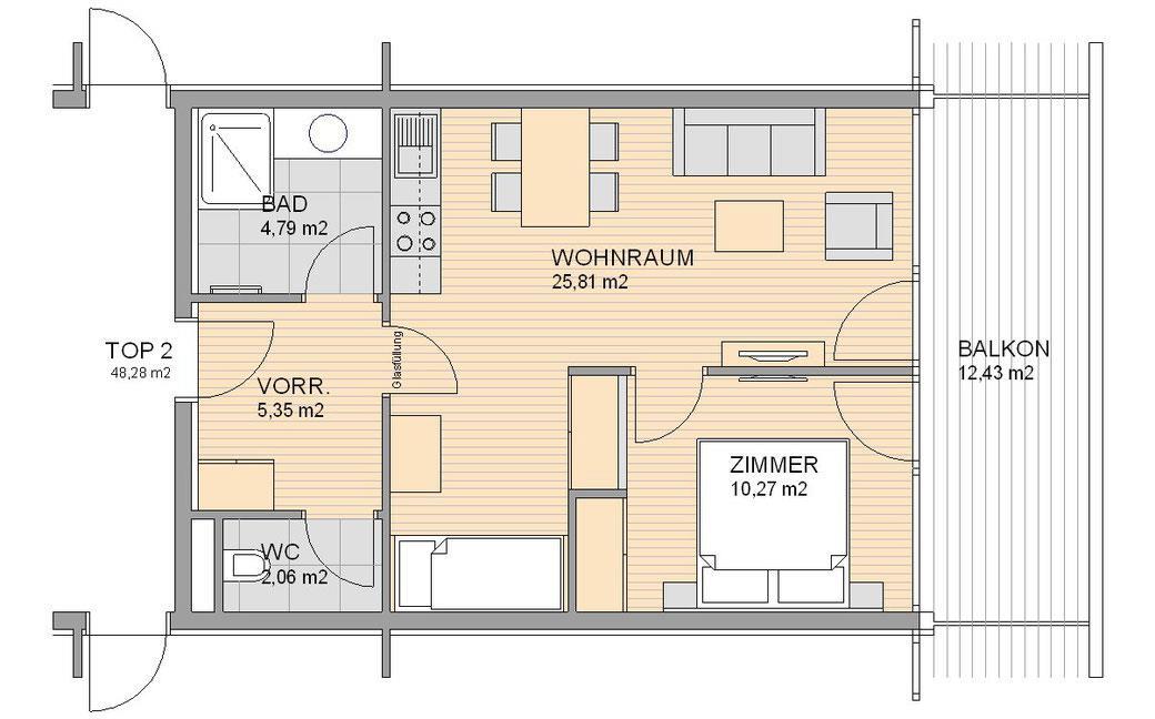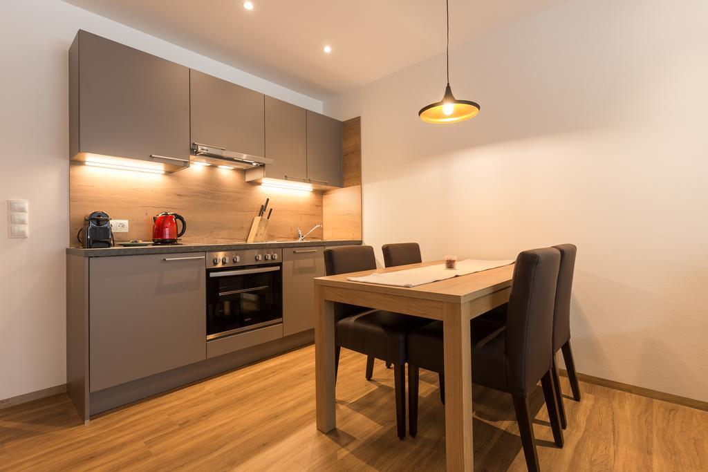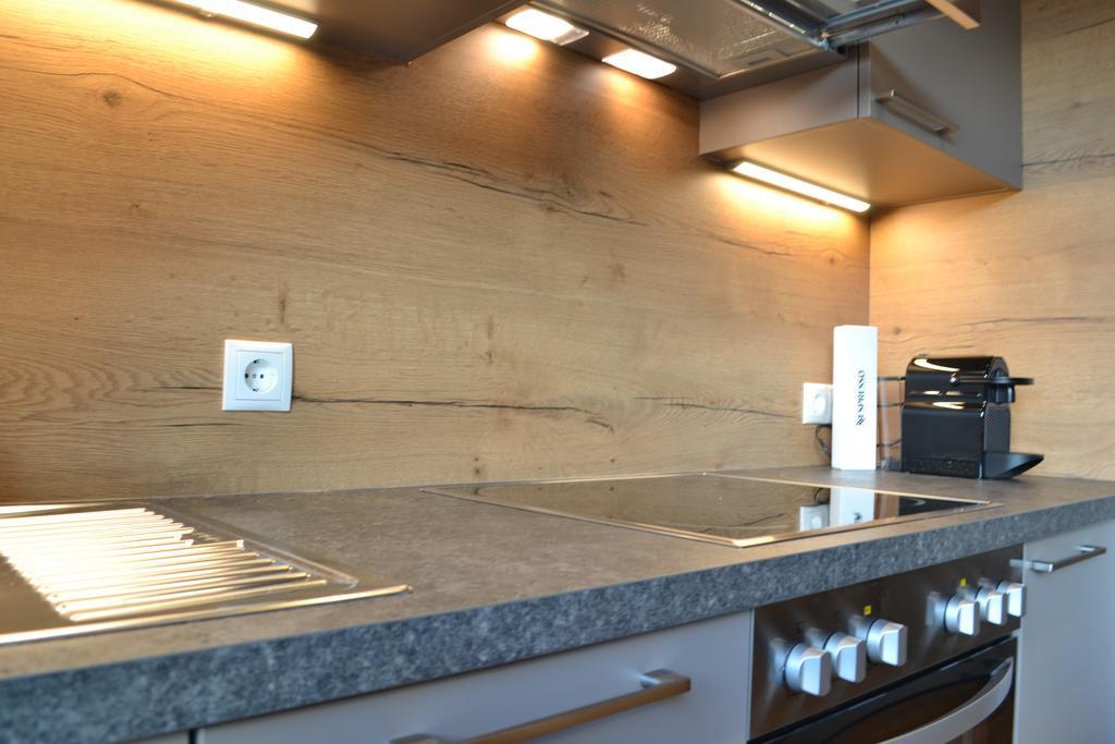 Neu errichtetes Apartment WETTERKREUZ - Komfortablen 48 m² Wohnfläche nur für Sie: moderne, großzügige Wohnküche (komplett ausgestattet mit Cerankochfeld, Backofen, Kühlschrank mit Gefrierfach, Kaffeemaschine, Geschirrspüler uvm.) mit Esstisch und Sofa, Sat-TV und einem Nischenstockbett für 2 weitere Personen; 1 Doppelzimmer mit Sat-TV; 1 Badezimmer mit Dusche; 1 separates WC; Der Balkon lädt zum Verweilen ein.