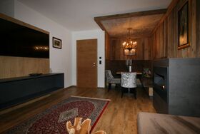Erzherzog’s Apts/Zillertal Kaiser Lodge, 3-Zimmer-Wohnung 84 m2 im 1. Stock. Sehr komfortabel und stilvoll eingerichtet: 2 Doppelzimmer, jedes Zimmer mit TV (Flachbildschirm). Wohnküche (Backofen, Geschirrspüler, 4 Glaskeramikplatten, Toaster, Wasserkocher, Mikrowelle, elektrische Kaffeemaschine) mit Schwedenofen (nur Deko), Esstisch und TV (Flachbildschirm), Radio und CD. Ausgang zum Balkon. Dusche, sep. WC, Doppelwaschbecken. Fussbodenheizung. Kleiner Balkon. Balkonmöbel. Zur Verfügung: Safe, Haartrockner. Internet (WLAN). E-Ladestation. Bitte beachten: Nichtraucher-Haus.