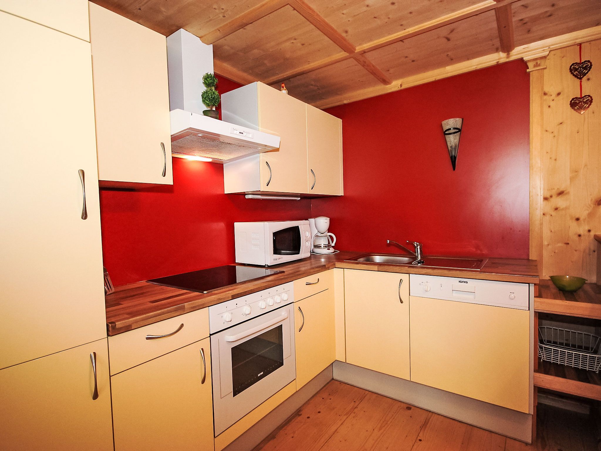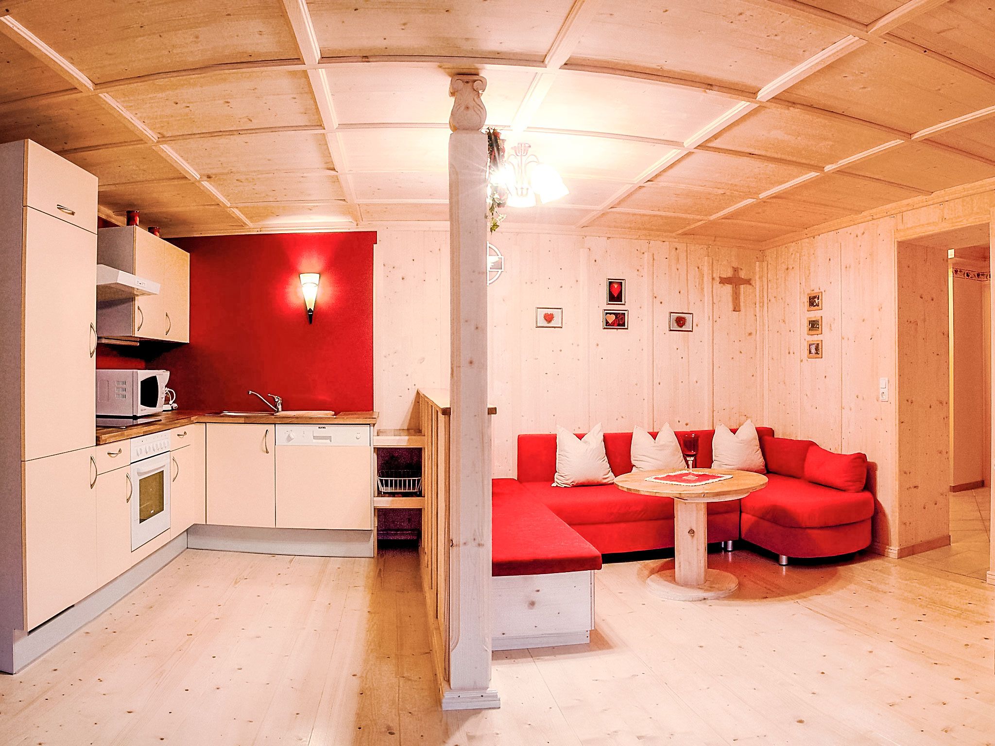 3-Zimmer-Wohnung 65 m2. Komfortabel und geschmackvoll eingerichtet: Eingang. Wohn-/Esszimmer mit Esstisch, Sat-TV, Radio und CD. Ausgang zum Garten. 1 Doppelzimmer. 1 Zimmer mit 1 Bett und 1 Doppelbett. Offene Küche (Backofen, Geschirrspüler, 4 Glaskeramikplatten, Mikrowelle). Dusche, sep. WC, Doppelwaschbecken. Gartensitzplatz. Terrassenmöbel. Sehr schöne Sicht auf die Berge und die Landschaft. Zur Verfügung: Internet (Wireless LAN, gratis). Bitte beachten: Nichtraucher-Unterkunft. Die Wohnung darf maximal mit 5 Personen belegt werden (inkusive Kinderbett).