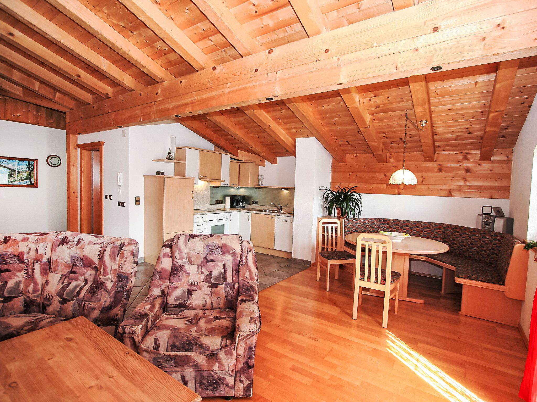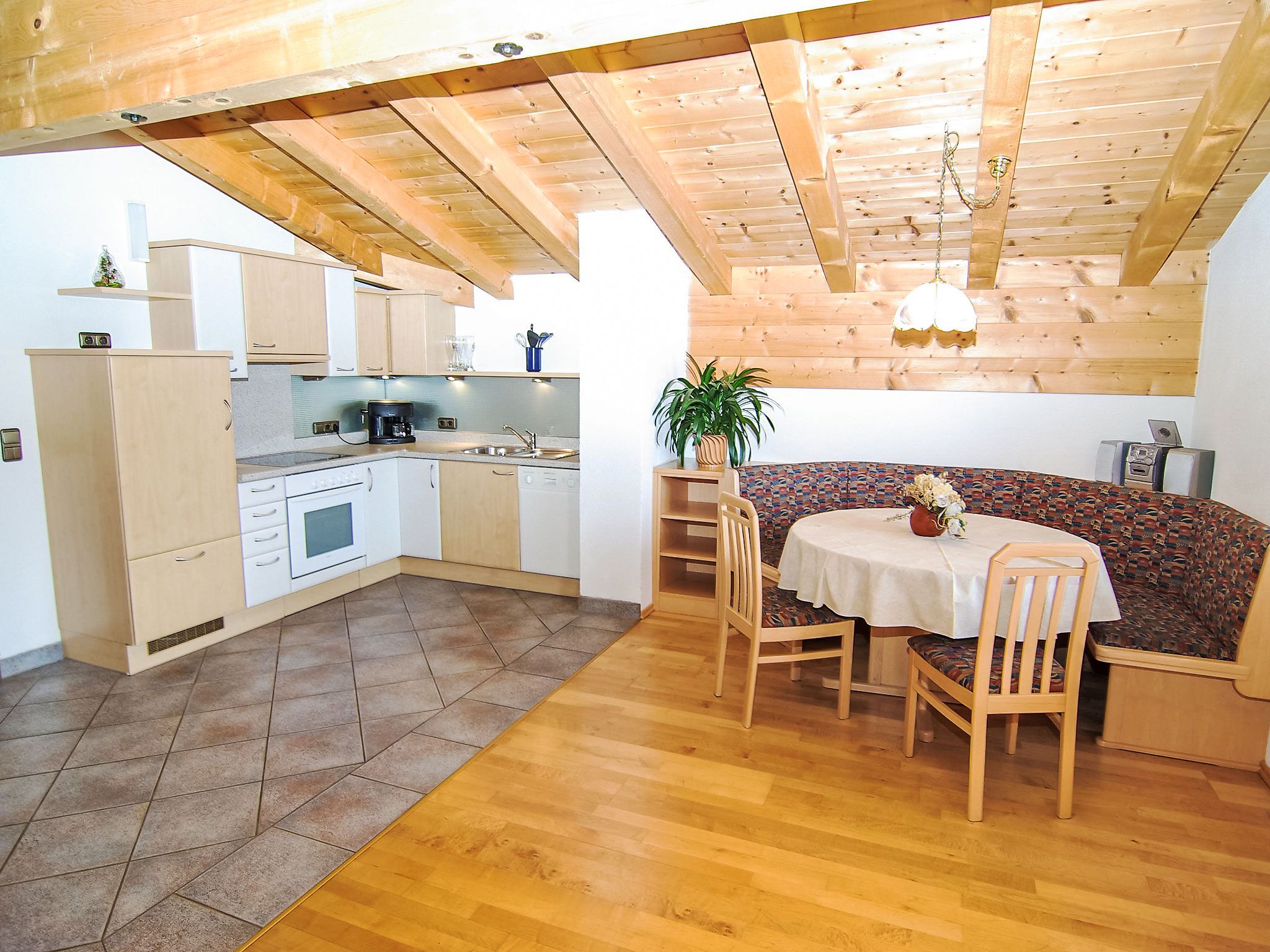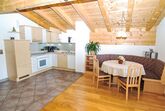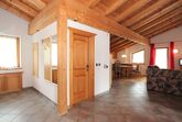 4-Zimmer-Wohnung 90 m2, im Dachgeschoss. Geschmackvoll und gemütlich eingerichtet: Eingang. 1 Zimmer mit 1 x 2 Etagenbetten, 1 Doppelbett. Ausgang zum Balkon. 2 Doppelzimmer. Wohnzimmer mit 1 Doppeldiwanbett und Sat-TV (Flachbildschirm). Ausgang zum Balkon. Offene Küche (Backofen, Geschirrspüler, 4 Glaskeramikplatten) mit Essecke und Stereoanlage. Dusche/WC. Balkon. Herrliche Panoramasicht auf die Berge, das Tal und die Landschaft. Zur Verfügung: Internet (Wireless LAN, extra). Bitte beachten: Rauchmelder. Hohe Raumhöhe, Sichtdachstuhl.