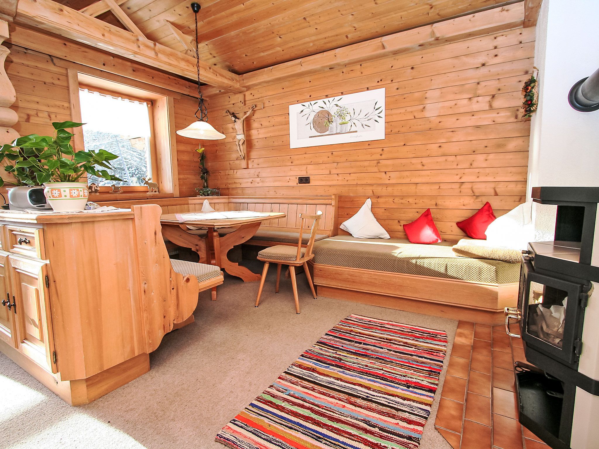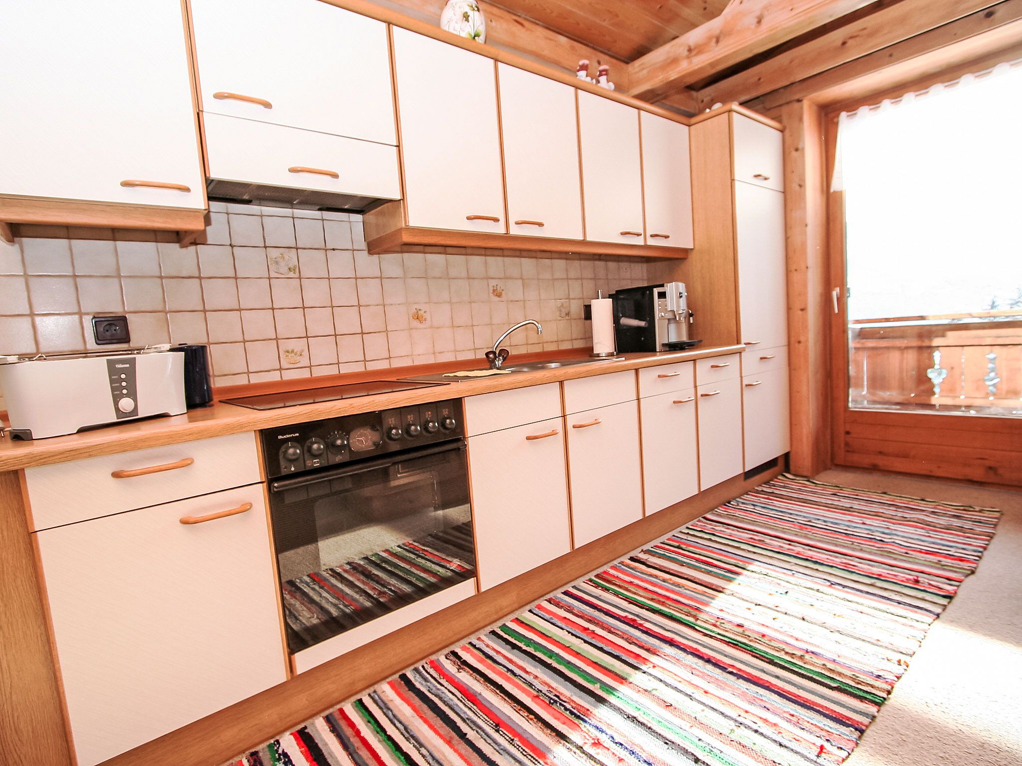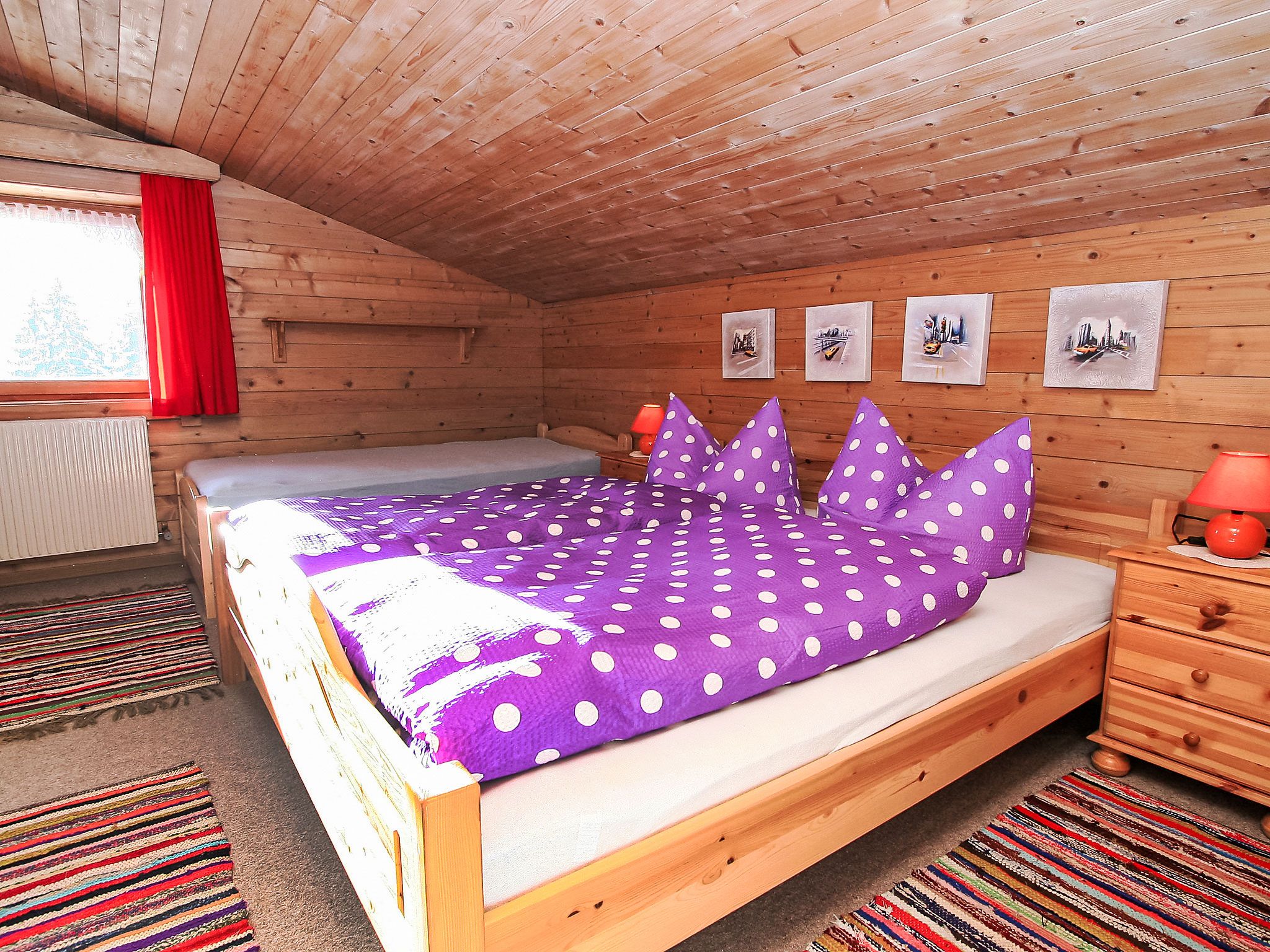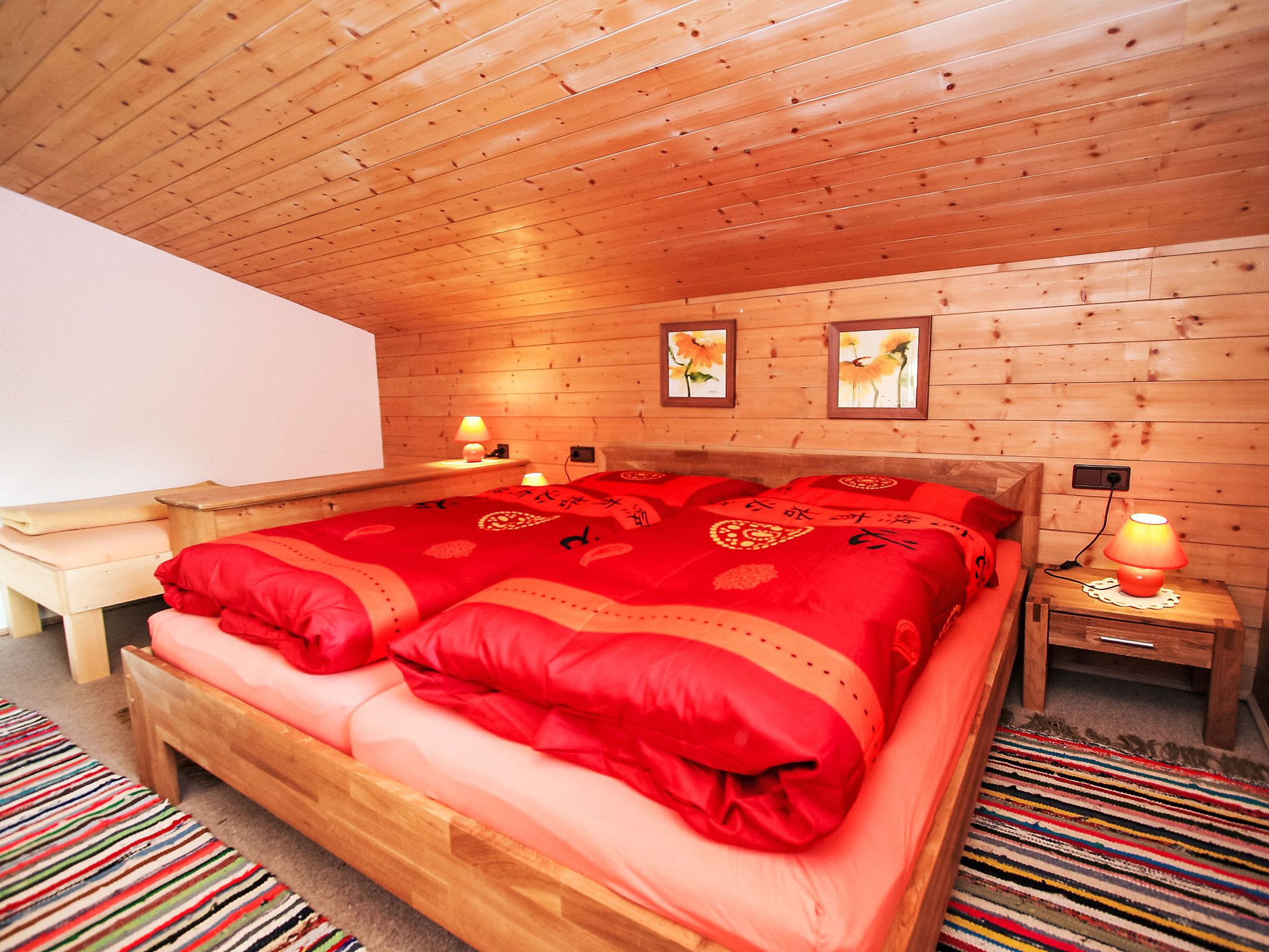 4-Zimmer-Wohnung 90 m2, im Dachgeschoss. Teilweise abgeschrägt, gemütlich eingerichtet: Eingang. 1 Zimmer mit 1 x 2 Etagenbetten. 2 Zimmer, jedes Zimmer mit 1 Bett und 1 Doppelbett. Grosse Wohnküche (Backofen, Geschirrspüler, 4 Glaskeramikplatten) mit 1 Diwanbett, Schwedenofen, Essecke und Sat-TV (Flachbildschirm), Radio. Ausgang zum Balkon. Dusche, sep. WC. Grosser Balkon. Balkonmöbel. Herrliche Panoramasicht auf die Berge, das Tal und die Landschaft. Zur Verfügung: Haartrockner. Internet (Wireless LAN, gratis). Bitte beachten: geeignet für Familien. Rauchmelder. Saeco Kaffeevollautomat und Filterkaffeemaschine vorhanden.