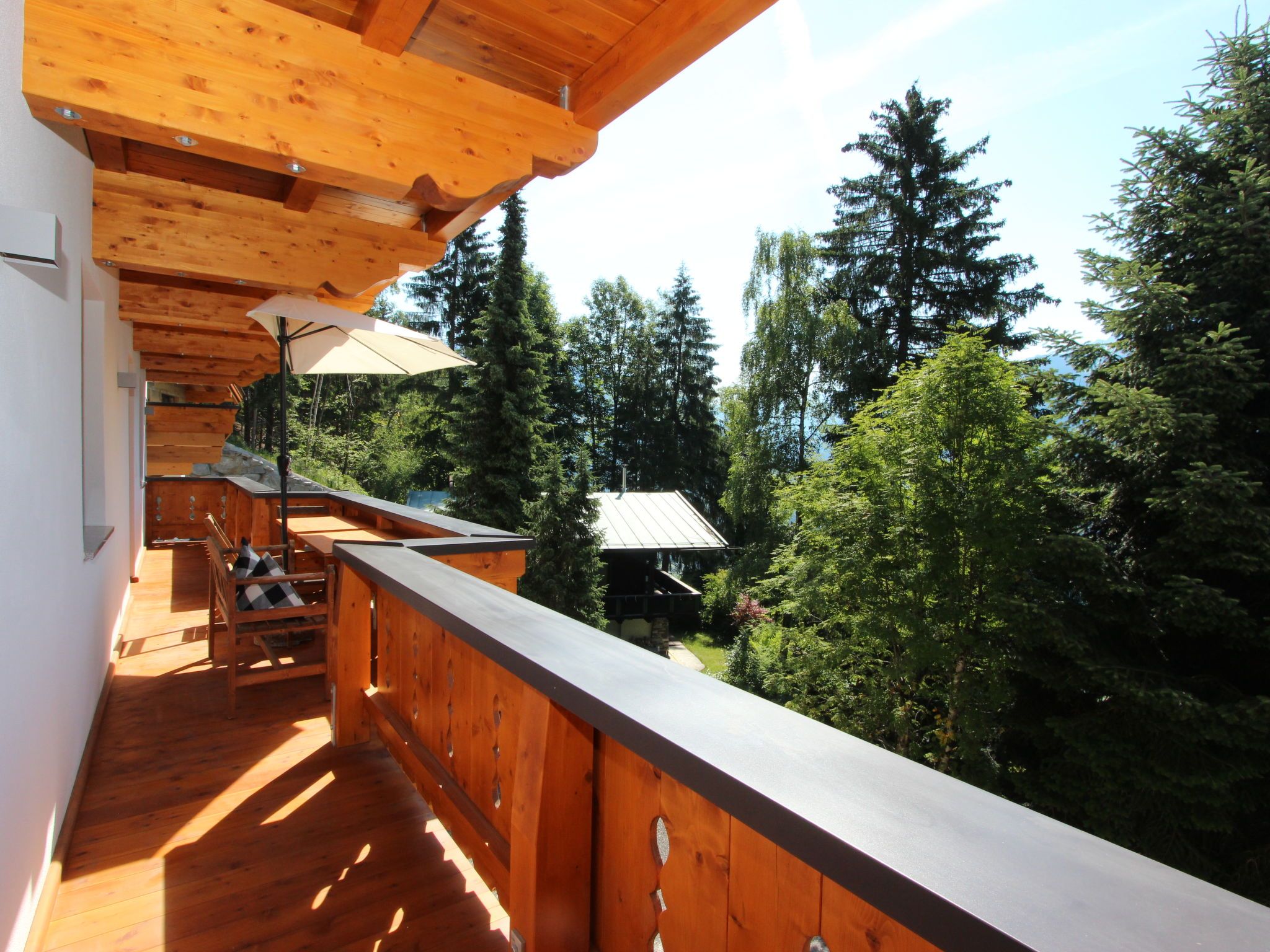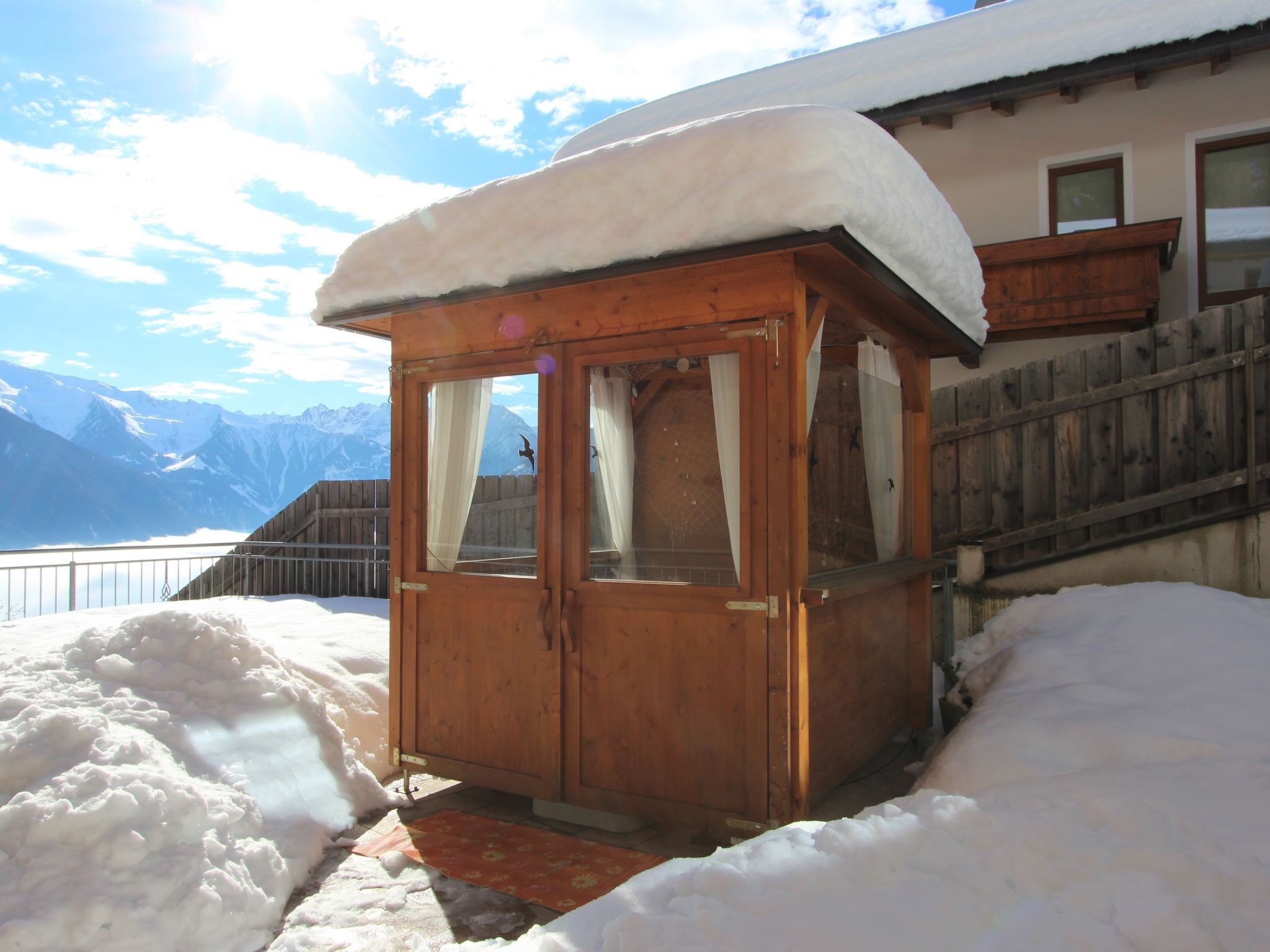 4-Zimmer-Wohnung 80 m2 im 2. Stock. Geräumig, sehr gemütlich eingerichtet: Eingang. 1 Doppelzimmer. 1 Doppelzimmer. Ausgang zum Balkon. Gepäckraum. Wohnzimmer mit Sat-TV (Flachbildschirm). Wohnküche (4 Kochplatten, Backofen, Geschirrspüler) mit Essecke und Sat-TV (Flachbildschirm). Ausgang zum Balkon. Bad/WC. Balkon, Südlage und Westlage. Balkonmöbel. Herrliche Panoramasicht auf die Berge und das Tal. Zur Verfügung: Haartrockner. Internet (Wireless LAN). Parkplatz (2 Autos). Bitte beachten: Nichtraucher-Unterkunft. Wunderbarer Außenbereich mit zahlreichen Sitzmöglichkeiten. Je 1 Saunatuch und 1 Bademantel pro Person steht kostenlos bereit. E-Bike-Laden gegen Gebühr. Keine Lademöglichkeit für E-Autos beim Haus.