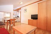 3-Zimmer-Wohnung 60 m2. Gemütlich eingerichtet: 2 Doppelzimmer. Wohn-/Esszimmer mit 2 Ausziehbetten und Kabel-TV. Offene Küche (4 Kochplatten, Backofen, Geschirrspüler, Mikrowelle). Sep. WC, Bad oder Dusche. Balkon. Zur Verfügung: Internet (WLAN, gratis). Bitte beachten: Nichtraucher-Unterkunft. Rauchmelder. 50626-060804-2020