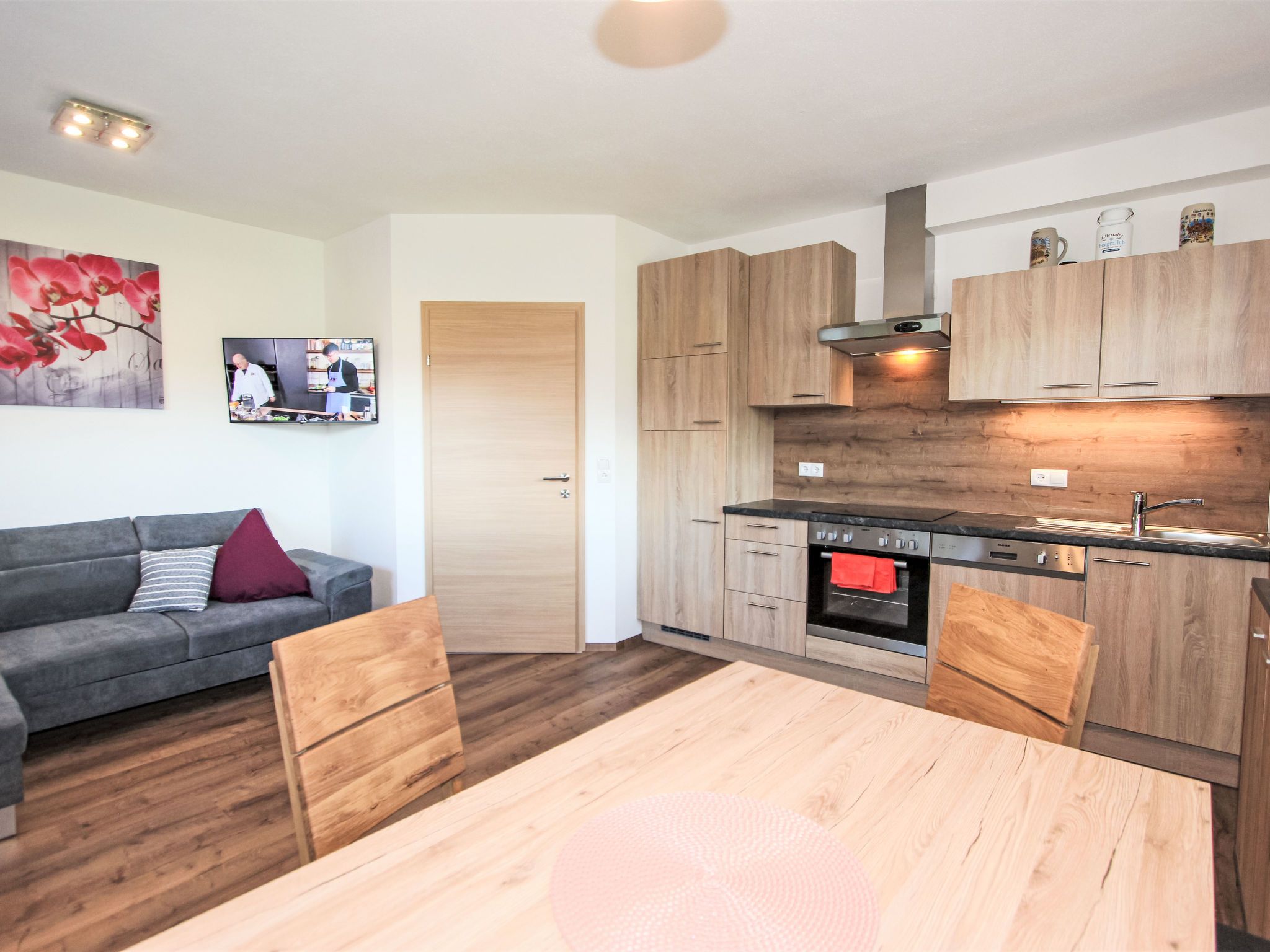 Dengg, 3-Zimmer-Wohnung 65 m2, im Erdgeschoss. Komfortabel und geschmackvoll eingerichtet: Eingang. 2 Doppelzimmer, jedes Zimmer mit Sat-TV (Flachbildschirm). Wohnküche (Backofen, Geschirrspüler, 4 Glaskeramikplatten, Toaster, Wasserkocher, Mikrowelle, elektrische Kaffeemaschine) mit 1 Diwanbett, Essecke und Sat-TV (Flachbildschirm). Ausgang zur Terrasse. Dusche/WC, sep. WC. Terrasse 20 m2 teilweise überdacht. Terrassenmöbel, Elektrogrill (mobil), Liegestühle (2). Herrliche Panoramasicht auf die Berge und das Tal. Zur Verfügung: Babybett bis 2 Jahre. Internet (Wireless LAN, gratis). Bitte beachten: Nichtraucher-Unterkunft. Eigener Eingang, Rauchmelder. Bei Belegung mit weniger Personen als der maximalen Personenzahl stehen nicht alle Wohneinheiten zur Verfügung.