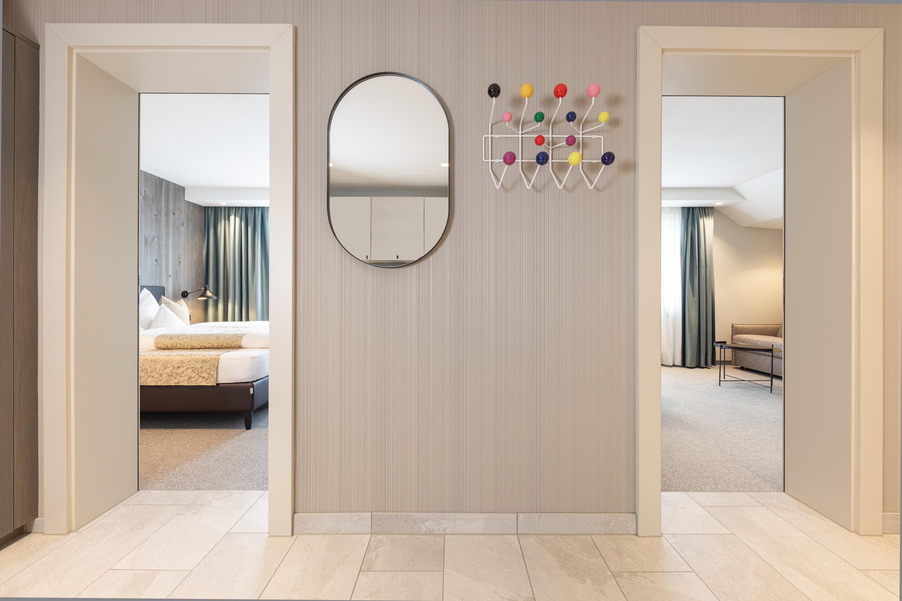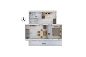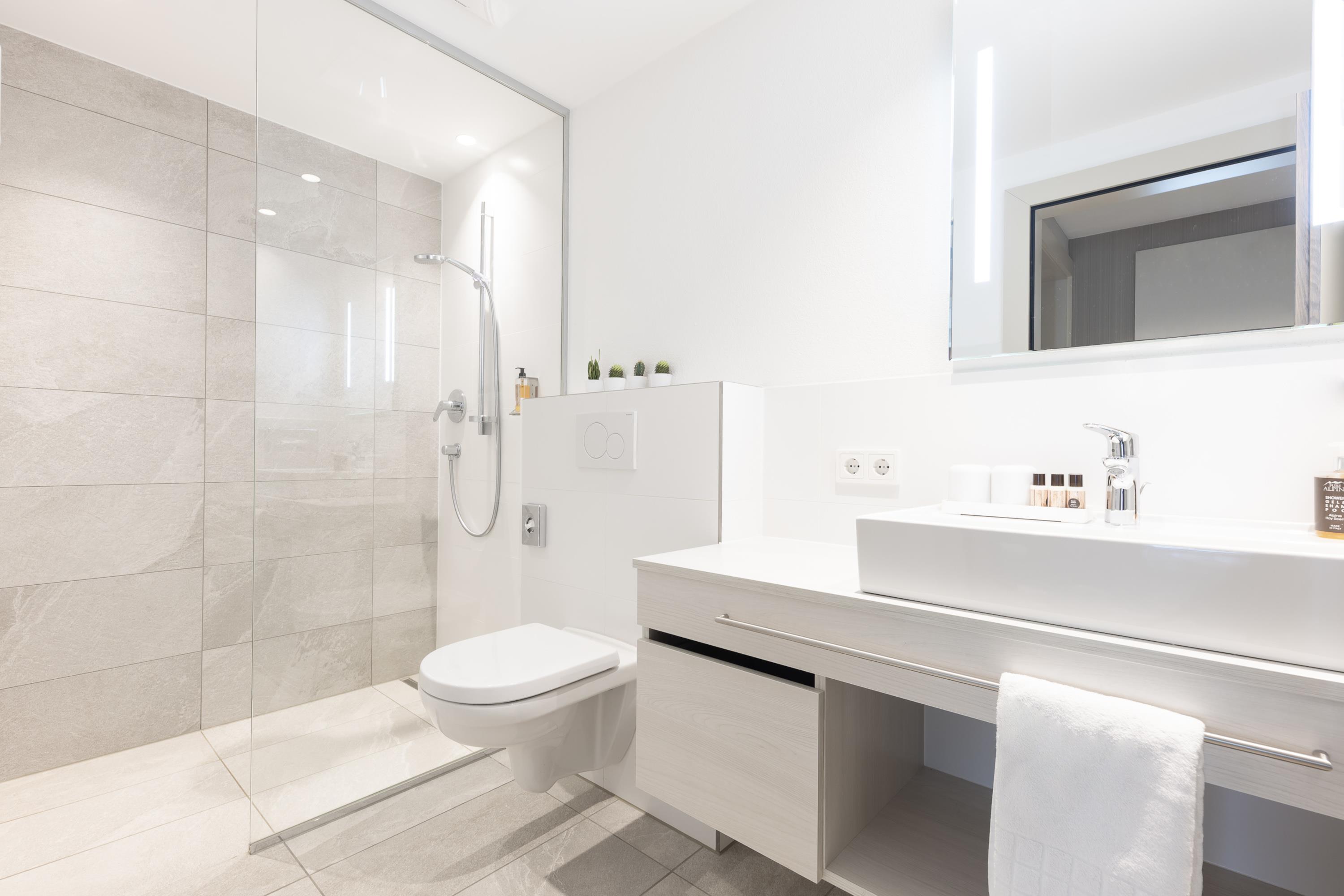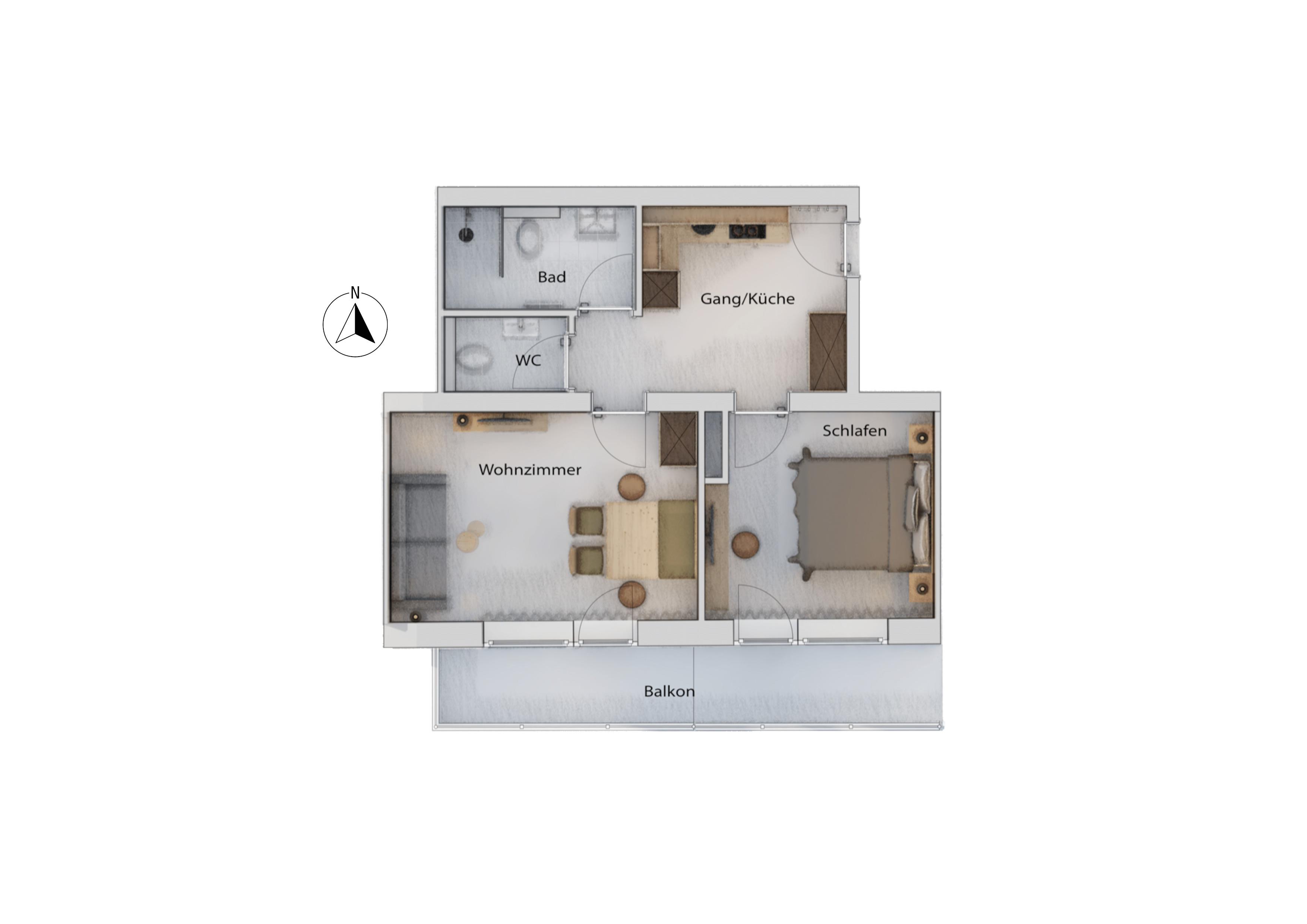 Appartement 9 mit ca. 45 m² im 2. Obergeschoss: Eingangsbereich mit Garderobe und Küche (4-Platten-Herd, Mikrowelle, Spülmaschine, Filterkaffeemaschine, Teekocher, Toaster, Geschir, Kochutensilien usw.); 1 Badezimmer mit Dusche/WC; 1 separate Toilette; 1 Schlafzimmer mit Doppelbett; Wohnraum mit Essplatz und 2 zusätzlichen Schlafmöglichkeiten; Südbalkon für erholsame Stunden.