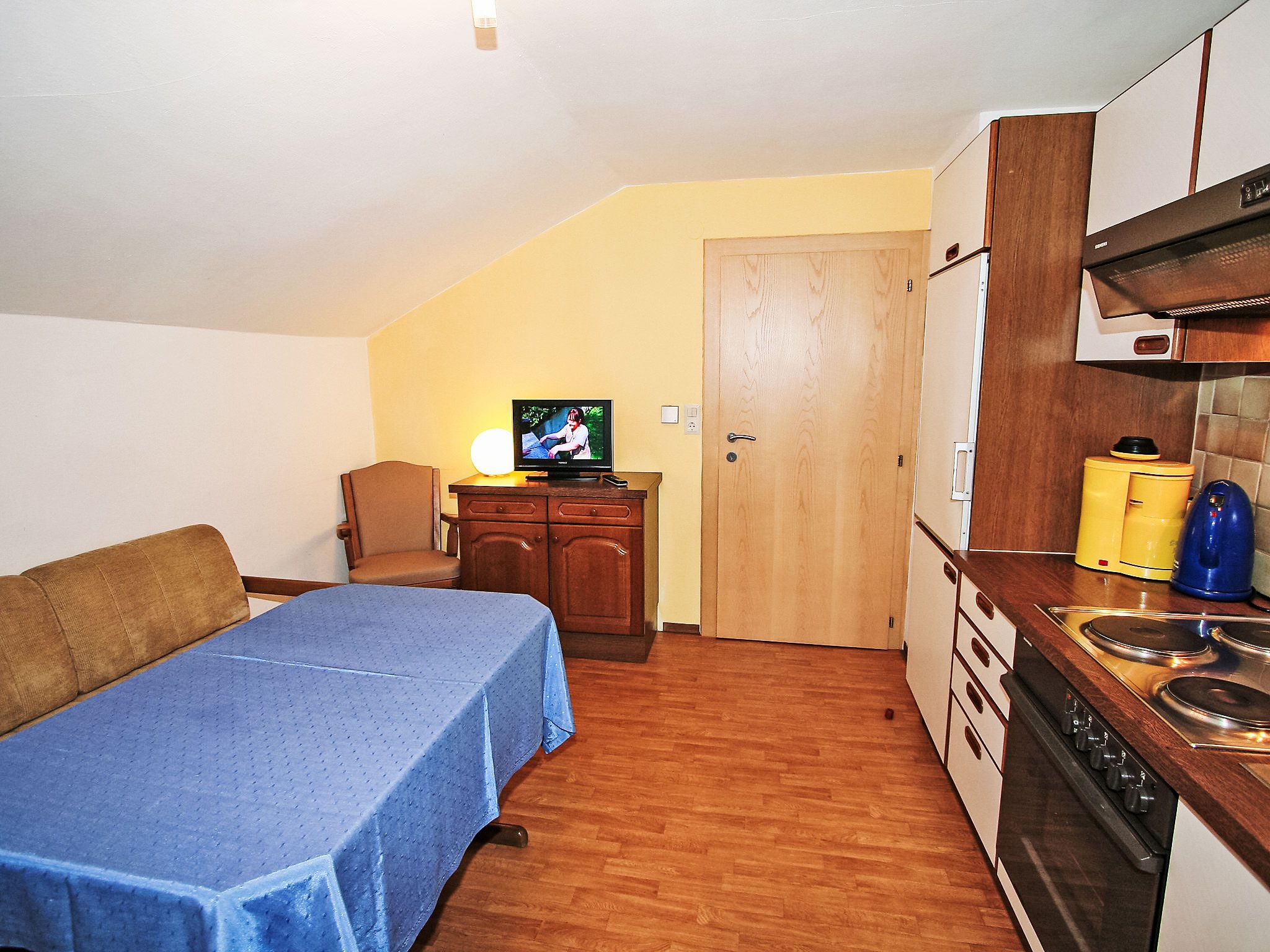 3-Zimmer-Wohnung 50 m2, im Dachgeschoss. Gemütlich eingerichtet: Eingang. 1 Doppelzimmer. Ausgang zum Balkon. 1 Doppelzimmer. Wohnküche (4 Kochplatten, Backofen, Geschirrspüler, Wasserkocher, Tiefkühler, elektrische Kaffeemaschine) mit Essecke und Sat-TV (Flachbildschirm). Ausgang zum Balkon. Dusche, sep. WC. 2 Balkone. Terrassenmöbel. Schöne Sicht auf die Berge und die Ortschaft. Zur Verfügung: Internet (Wireless LAN, extra). Bitte beachten: Rauchmelder.