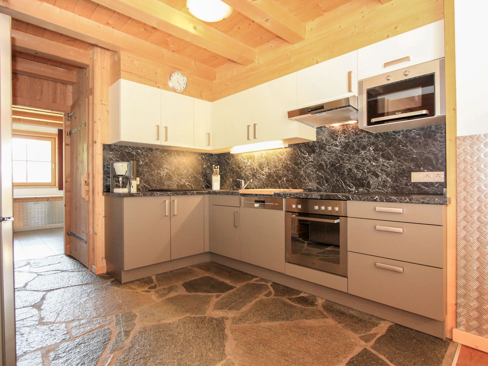 Chalet Alois, 5-Zimmer-Chalet 120 m2 auf 2 Stockwerken. Komfortabel und geschmackvoll eingerichtet: Eingang. 1 Doppelzimmer mit Dusche/WC. Grosses Wohn-/Esszimmer 35 m2 mit Esstisch und Sat-TV (Flachbildschirm), Radio und CD. Offene Küche (Backofen, Geschirrspüler, 4 Glaskeramikplatten, Mikrowelle, Tiefkühler). Dusche, sep. WC, Sauna. Obergeschoss: 2 Doppelzimmer, jedes Zimmer mit Dusche/WC. 1 Zimmer mit 1 Bett, 1 Doppelbett und Dusche/WC. Fussbodenheizung. Holzdielenboden, Natursteinboden. Terrasse. Terrassenmöbel, Gartengrill. Schöne Sicht auf die Berge. Zur Verfügung: Kinderhochstuhl, Babybett. Internet (Wireless LAN). Parkplatz (überdacht, 3 Autos). Bitte beachten: Nichtraucher-Haus. Rauchmelder. Hochwertige Einrichtung mit handgefertigten Möbeln vom Tischlermeister. Wichtig: Das Haus darf maximal mit 9 Personen und 1 Baby bis 2 Jahren belegt werden.