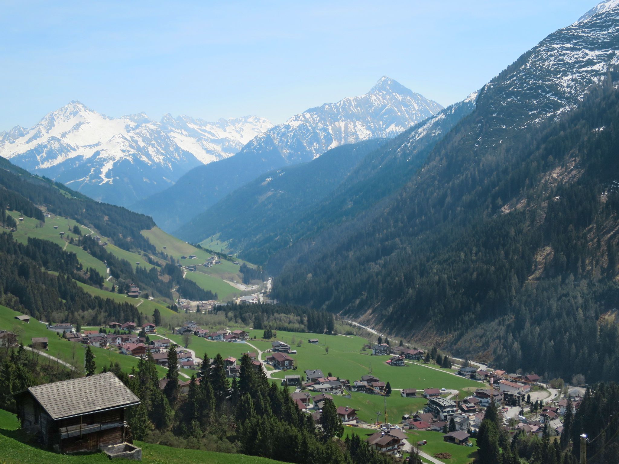 Juns im Tuxertal 12 km von Mayrhofen: 365 Tage Skivergügen am Hintertuxer Gletscher und wunderbare Wandermöglichkeiten sind greifbar nahe in einem von 2 exklusiven Tiroler Chalets in rustikaler Holzbauweise. Sehr komfortables Chalet 1'385 m.ü.M., einseitig angebaut, Baujahr 2012. Im Ortsteil Juns, 2.5 km vom Zentrum von Lanersbach, 4 km vom Zentrum von Hintertux, 12 km vom Zentrum von Mayrhofen, 2.8 km vom Skigebiet. Zur Alleinbenutzung: Terrasse, Gartenmöbel. Im Hause: Wireless LAN, Sauna, Skiraum, Zentralheizung, Skischuhtrockner, Heizung vor Ort zu zahlen (01.Jun. - 30.Sep.). Zufahrt bis zum Haus. Im Winter bitte Schneeketten mitbringen. Parkplatz (für 3 Autos, überdacht) beim Haus. Lebensmittelgeschäft 2.5 km, Restaurant 150 m, Bushaltestelle Juns Junser Gasthäusl 100 m, Bahnstation Mayrhofen Bahnhof 15.1 km, Hallenbad 12 km. Wanderwege ab Haus 20 m, Skilift 1.8 km, Gondelbahn 2.8 km, Skisportanlagen 2.8 km, Skibushaltestelle 200 m. Bekannte Skigebiete sind gut erreichbar: Ski Zillertal 3000 2.8 km, Hintertuxer Gletscher 4.3 km. Bitte beachten: Gratis Skibus. Sauna 17- 21 Uhr. Der Schiraum ist zur Mitbenützung.