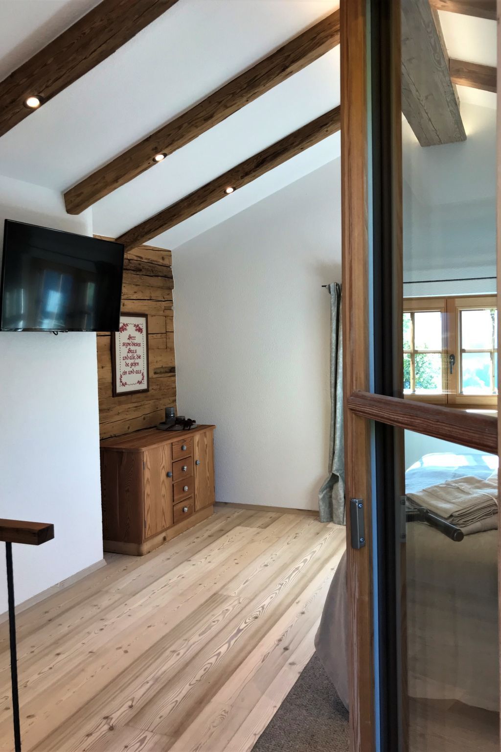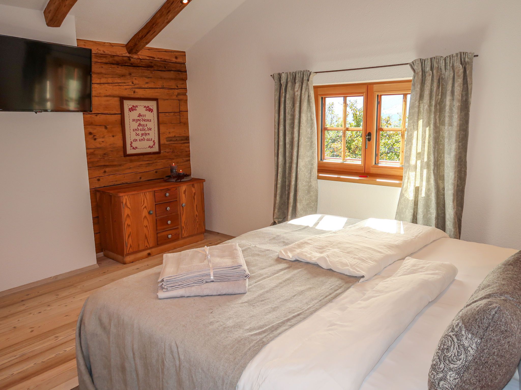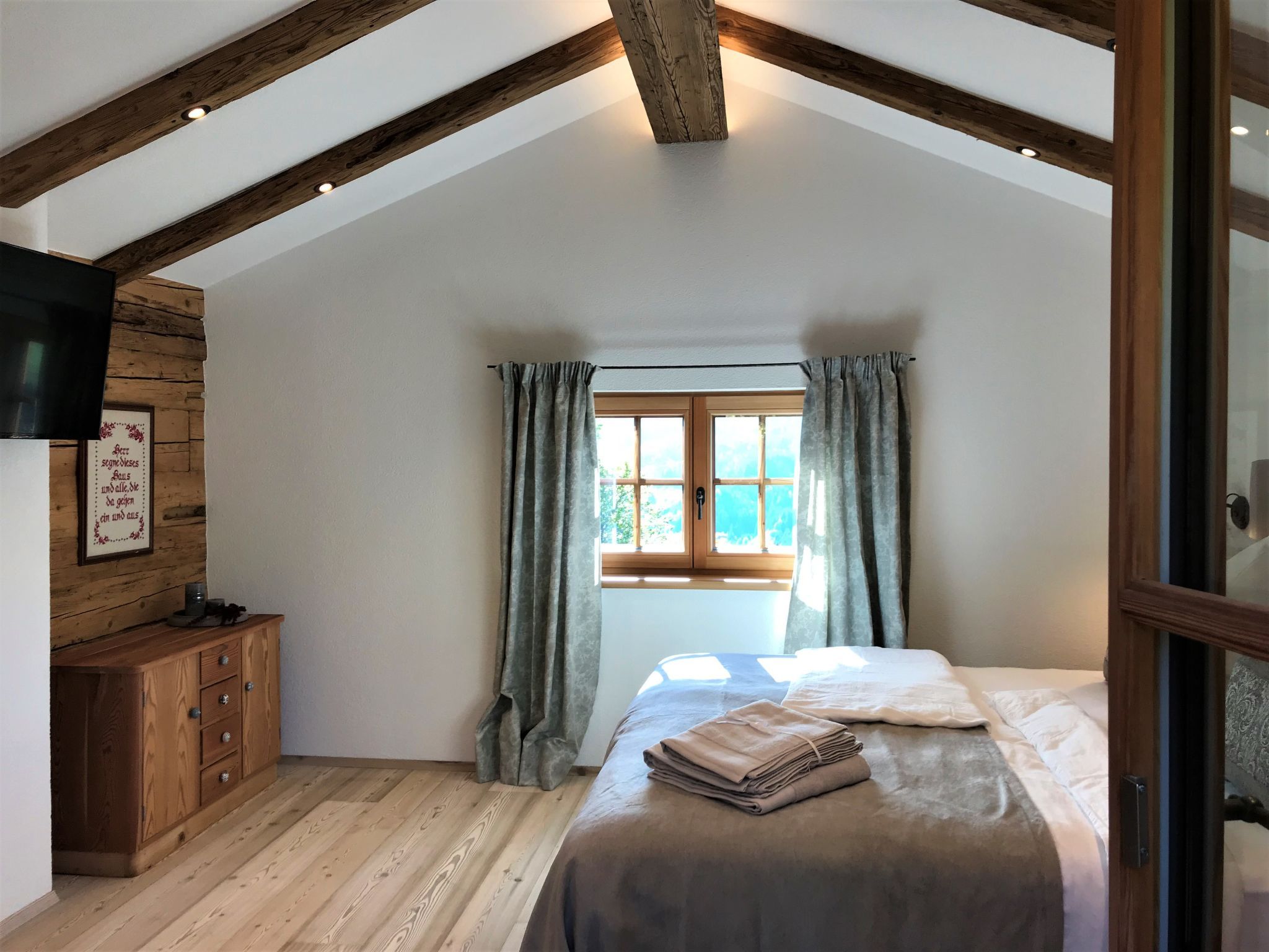 Feldkasten, 2-Zimmer-Chalet 50 m2 auf 2 Stockwerken. Hell, teilweise abgeschrägt, vollständig renoviert im Jahre 2021, sehr geschmackvoll und gemütlich eingerichtet: grosse Wohnküche (Backofen, Geschirrspüler, 4 Glaskeramikplatten, Toaster, Wasserkocher, Mikrowelle, elektrische Kaffeemaschine, Kapseln für die Kaffeemaschine (Nespresso)) mit 1 Doppeldiwanbett (160 cm, Länge 200 cm), Essecke und Sat-TV (Flachbildschirm), E-Heizung. Ausgang zur Terrasse. Obergeschoss: (steile Treppe) 1 offenes grosses Doppelzimmer mit 1 Doppelbett (180 cm, Länge 200 cm), Dusche/WC und Sat-TV (Flachbildschirm), E-Heizung. Ausgang zum Balkon. Holzdielenboden. Komfortable Einrichtung im Landhausstil. Grosse Terrasse 18 m2. Terrassenmöbel, Gartengrill, Sitzplatz. Herrliche Panoramasicht auf die Berge und das Tal. Zur Verfügung: Haartrockner. Internet (Wireless LAN). Bitte beachten: Nichtraucher-Haus. Rauchmelder. Flexibilität bei der Bettenaufteilung: Es stehen mehr Schlafmöglichkeiten zur Verfügung als die maximal zugelassene Personenzahl, diese darf dennoch nicht überschritten werden.