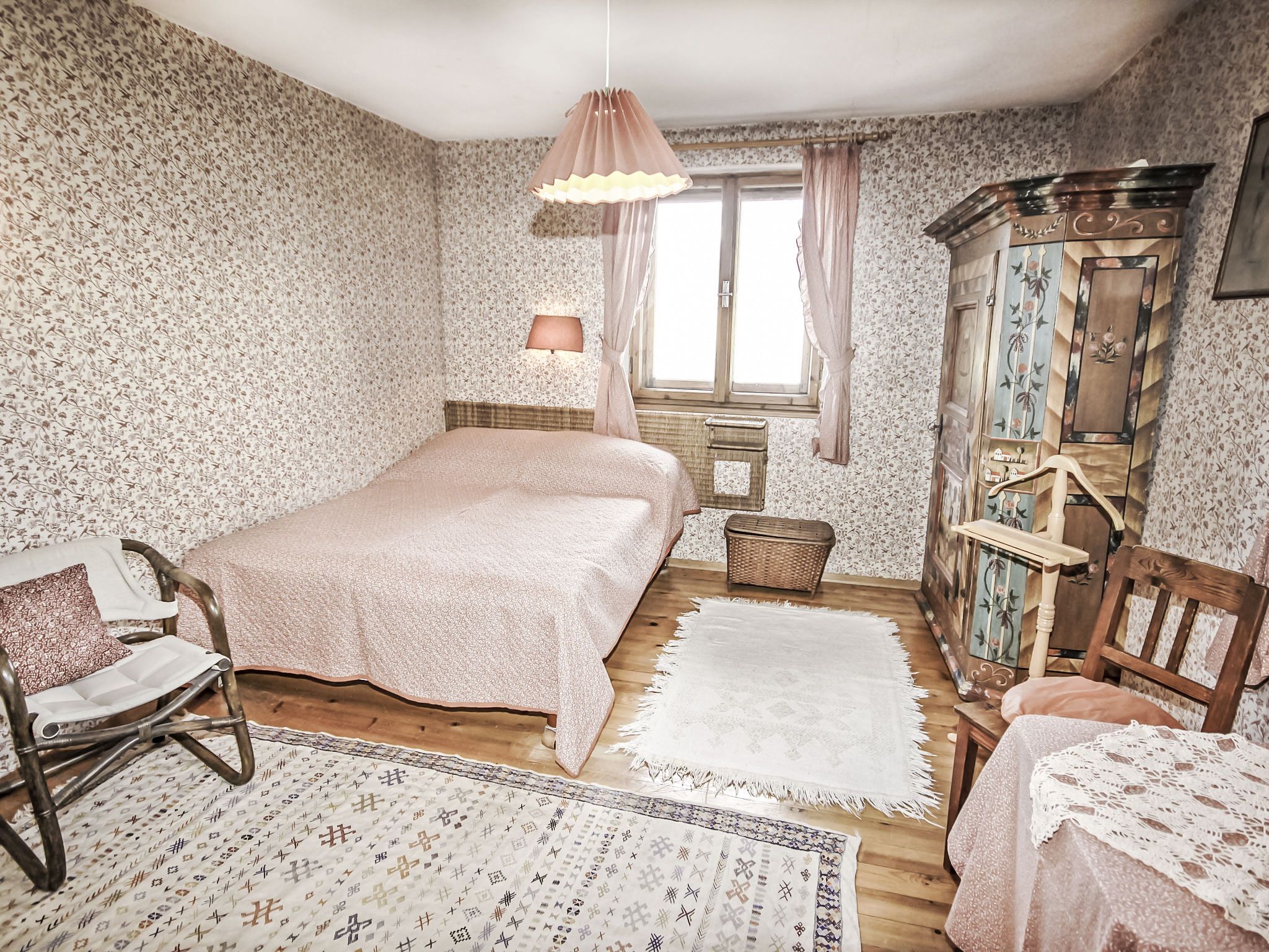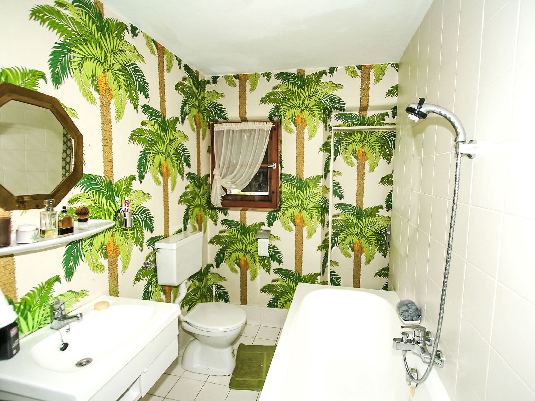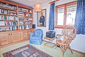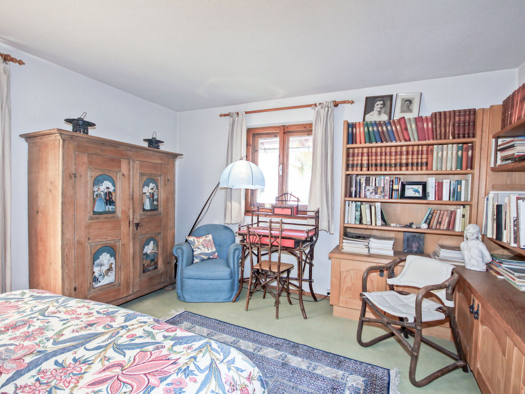 6-Zimmer-Haus 140 m2 auf 2 Stockwerken. Einfach und gemütlich eingerichtet: Eingang. Wohn-/Esszimmer mit offenem Kamin, Essecke und Kabel-TV. Ausgang zum Garten, zur Terrasse. 1 Zimmer mit 1 Bett (90 cm, Länge 190 cm). Küche (4 Kochplatten, Backofen, Geschirrspüler, Tiefkühler, elektrische Kaffeemaschine) mit Esstisch, Durchreiche. Dusche/WC. Obergeschoss: 1 Zimmer mit 1 franz. Bett (150 cm, Länge 200 cm). Wohn-/Schlafzimmer mit 1 franz. Bett (140 cm, Länge 200 cm), Stereoanlage. Ausgang zum Balkon. 1 Zimmer mit 1 franz. Bett (150 cm, Länge 200 cm). Ausgang zum Balkon. 1 Zimmer mit 2 Betten (90 cm, Länge 190 cm). Bad/WC. Balkon, Südlage, Terrasse, Südlage. Terrassenmöbel. Sehr schöne Sicht auf die Berge, den Garten und die Landschaft. Bitte beachten: Nichtraucher-Haus.