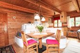3-Zimmer-Chalet 100 m2 auf 2 Stockwerken. Teilweise abgeschrägt, geschmackvoll und gemütlich eingerichtet: Wohn-/Esszimmer mit 1 Doppeldiwanbett, Sat-TV, Radio und Kachelofen. Offene Küche (4 Kochplatten, Backofen, Geschirrspüler). Dusche/WC. E-Heizung. Obergeschoss: 1 Doppelzimmer. Ausgang zum Balkon. 1 Zimmer mit 2 Betten. Bad/WC. E-Heizung. Balkon, Terrasse. Terrassenmöbel, Gartengrill. Schöne Sicht auf die Berge. Zur Verfügung: Waschmaschine, Sauna, Babybett, Haartrockner. Internet (WLAN, gratis). Bitte beachten: Maximal 2 Haustiere/Hunde erlaubt. Rauchmelder.