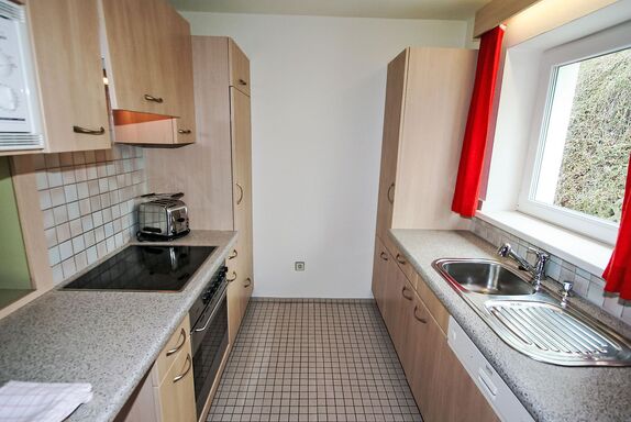Chalet St. Wendelin - Typ B, 4-Zimmer-Doppelhaushälfte 110 m2. Wohnzimmer mit Panoramafenster mit 1 Doppeldiwanbett, Essecke und Sat-TV (Flachbildschirm). Ausgang zum Garten. 1 Zimmer mit 1 Doppelbett und 1 Ausziehbett. Küche (Backofen, Geschirrspüler, 4 Glaskeramikplatten, Mikrowelle, elektrische Kaffeemaschine). Sep. WC. Obergeschoss: 1 Zimmer mit 2 Betten. 1 Doppelzimmer. Dusche/Bidet/WC, Doppelwaschbecken. Grosse Terrasse überdacht, Gartensitzplatz. Terrassenmöbel, Gartengrill (mobil), Liegestühle. Sehr schöne Panoramasicht auf die Berge und die Landschaft. Zur Verfügung: Haartrockner. Internet (Wireless LAN, gratis). Maximal 2 Haustiere/Hunde erlaubt.