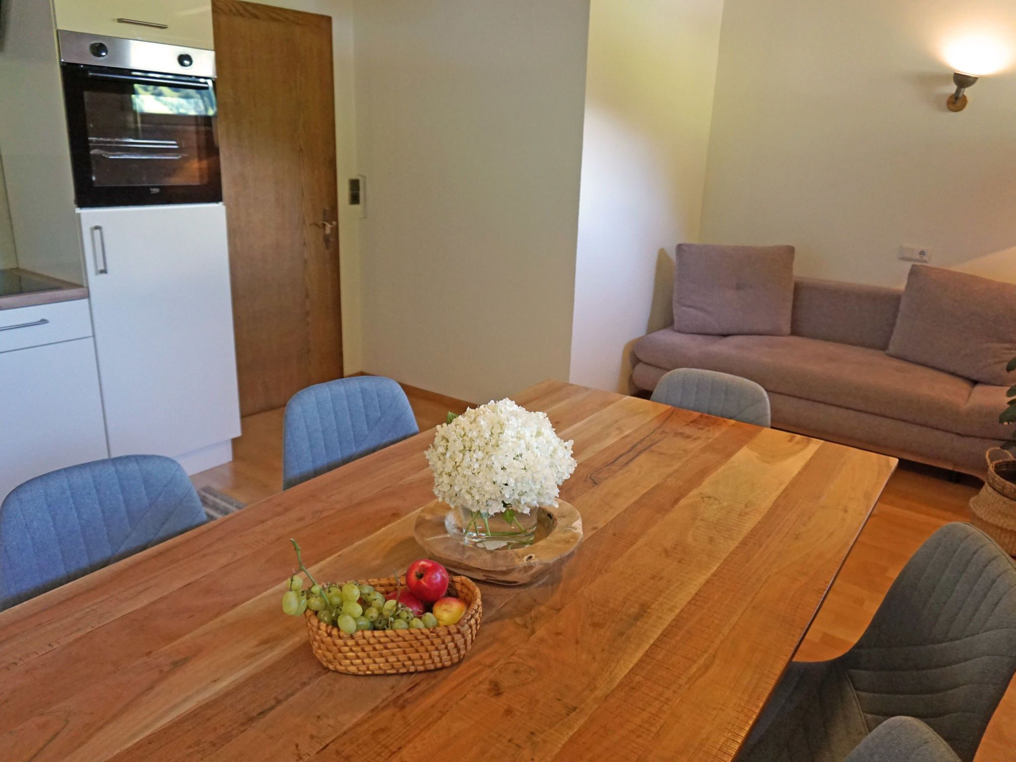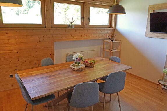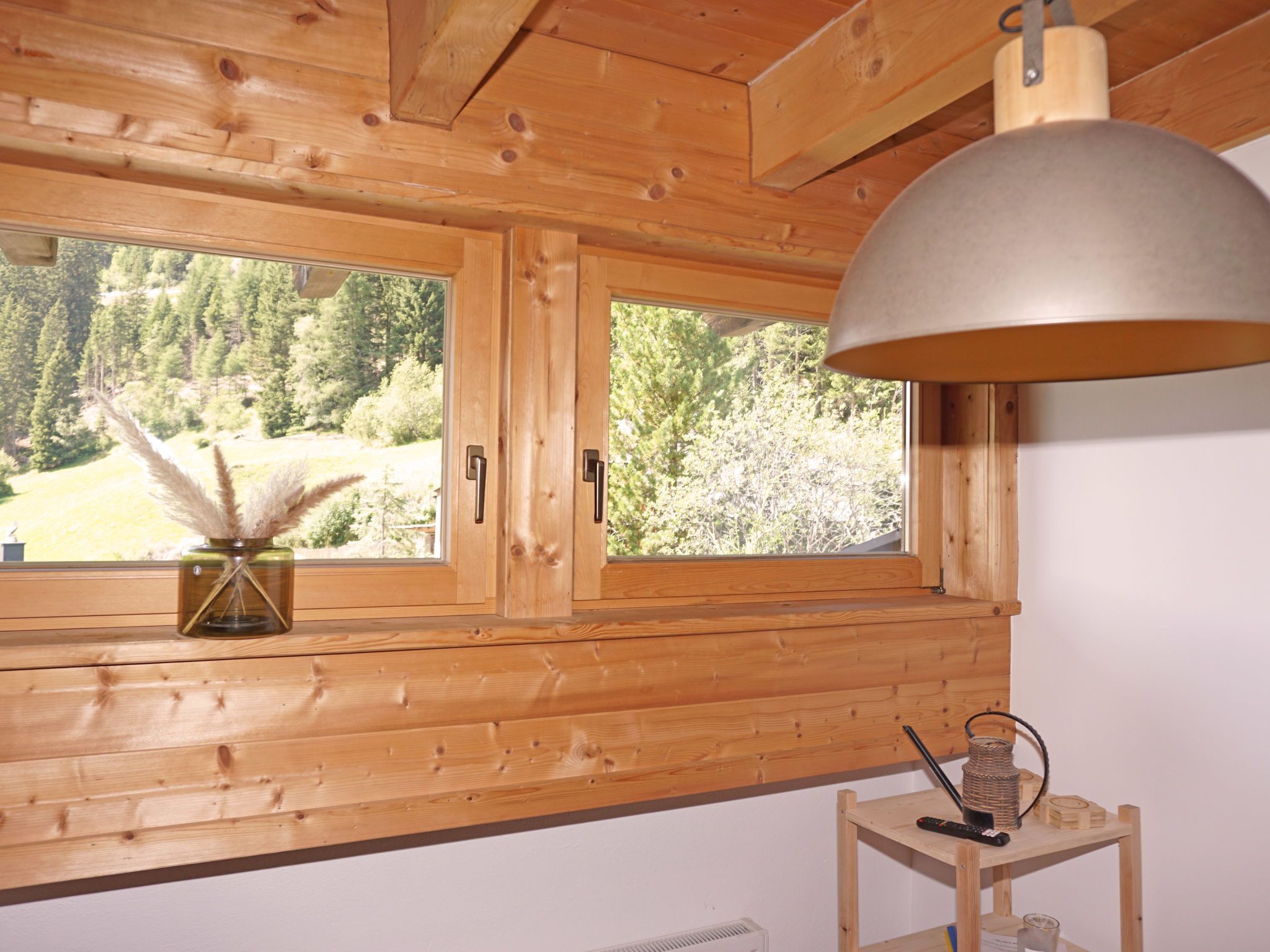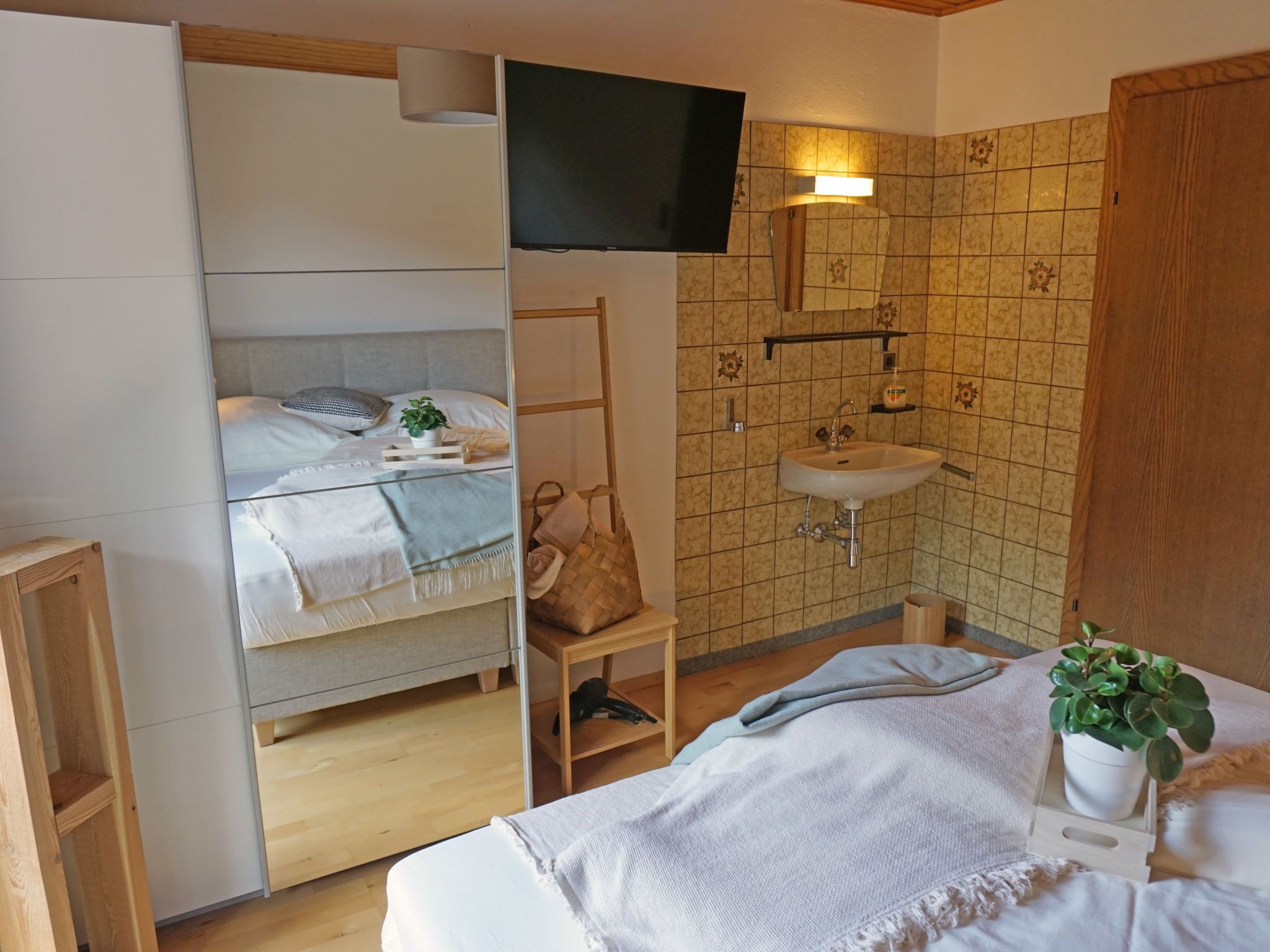 Elisabeth, 4-Zimmer-Wohnung 110 m2, im Obergeschoss. Geräumig und hell, gemütlich eingerichtet: Eingang. 1 Doppelzimmer mit Dusche und TV (Flachbildschirm). Ausgang zum Balkon. 1 Doppelzimmer mit Waschbecken und TV (Flachbildschirm). Ausgang zum Balkon. 1 Doppelzimmer mit Dusche/WC und TV (Flachbildschirm). Grosse Wohnküche (Backofen, Geschirrspüler, 2 Glaskeramikplatten, Wasserkocher, elektrische Kaffeemaschine) mit Esstisch und TV (Flachbildschirm), Radio. Dusche, sep. WC. Heizung. Grosser Balkon, Südlage. Balkonmöbel. Schöne Sicht auf die Berge. Zur Verfügung: Haartrockner. Internet (Wireless LAN, gratis). Bitte beachten: Kühlschrank ohne Gefrierfach. Bei Belegung mit weniger Personen als der maximalen Personenzahl stehen nicht alle Schlafzimmer zur Verfügung.