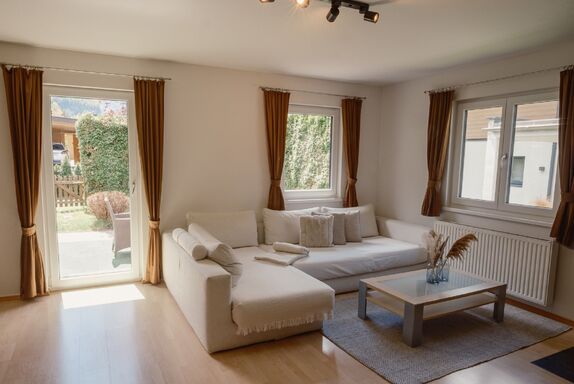3-Zimmer-Haus 100 m2, im Erdgeschoss. Geschmackvoll eingerichtet: Eingang. 2 Doppelzimmer. Wohn-/Esszimmer mit 1 Doppeldiwanbett, Schwedenofen und Sat-TV (Flachbildschirm), Stereoanlage und DVD. Ausgang zum Garten, zur Terrasse. Offene Küche (Backofen, 4 Glaskeramikplatten). Bad, sep. WC. Terrasse. Terrassenmöbel. Sicht auf die Berge. Zur Verfügung: Haartrockner. Internet (Wireless LAN). Bitte beachten: Nichtraucher-Haus. Rauchmelder.