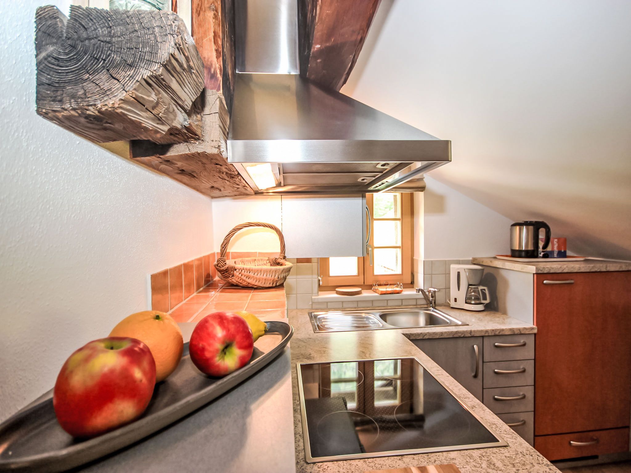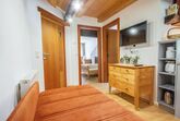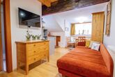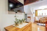 2-Zimmer-Wohnung 32 m2, im Dachgeschoss, Westlage. Vollständig renoviert, geschmackvoll eingerichtet: abgeschrägtes Wohn-/Esszimmer mit 1 Diwanbett und Sat-TV. 1 Doppelzimmer. Offene Küche (Backofen, Geschirrspüler, 4 Glaskeramikplatten) mit Esstisch. Dusche/WC. Zur Verfügung: Safe, Haartrockner. Bitte beachten: Nichtraucher-Unterkunft. Rauchmelder.