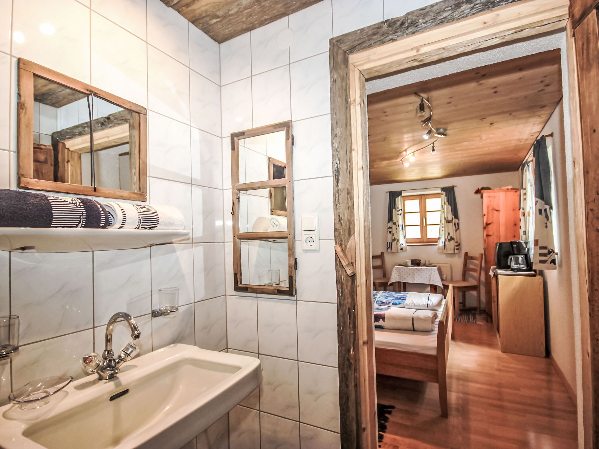 1-Zimmer-Wohnung 18 m2 im 2. Stock mit 1 Doppelbett, Dusche/WC und Sat-TV. Schöne Sicht auf die Ortschaft. Bitte beachten: Nichtraucher-Unterkunft. Rauchmelder. Es handelt sich hierbei nur um ein Doppelzimmer ohne Kochgelegenheit. Eine Kaffeemaschine, ein kleiner Kühlschrank und ein kleiner Tisch sind vorhanden. Diese Ferienwohnung eignet sich für eine Kombination mit der Wohnung AT6450.200.1 (aus Komfortgründen, maximal 5 Personen gesamt erlaubt) bzw. mit AT6450.200.2 (aus Komfortgründen, maximal 4 Personen gesamt erlaubt). Das Zubereiten von Speisen ist verboten!