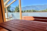 Moderner, luxuriöser Bungalow SKYLIGHT Chalet. 5 Häuser im Ferienresort. Im Ortsteil Hoch-Imst, 1.4 km vom Zentrum von Imst, sonnige Lage am Hang, 400 m vom See, 300 m vom Skigebiet, in einer Sackgasse, im Wald. Im Hause: Zentralheizung, Klimaanlage, Waschmaschine. Parkplatz. Supermarkt 2 km, Restaurant 400 m, Bushaltestelle Imst Hochimst 280 m, Bahnstation Imst/Pitztal Bahnhof 5.5 km, Freibad 2 km, Badesee 400 m. Golfplatz (27 Loch) 30 km, Tennis 300 m, Wanderwege ab Haus 400 m, Skisportanlagen, Schlittelbahn, Langlaufloipe, Eisfeld, Kinderspielplatz 300 m. Nahe gelegene Sehenswürdigkeiten: Längste Alpenachterbahn der Welt 300 m, Area 47 17 km, Aqua Dom Längenfeld 39 km. Bekannte Skigebiete sind gut erreichbar: Hoch-Imst 300 m, Hochzeiger-Jerzens 19 km, Ötz-Hochötz 21 km. Wandergebiete: Starkenberger Panoramaweg 400 m, Rosengartenschlucht 400 m. Bitte beachten: Weitere Unterkünfte sind buchbar. Ferienwohnung Ref. AT6460.615+500 befindet sich auf dem gleichen Grundstück. In dieser Anlage zusätzlich mietbar: 1 Haus, 1 Bungalow, 2 Chalets. Solea, Luna, Panorama, Sky. Zahlreiche Vergünstigungen mit dem Urlaubspass (Infos unter .