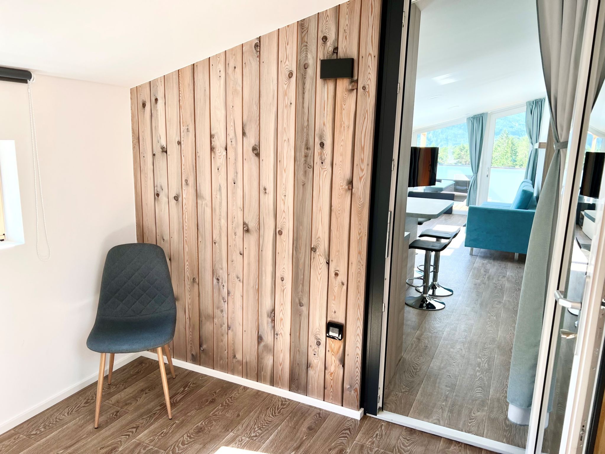 Sky-Chalet, 3-Zimmer-Chalet 60 m2, Südwestlage. Modern und luxuriös eingerichtet: 1 Doppelzimmer. Ausgang zur Terrasse. 1 Zimmer mit 2 Betten und TV (Flachbildschirm). Wohnküche (Mini-Backofen, Geschirrspüler, 4 Induktionskochplatten, Toaster, Wasserkocher, Mikrowelle, elektrische Kaffeemaschine) mit 1 Diwanbett, Esstisch, Bar und Sat-TV (Flachbildschirm). Ausgang zur Terrasse. Dusche/WC. Heizung, Klimaanlage. Parkettboden. Grosse Terrasse 15 m2, Südlage und Westlage. Terrassenmöbel. Herrliche Panoramasicht auf die Berge. Bitte beachten: Nichtraucher-Haus. Maximal 1 Haustier/Hund erlaubt.