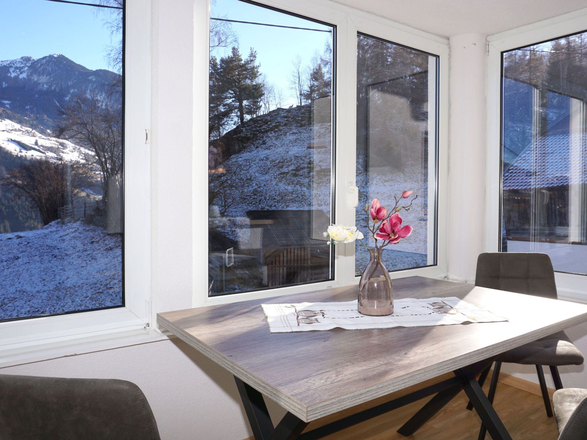 Gabi, 4-Zimmer-Wohnung 105 m2 im 1. Stock. Sehr komfortabel und schön eingerichtet: Eingang. 3 Doppelzimmer. Wohn-/Esszimmer mit 1 Diwanbett und Sat-TV (Flachbildschirm). Grosse Wohnküche (Backofen, Geschirrspüler, 4 Glaskeramikplatten, Tiefkühler, elektrische Kaffeemaschine, Kombinationsmikrowelle) mit Esstisch und TV. Ausgang zur Loggia. Sep. WC, Bad/Dusche/WC. Grosser Balkon, Südlage. Balkonmöbel. Herrliche Panoramasicht auf die Berge. Zur Verfügung: Internet (WLAN, gratis). Maximal 1 Haustier/Hund erlaubt.