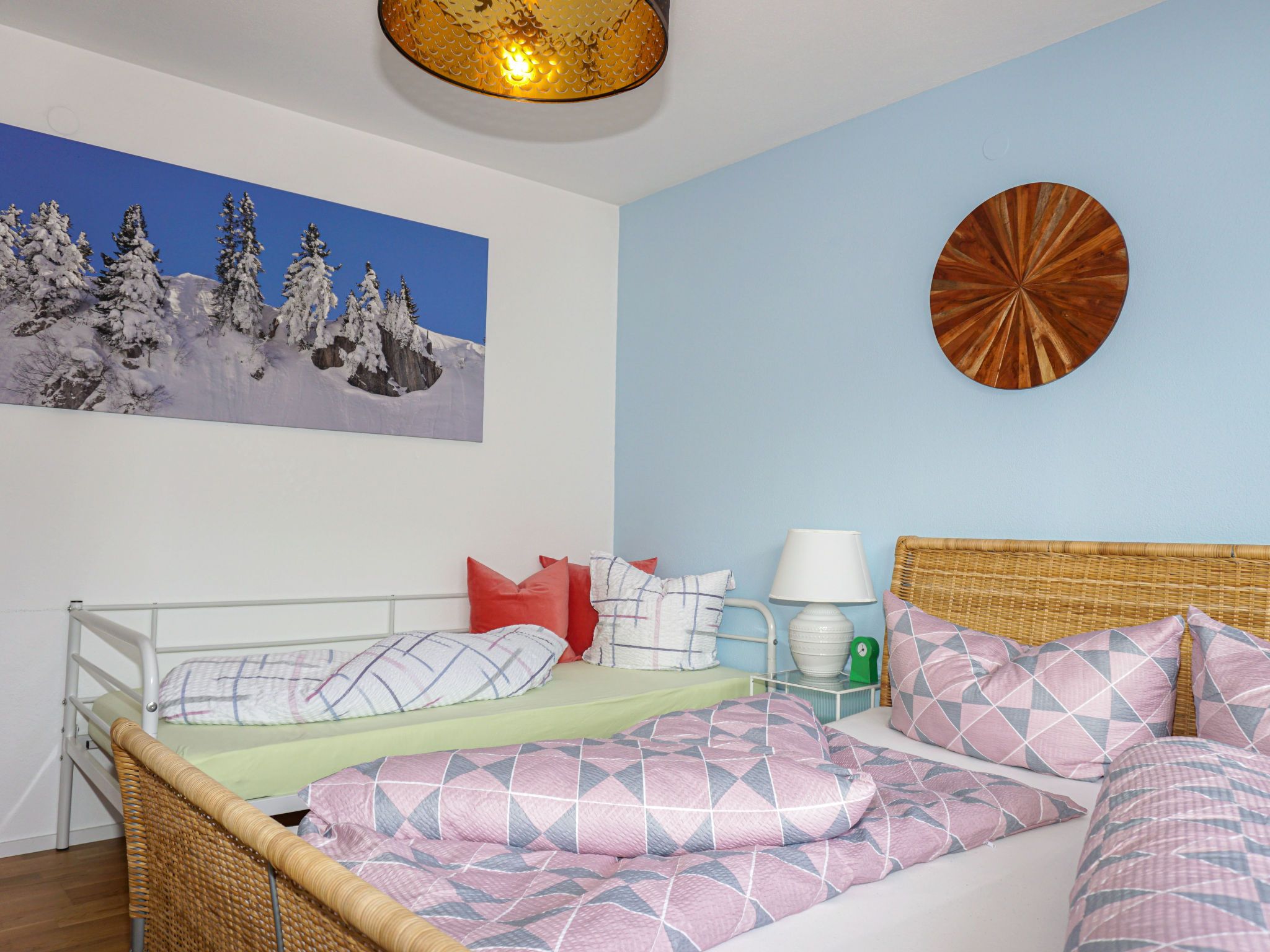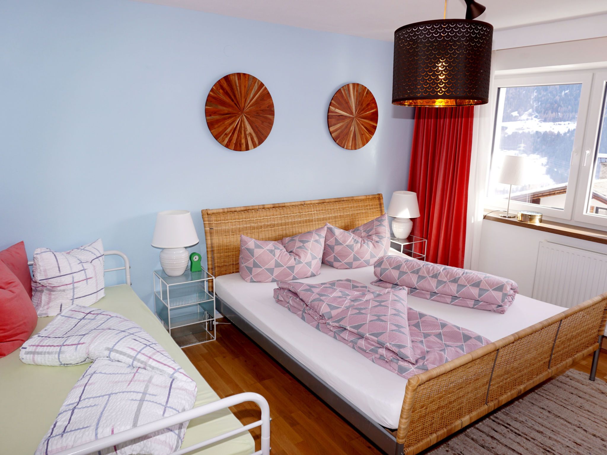Milli, 3-Zimmer-Wohnung 70 m2, im Erdgeschoss. Modern und gemütlich eingerichtet: Eingang. 1 Doppelzimmer. 1 Zimmer mit 1 Bett und 1 Doppelbett. Wohnküche (Backofen, Geschirrspüler, 4 Glaskeramikplatten, Toaster, Wasserkocher, Mikrowelle, Tiefkühler, elektrische Kaffeemaschine) mit Esstisch und TV. Dusche/WC. Grosser Balkon, Südlage. Balkonmöbel. Herrliche Sicht auf die Berge. Zur Verfügung: Internet (Wireless LAN, gratis). Parkplatz (1 Auto). Bitte beachten: Nichtraucher-Unterkunft. Rauchmelder.