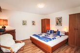 2-Zimmer-Wohnung 35 m2, im Erdgeschoss. Komfortabel eingerichtet: Eingang. 1 Doppelzimmer mit Dusche und Radio. Wohnküche (Backofen, 4 Glaskeramikplatten, Toaster, Wasserkocher, Mikrowelle, elektrische Kaffeemaschine) mit Esstisch und Kabel-TV (Flachbildschirm). Sep. WC. Zur Verfügung: Internet (WLAN, extra). Bitte beachten: Nichtraucher-Unterkunft. Maximal 1 Haustier/Hund erlaubt.