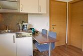1-Zimmer-Wohnung 25 m2 im 2. Stock. Modern und geschmackvoll eingerichtet: Wohn-/Schlafzimmer mit 1 Doppelbett und Sat-TV (Flachbildschirm). Ausgang zum Balkon. Kochnische (Geschirrspüler, 2 Glaskeramikplatten, Mikrowelle, elektrische Kaffeemaschine) mit Bar. Dusche/WC. Balkon. Balkonmöbel. Sicht auf die Berge und die Landschaft. Zur Verfügung: Haartrockner. Internet (Wireless LAN, gratis). Bitte beachten: Nichtraucher-Unterkunft. Maximal 1 kleines Haustier/Hund erlaubt. Kein Backofen vorhanden. Keine Katze!