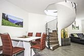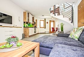 3-Zimmer-Wohnung 70 m2 auf 2 Stockwerken, im erhöhten Erdgeschoss. Vollständig renoviert im Jahre 2017, schön und modern eingerichtet: Eingang. Grosses Wohn-/Esszimmer mit 1 Diwanbett, Esstisch und Sat-TV (Flachbildschirm). Offene Küche (Backofen, Geschirrspüler, 4 Glaskeramikplatten, Mikrowelle, Tiefkühler, elektrische Kaffeemaschine). Obergeschoss: (Wendeltreppe) Durchgangszimmer mit 1 Doppeldiwanbett und Sat-TV (Flachbildschirm). Ausgang zum Balkon. 1 Zimmer mit 1 Diwanbett und 1 Doppelbett. Dusche/WC. Balkon. Balkonmöbel. Sehr schöne Sicht auf die Berge und die Landschaft. Zur Verfügung: Babybett, Haartrockner. Internet (Wireless LAN, gratis). Bitte beachten: Nichtraucher-Unterkunft. Rauchmelder. Der Vermieter stellt hochwertige technologische Ausstattung im Wohnzimmer zur Verfügung: Smart-TV, Blu-Ray-Spieler und Playstation.
