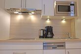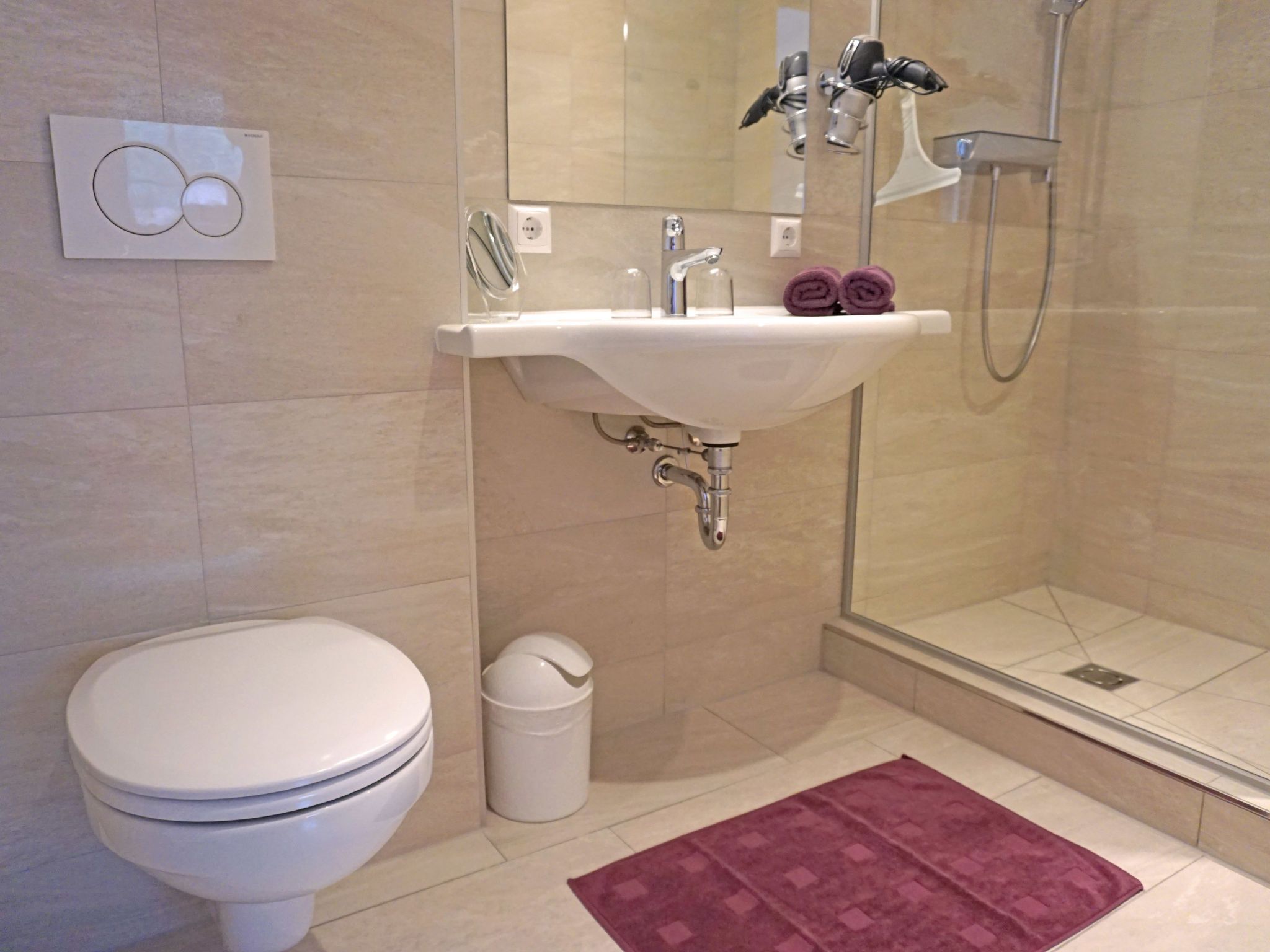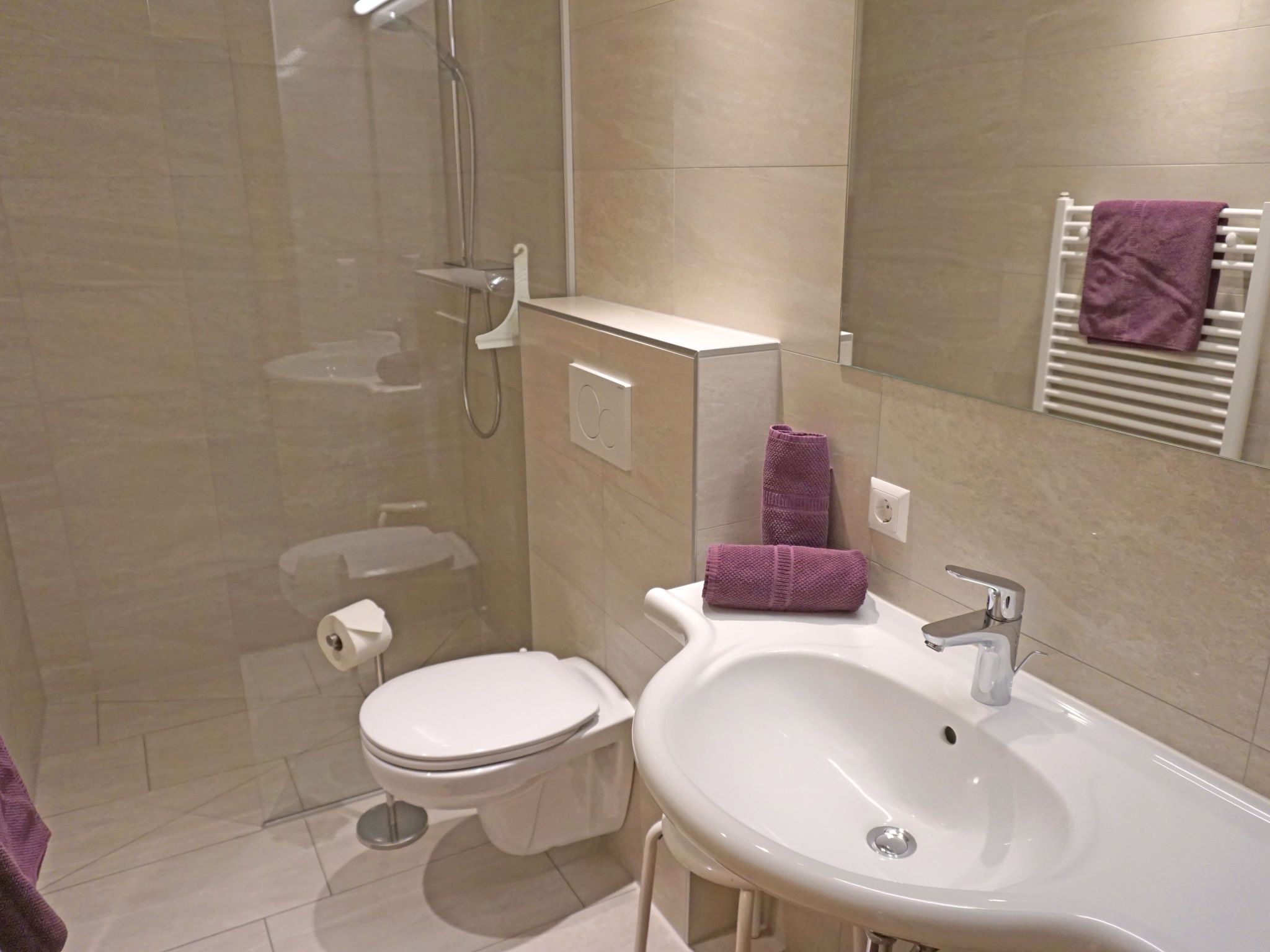 Apart B, 3-Zimmer-Wohnung 65 m2, im Obergeschoss. Geräumig und hell, komfortabel und schön eingerichtet: Eingang. Wohn-/Esszimmer mit Sat-TV (Flachbildschirm). 1 Zimmer mit 2 Betten. 1 Doppelzimmer mit 1 Diwanbett und Dusche/WC. Ausgang zum Balkon, Richtung Westen. Küche im Eingang (Backofen, Geschirrspüler, 4 Glaskeramikplatten, Wasserkocher, elektrische Kaffeemaschine). Dusche/WC. Heizung. Balkonmöbel. Seitliche Sicht auf die Berge. Zur Verfügung: Safe. Internet (Wireless LAN). Garage (1 Auto). Bitte beachten: Nichtraucher-Unterkunft.