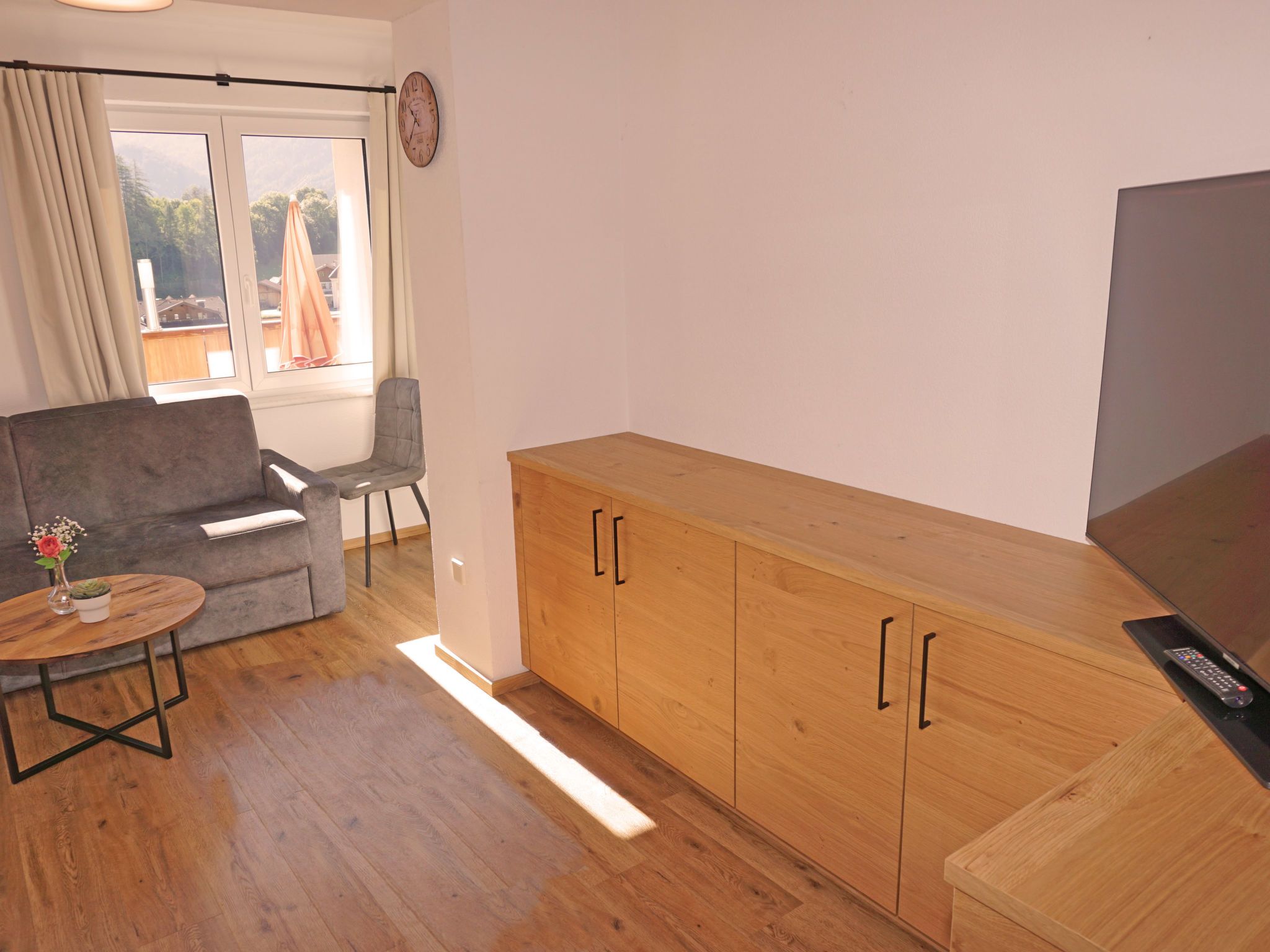4-Zimmer-Wohnung 95 m2, im Erdgeschoss. Geräumig, komfortabel eingerichtet: Eingang. 2 Doppelzimmer. 1 Doppelzimmer mit Dusche/WC. Grosses Wohn-/Esszimmer mit Esstisch und Kabel-TV (Flachbildschirm). Ausgang zur Terrasse. Offene Küche (Geschirrspüler, 4 Glaskeramikplatten, elektrische Kaffeemaschine, Kombinationsmikrowelle). Dusche, sep. WC. Terrasse 12 m2. Terrassenmöbel. Zur Verfügung: Safe, Haartrockner. Internet (Wireless LAN, gratis). Bitte beachten: Nichtraucher-Unterkunft. Rauchmelder.