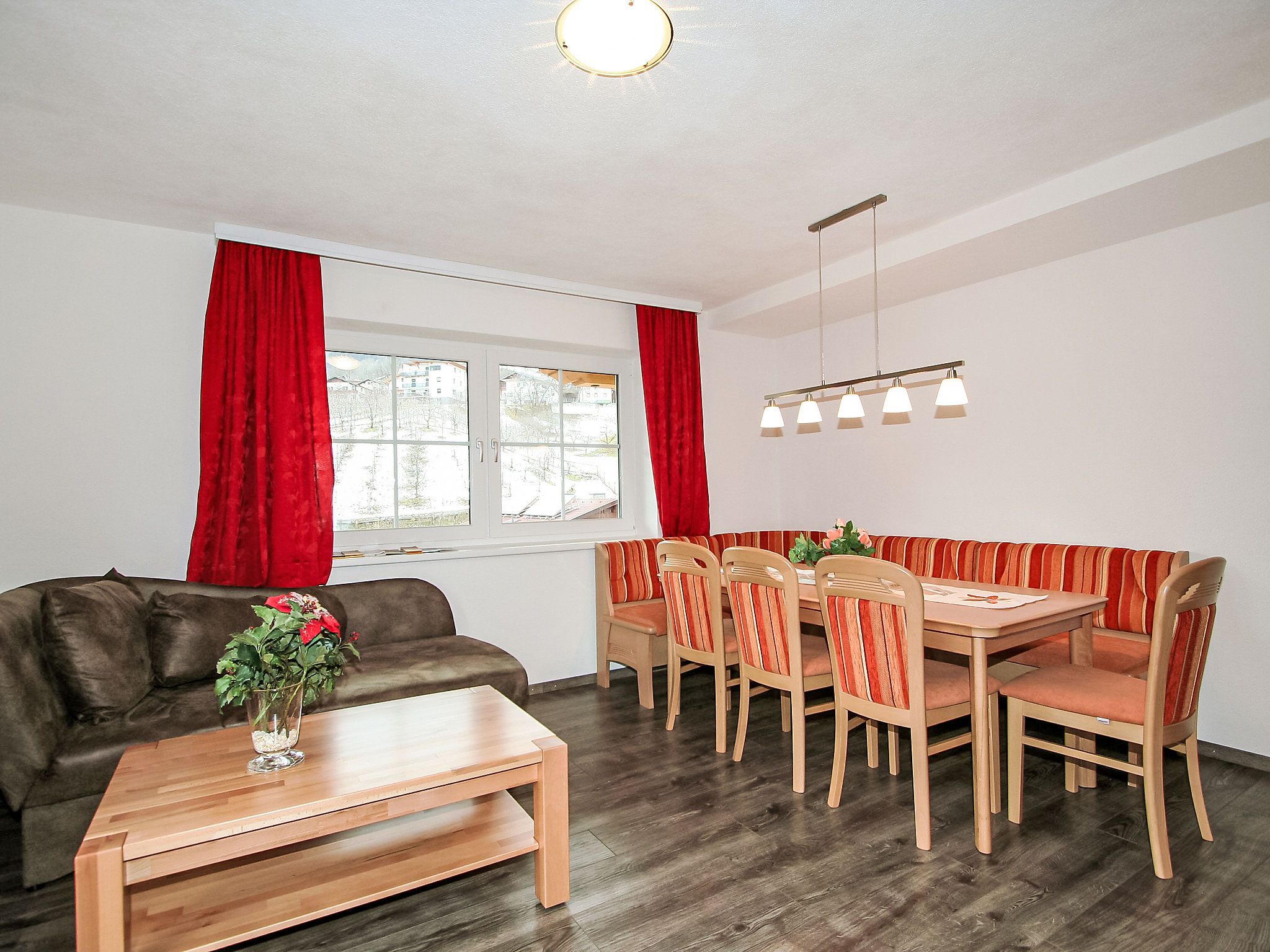 5-Zimmer-Wohnung 95 m2 im 2. Stock. Geschmackvoll eingerichtet: Eingang. 3 Doppelzimmer. 1 kleines Zimmer mit 1 franz. Bett (140 cm). Wohnküche (Backofen, Geschirrspüler, 4 Glaskeramikplatten, Mikrowelle) mit Essecke und Sat-TV (Flachbildschirm). Ausgang zum Balkon. 2 Duschen/WC. Fussbodenheizung. Grosser Balkon. Balkonmöbel. Schöne Sicht auf die Berge und die Ortschaft. Zur Verfügung: Internet (Wireless LAN, gratis). Parkplatz (2 Autos). Bitte beachten: Nichtraucher-Unterkunft. Rauchmelder. Mitglied der Silvretta Card Premium! Achtung: kleines Zimmer mit schmalem Bett!