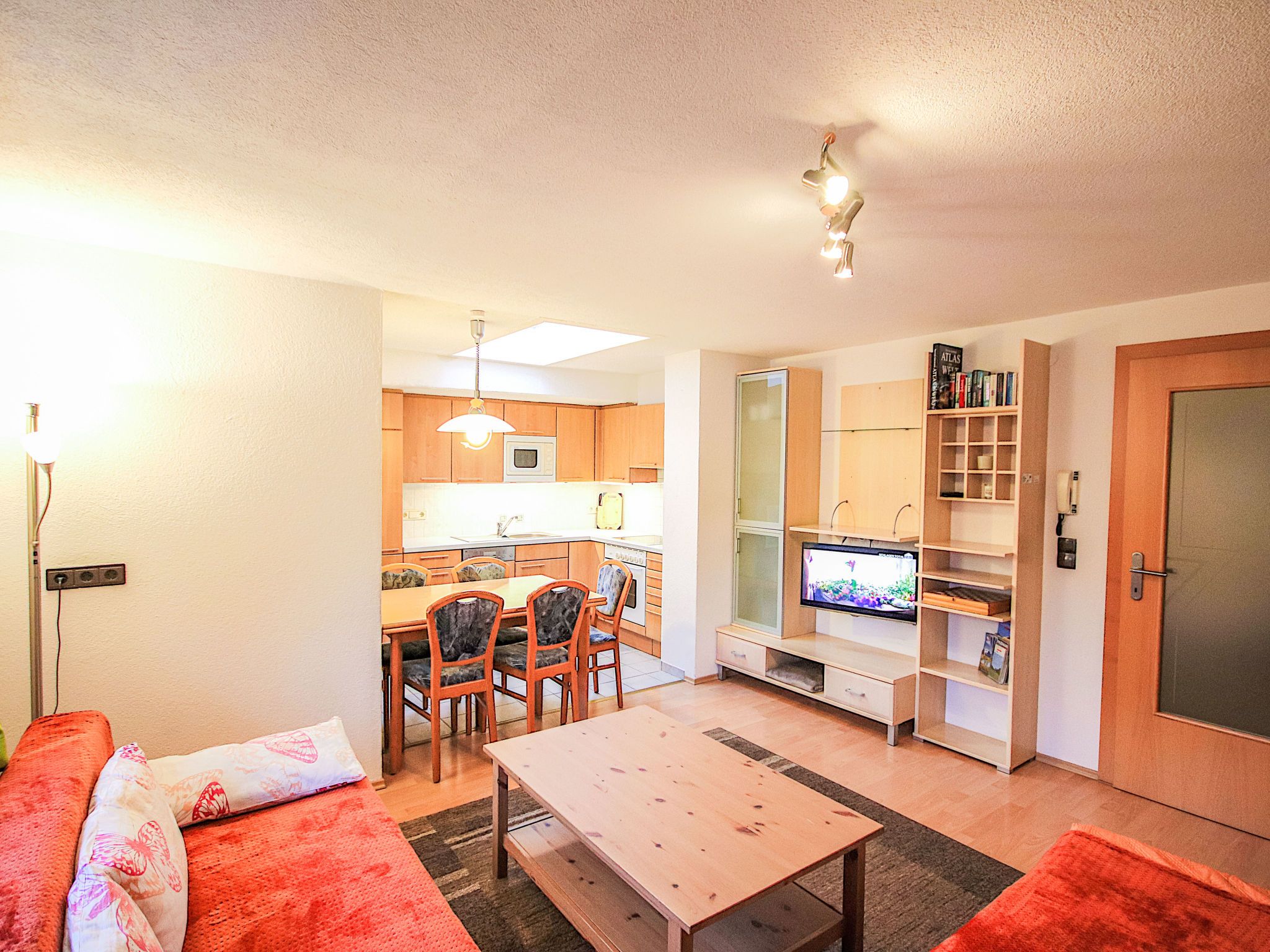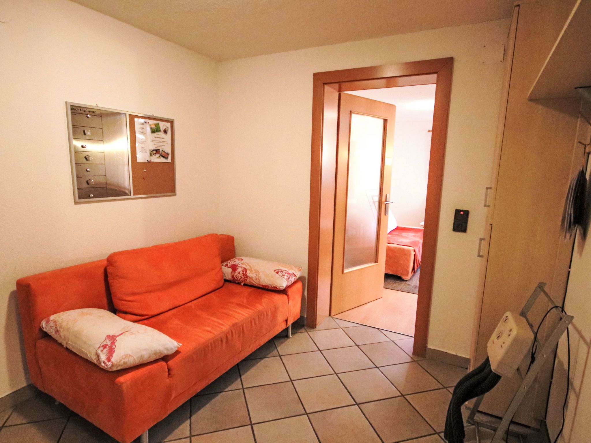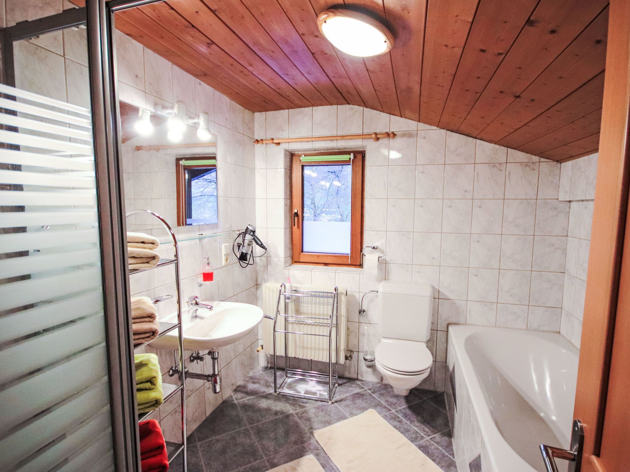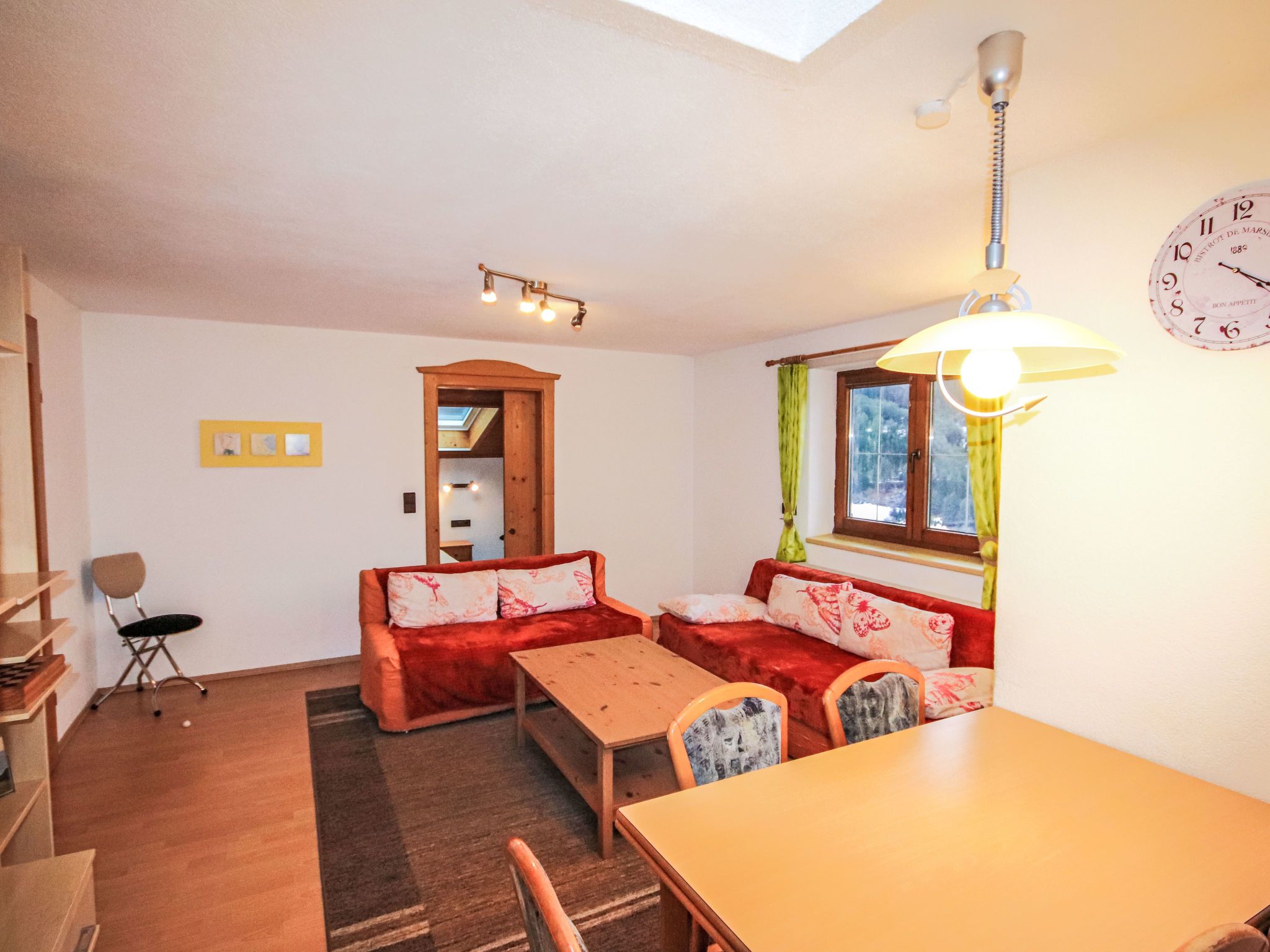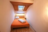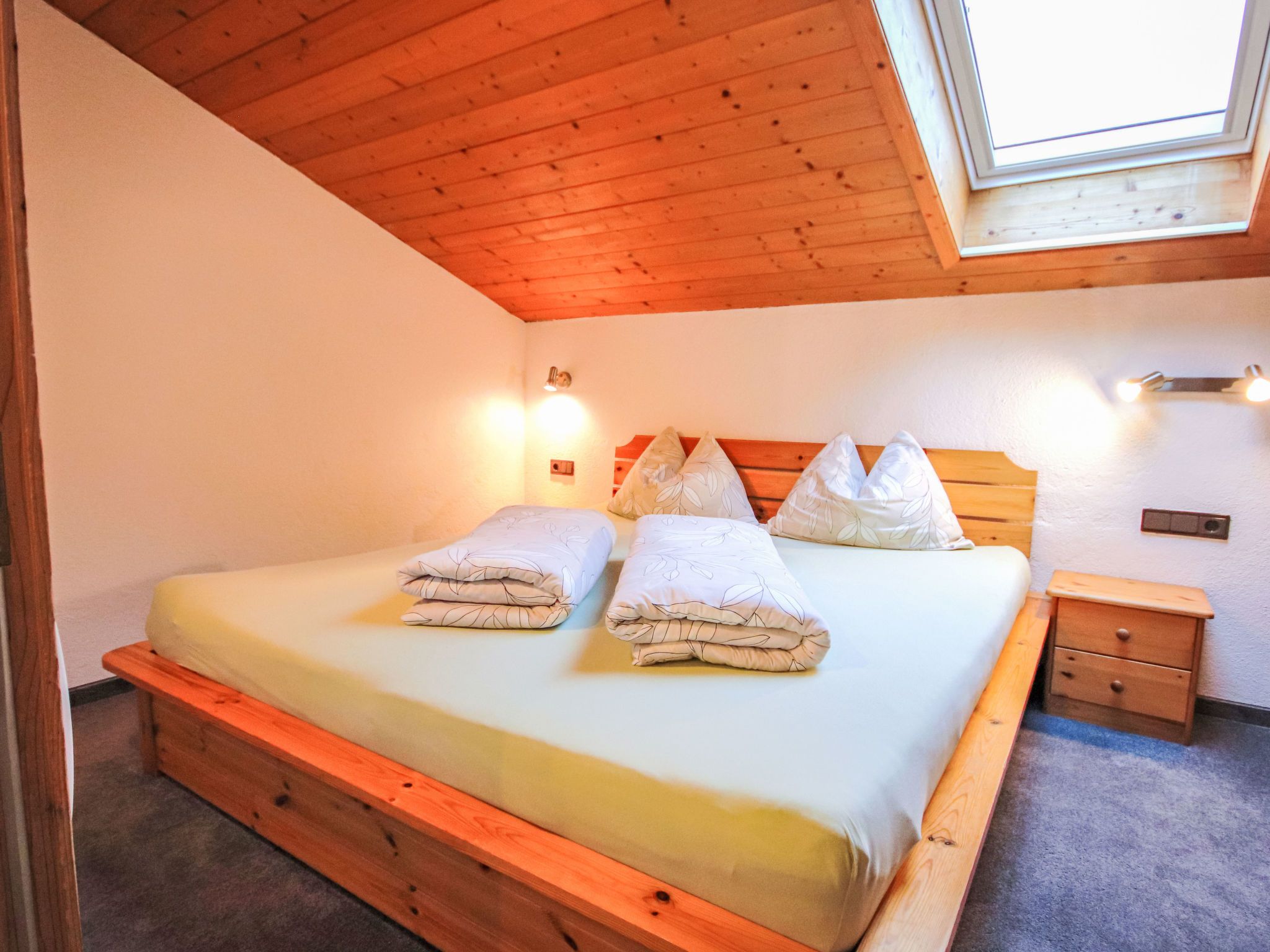 4-Zimmer-Wohnung 65 m2, im Dachgeschoss. Abgeschrägt, geschmackvoll eingerichtet: Eingang. 1 Doppelzimmer. 1 kleines Zimmer mit 1 franz. Bett (140 cm). 1 kleines Zimmer mit 1 franz. Bett (160 cm). Grosses Wohnzimmer mit Sat-TV und Radio. Offene Küche (Backofen, Geschirrspüler, 4 Glaskeramikplatten, Mikrowelle) mit Esstisch. Bad/Dusche/WC. Abstellkammer. Sicht auf die Berge. Zur Verfügung: Internet (Wireless LAN, gratis). Bitte beachten: Nichtraucher-Unterkunft. Rauchmelder. Sehr niedrige Raumhöhe im Zimmer mit französischem Bett.