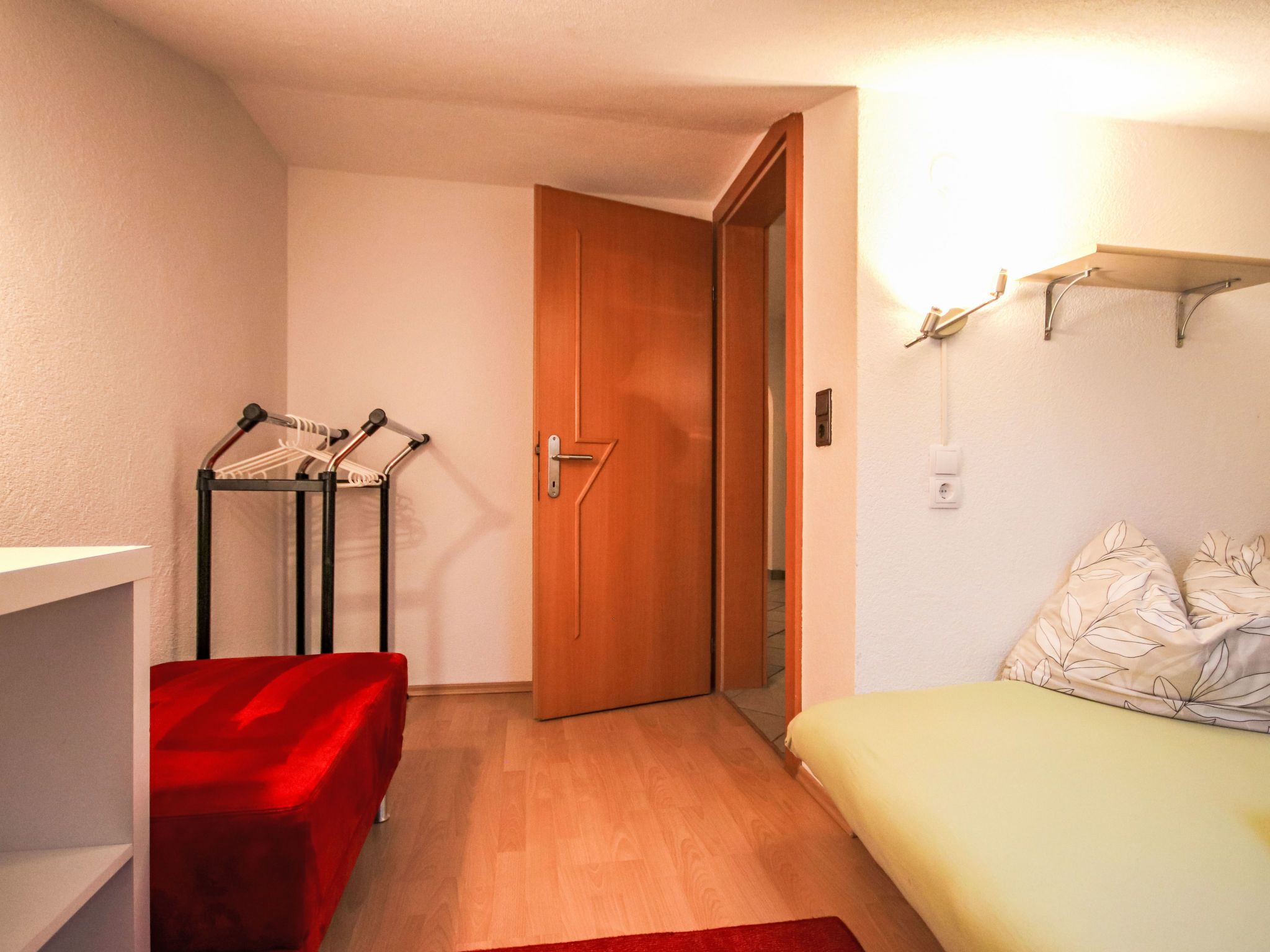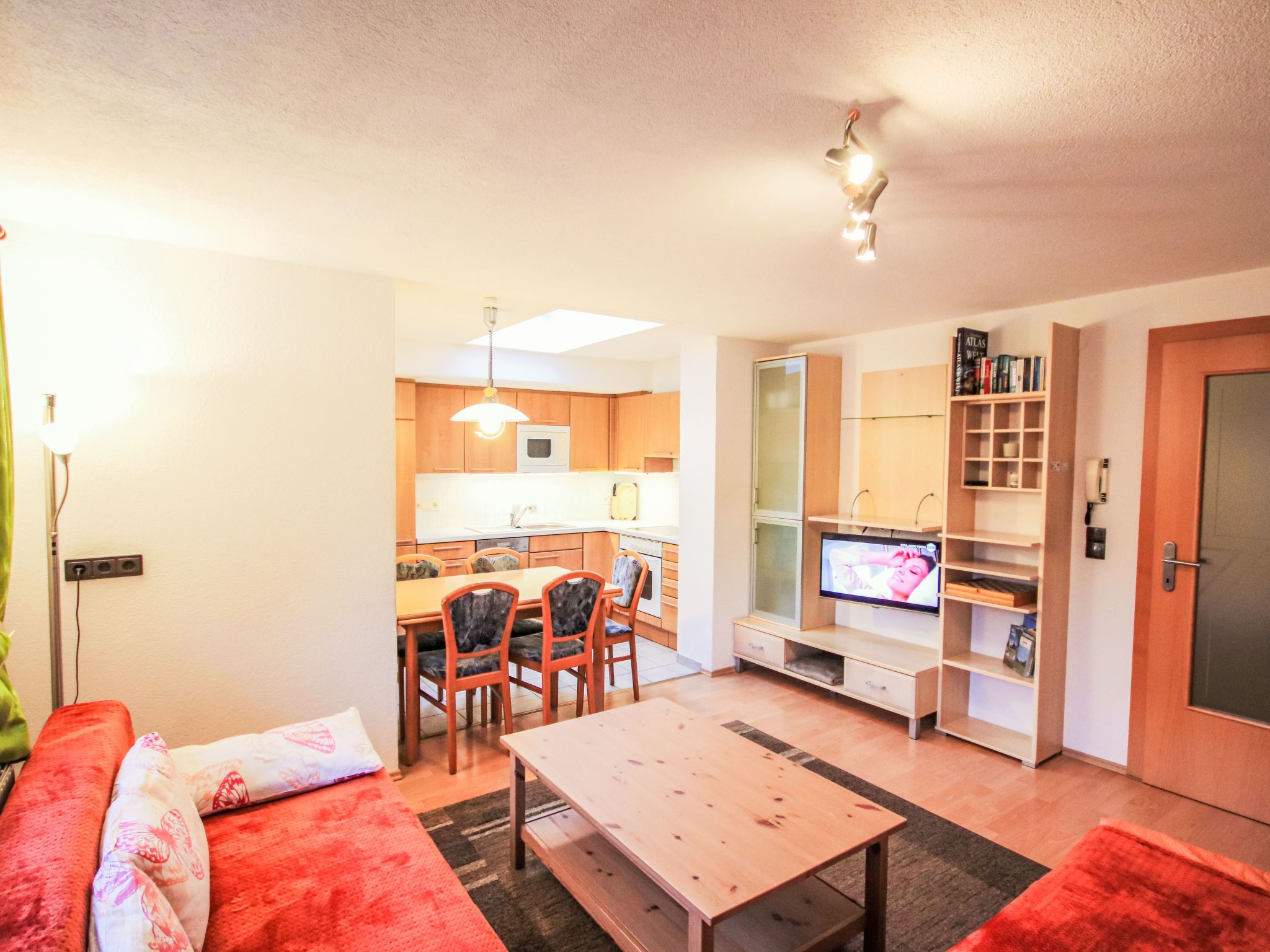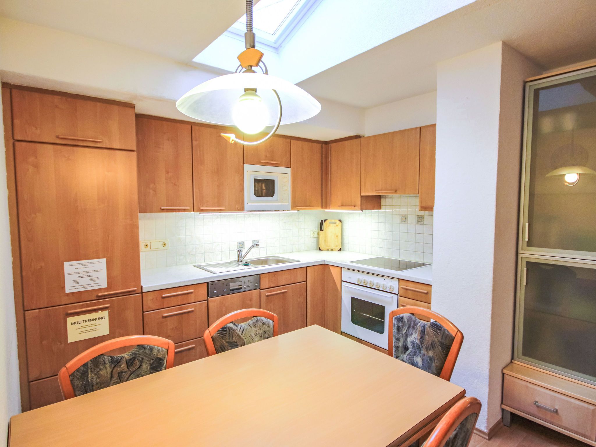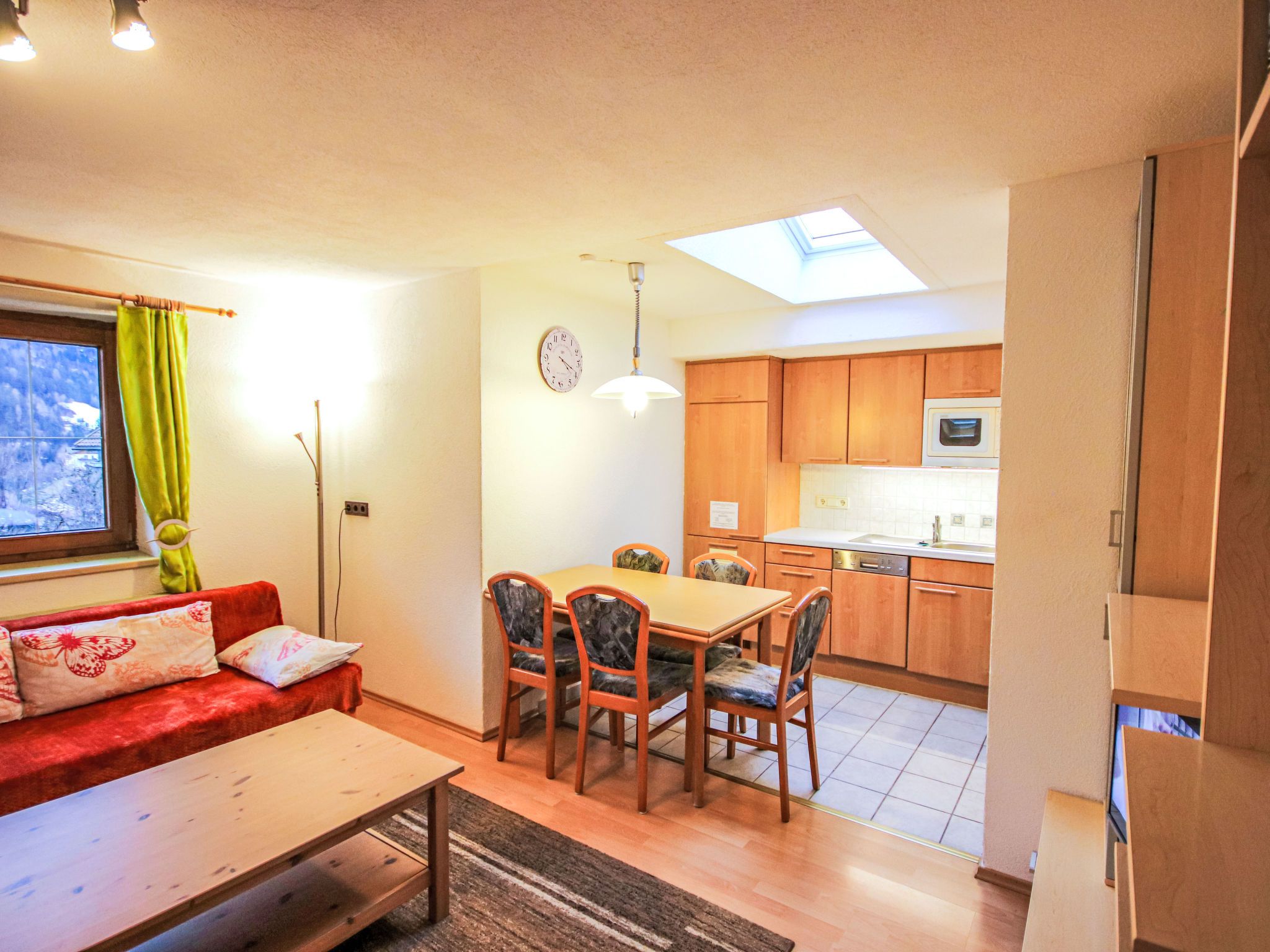 4-Zimmer-Wohnung 65 m2, im Dachgeschoss. Abgeschrägt, geschmackvoll eingerichtet: Eingang. 1 Doppelzimmer. 1 kleines Zimmer mit 1 franz. Bett (140 cm). 1 kleines Zimmer mit 1 franz. Bett (160 cm). Grosses Wohnzimmer mit Sat-TV und Radio. Offene Küche (Backofen, Geschirrspüler, 4 Glaskeramikplatten, Mikrowelle) mit Esstisch. Bad/Dusche/WC. Abstellkammer. Sicht auf die Berge. Zur Verfügung: Internet (Wireless LAN, gratis). Bitte beachten: Nichtraucher-Unterkunft. Rauchmelder. Sehr niedrige Raumhöhe im Zimmer mit französischem Bett.