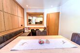 Apart M&M, 6-Zimmer-Wohnung 133 m2, im Obergeschoss. Gemütlich eingerichtet: Esszimmer. 2 Doppelzimmer. 2 Zimmer, jedes Zimmer mit 1 Bett. 1 Zimmer mit 1 Bett und 1 Doppelbett. Küche (Backofen, Geschirrspüler, 4 Glaskeramikplatten, Toaster, Wasserkocher, Mikrowelle, elektrische Kaffeemaschine). Bad/Dusche, Dusche, 2 sep. WC's. Schöne Sicht auf die Berge.