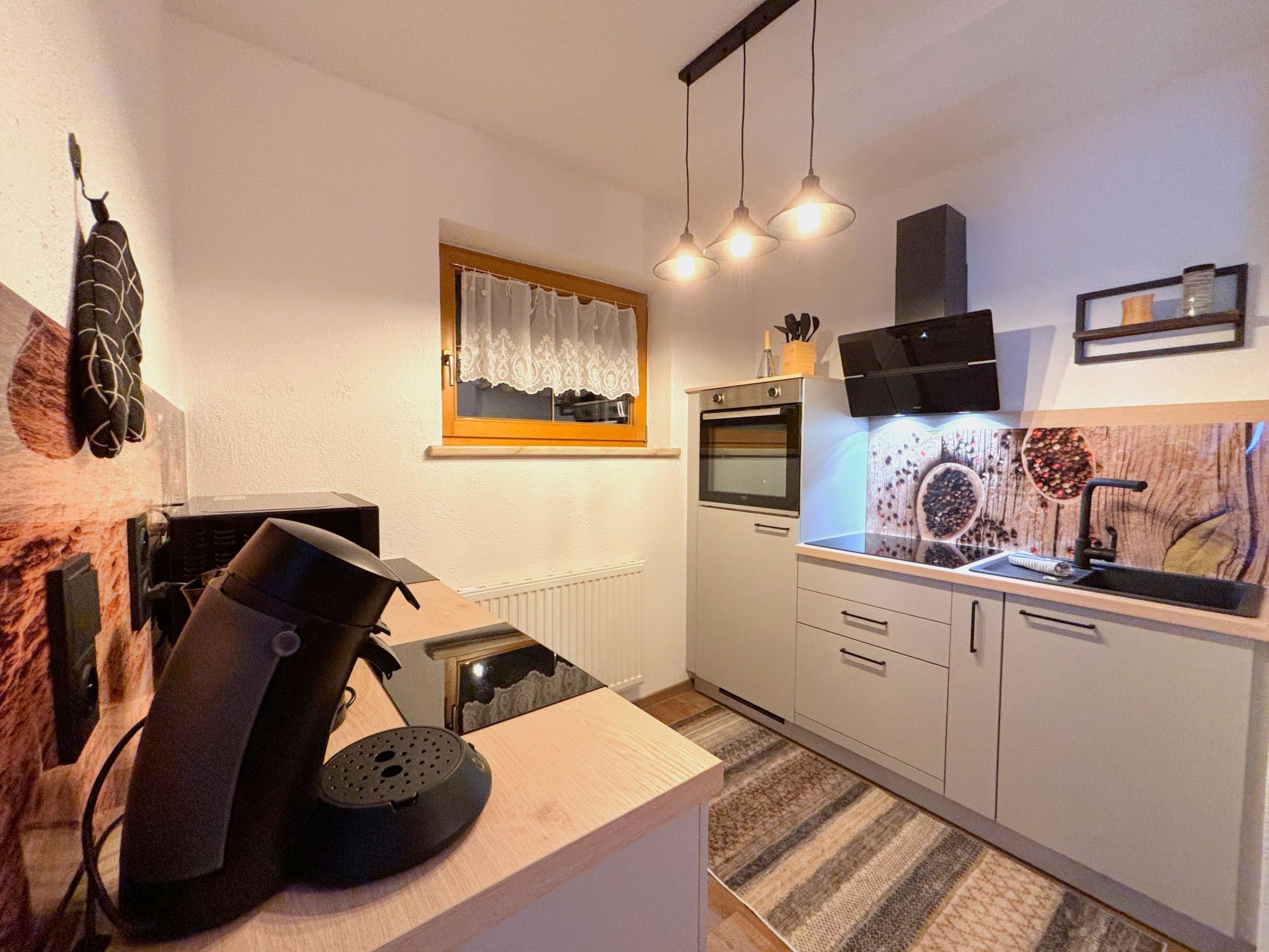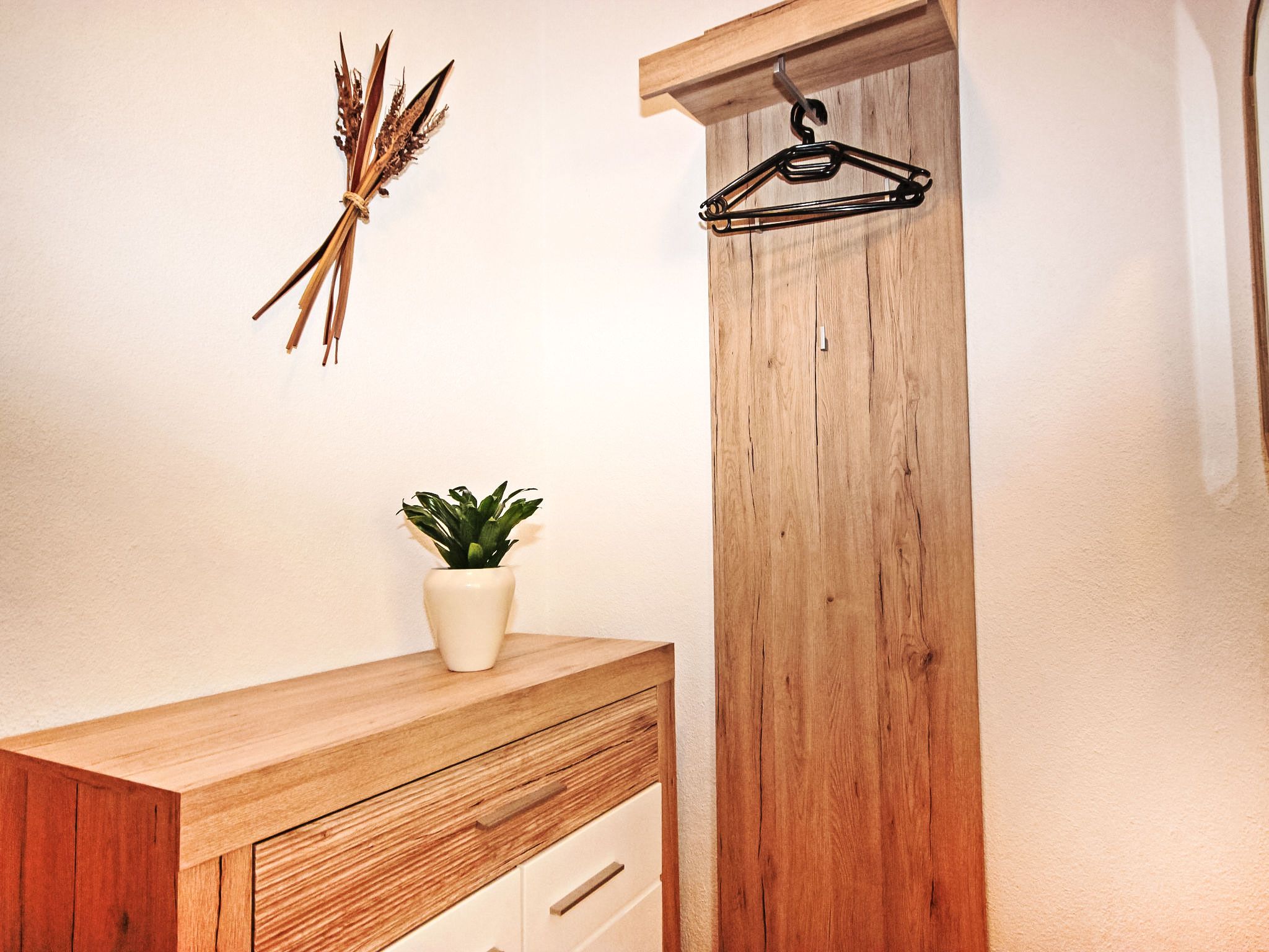 2-Zimmer-Wohnung 60 m2, unteres Geschoss. Schön und gemütlich eingerichtet: Eingang. 1 Doppelzimmer. Ausgang zum Balkon. Wohn-/Schlafzimmer mit 1 Doppeldiwanbett (130 cm, Länge 190 cm), Essecke und Sat-TV (Flachbildschirm). Kleine, offene Küche (4 Kochplatten, Backofen, Mikrowelle, elektrische Kaffeemaschine). Dusche/WC. Balkon. Panoramasicht auf das Tal und die Landschaft. Zur Verfügung: Haartrockner. Internet (WLAN). Bitte beachten: geeignet für Familien. Nichtraucher-Unterkunft. Rauchmelder.
