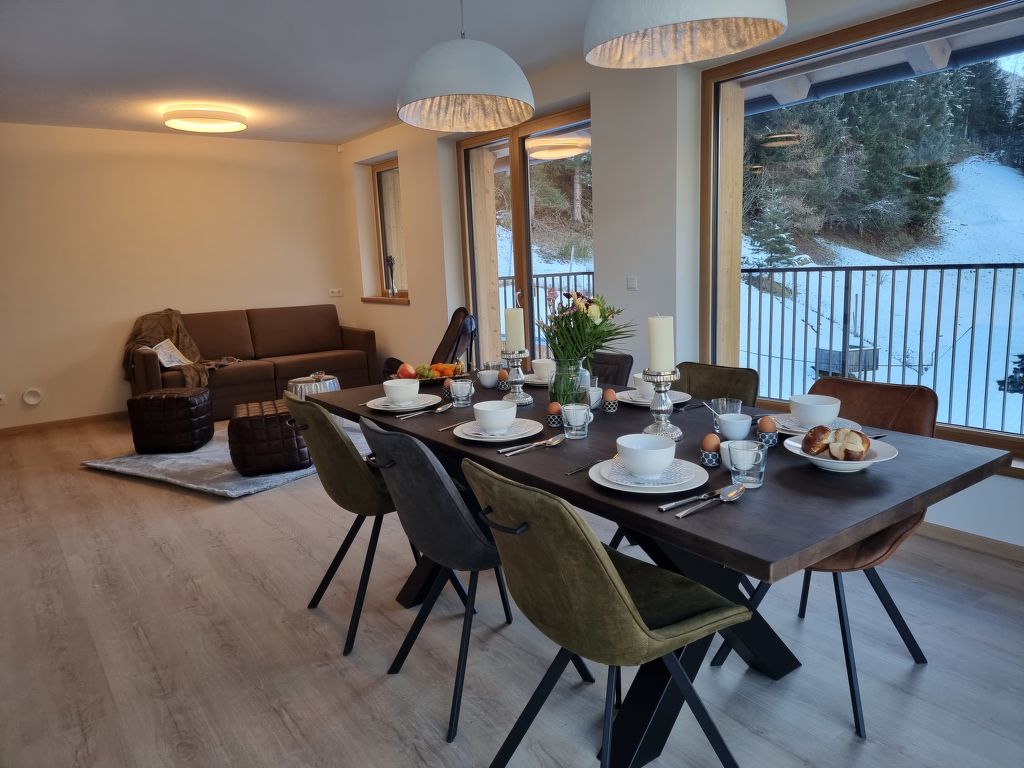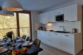 See: Sehr modernes, schönes Appartementhaus Bergschnucke Homes, 1'220 m.ü.M., auf 4 Stockwerken, Baujahr 2022. Oberhalb von See, ruhige, sonnige Lage am Hang, 30 m vom Waldrand, 2 km vom See, 100 m vom Skigebiet. Im Hause: Skiraum, Zentralheizung, Skischuhtrockner. Brötchenservice auf Anfrage. Schmale Zufahrt (Bergstrasse). Im Winter bitte Schneeketten mitbringen. Parkplatz beim Haus. E-Ladestation. Lebensmittelgeschäft 900 m, Supermarkt 2 km, Restaurant 900 m, Bar 2 km, Bäckerei 2 km, Café 2 km, Fahrradverleih 2 km, Bushaltestelle See Schnatzerau 1 km, Bahnstation Landeck-Zams Bahnhof 16.3 km, Thermalbad Ischgl 17 km, Badesee See 2 km. Skilift 2 km, Skipisten 100 m, Skiverleih 2 km, Skibushaltestelle 50 m, Skischule 2 km, Kinderspielplatz 2 km. Nahe gelegene Sehenswürdigkeiten: Badesee See 2 km, Silvretta Hochalpenstraße 28 km. Bekannte Skigebiete sind gut erreichbar: Kappl 8 km, Ischgl 17 km, Galtür 26 km. Bitte beachten: Fahrzeug empfohlen, Fahrstuhl nur bis 3. Stock. Bei guter Schneelage Zufahrt mit den Skiern bis zum Haus. Die Schlüsselübergabe findet bei der Agentur Interhome Group in Kappl statt, 8 km. Weitere Unterkünfte sind buchbar. Die Bettwäsche für das Kinderbett ist selber mitzubringen.