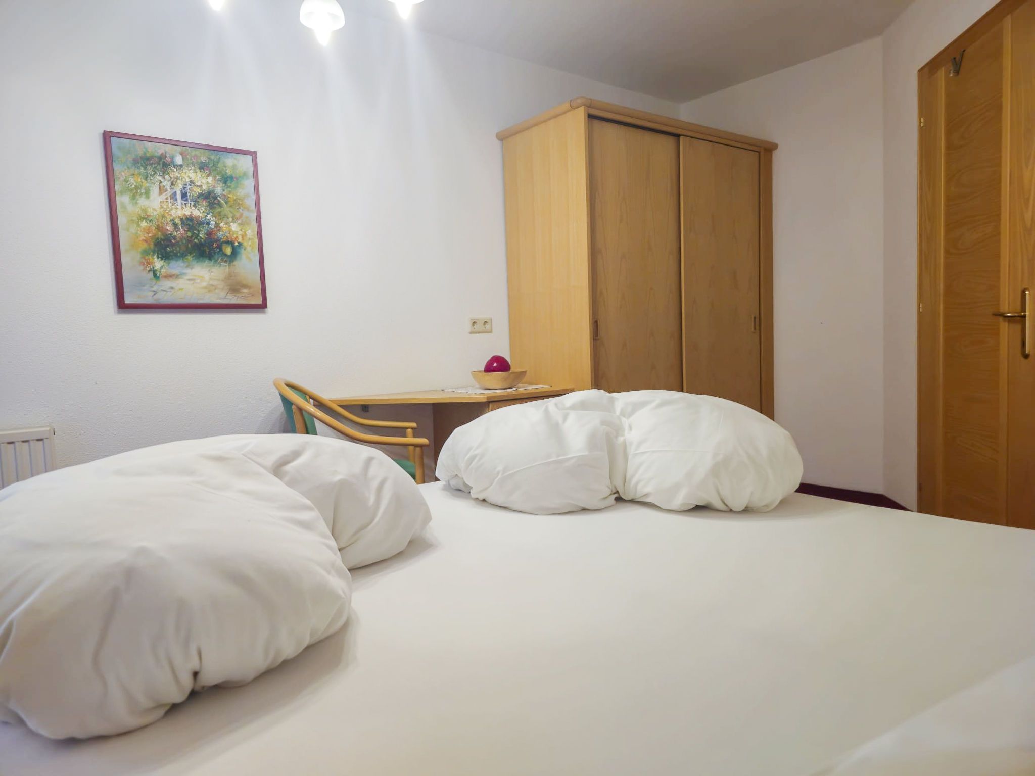 Top 1, 3-Zimmer-Wohnung 48 m2 im 2. Stock. Geräumig, komfortabel und gemütlich eingerichtet: grosses Wohn-/Esszimmer mit Esstisch und Sat-TV (Flachbildschirm). Ausgang zum Balkon. 1 Doppelzimmer. Ausgang zum Balkon. Kleine Küche (4 Kochplatten, Backofen, Wasserkocher, elektrische Kaffeemaschine). Dusche, sep. WC, Doppelwaschbecken. Heizung. Teppichboden. Balkonmöbel. Zur Verfügung: Haartrockner. Bitte beachten: Nichtraucher-Unterkunft.