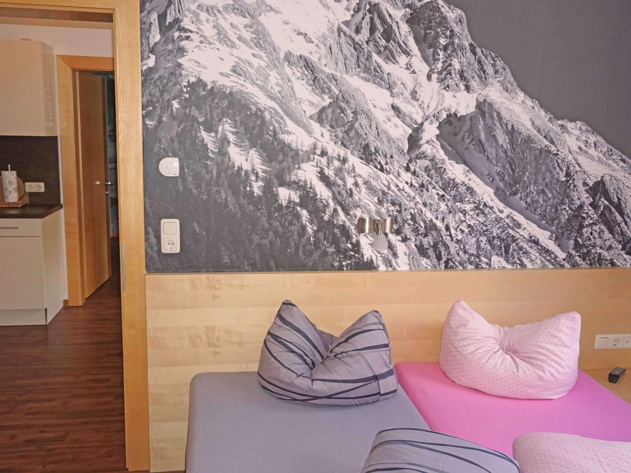 Flirscherblick, 3-Zimmer-Wohnung 50 m2 im 2. Stock. Komfortabel eingerichtet: 2 Doppelzimmer, jedes Zimmer mit Dusche/WC und Sat-TV. Ausgang zum Balkon. Wohnküche (4 Kochplatten, Geschirrspüler, Mikrowelle). Ausgang zum Balkon. Bodenheizung. Balkon. Terrassenmöbel. Sicht auf die Berge. Zur Verfügung: Haartrockner. Internet (Wireless LAN, gratis). Bitte beachten: Nichtraucher-Unterkunft. Rauchmelder.