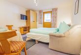 2-Zimmer-Wohnung 50 m2, im Erdgeschoss. Gemütlich eingerichtet: Durchgangszimmer mit 1 Ausziehbett (2 Pers.), Sat-TV. 1 Doppelzimmer mit Waschbecken, Dusche, Sat-TV und Radio. Küche (2 Kochplatten, Backofen, Geschirrspüler, Mikrowelle) mit Esstisch. Dusche/WC. Zur Verfügung: Internet (Wireless LAN, gratis). Bitte beachten: geeignet für Familien. Nichtraucher-Unterkunft. Eigener Eingang, Rauchmelder.
