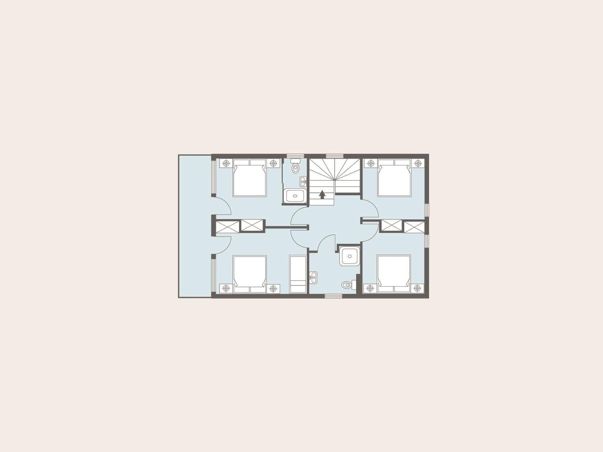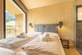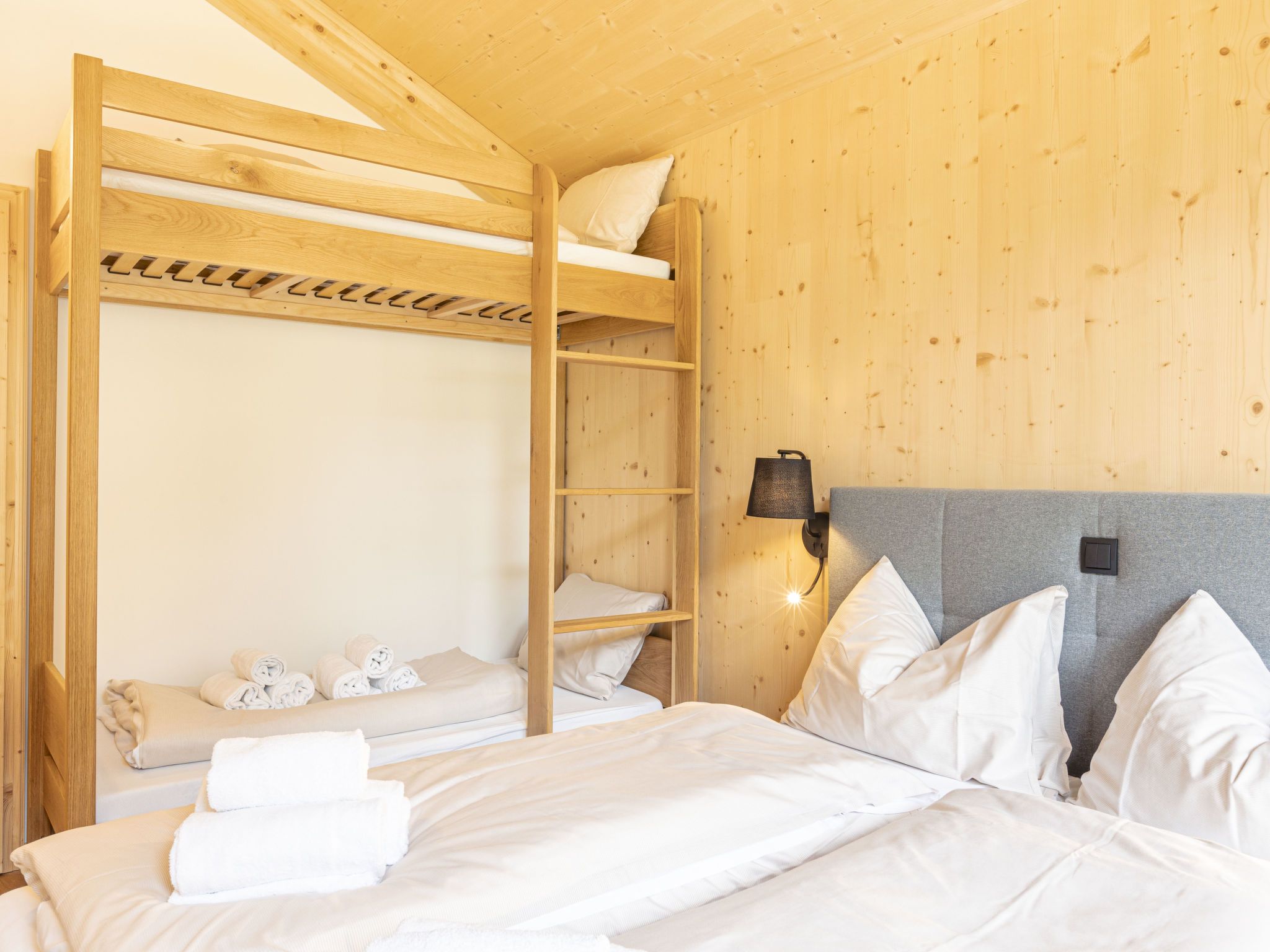 Superior mit 4 Schlafzimmern & Wellness, 5-Zimmer-Chalet 130 m2. Hell, modern und geschmackvoll eingerichtet: Wohn-/Esszimmer mit Esstisch und Sat-TV. 2 Doppelzimmer. 1 Doppelzimmer mit 1 x 2 Etagenbetten. 1 Doppelzimmer mit Dusche/WC. Offene Küche (Backofen, Geschirrspüler, 4 Glaskeramikplatten, Tiefkühler, elektrische Kaffeemaschine). 2 Duschen/WC, sep. WC. Terrasse. Terrassenmöbel. Schöne Sicht auf die Landschaft. Zur Verfügung: Sauna. Bitte beachten: Nichtraucher-Haus. Beim Mietobjekt handelt es sich um ein Typenhaus bzw. Um eine Typenwohnung. Die Chalets verfügen über eine kleine Indoor Sauna und eine Außenbadewanne mit Sprudelfunkton.