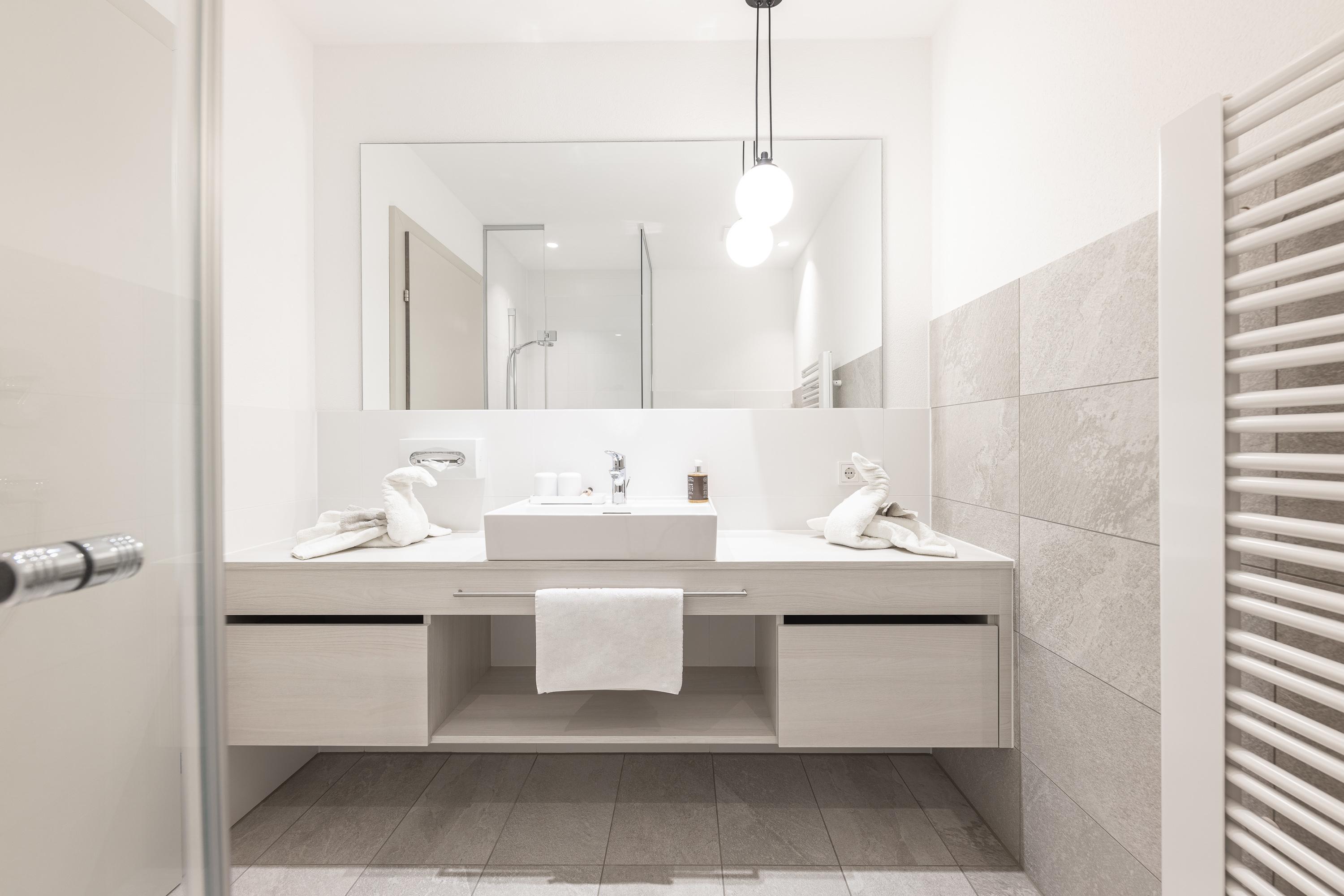 Apartment 3 mit ca. 55 m² - mit westseitiger Terrasse: Vorraum mit Garderobe und Staumöglichkeit; Wohnküche mit Essplatz und Schlafmöglichkeit, 4-Platten-Herd, Mikrowelle, Spülmaschine, Filterkaffeemaschine, Teekocher, Toaster, Geschirr, Kochutensilien uvm.; 2 Badezimmer mit Dusche/WC; 2 Schlafzimmer mit Doppelbetten; Das Appartement befindet sich im Tiefparterre mit Terrasse.