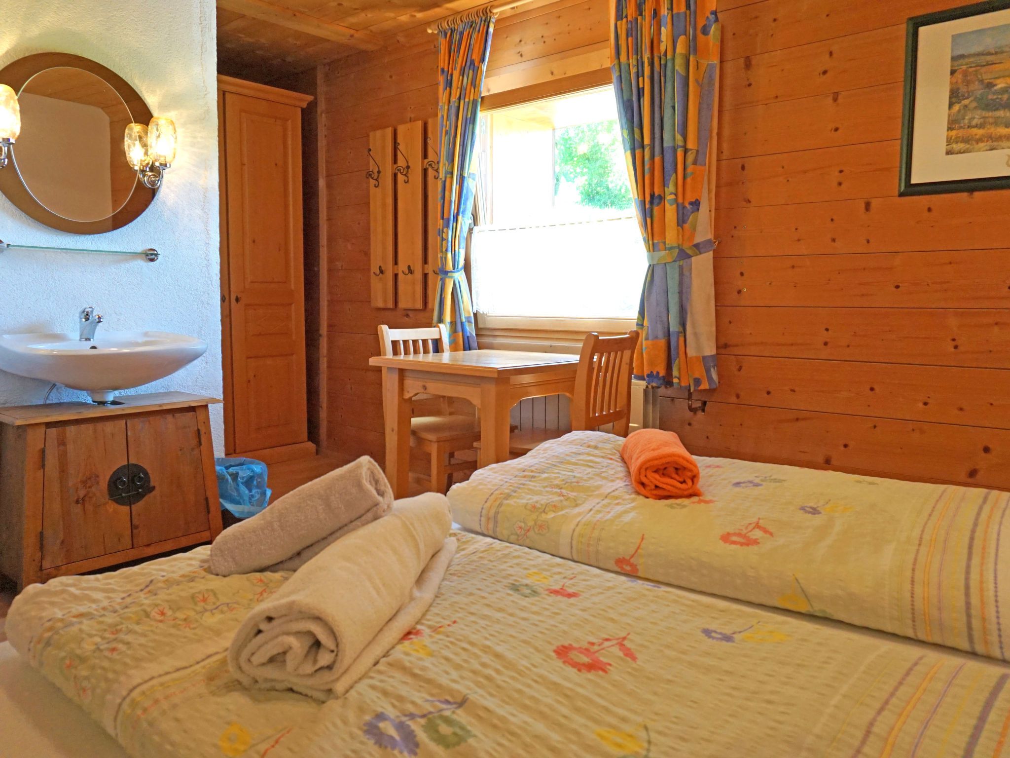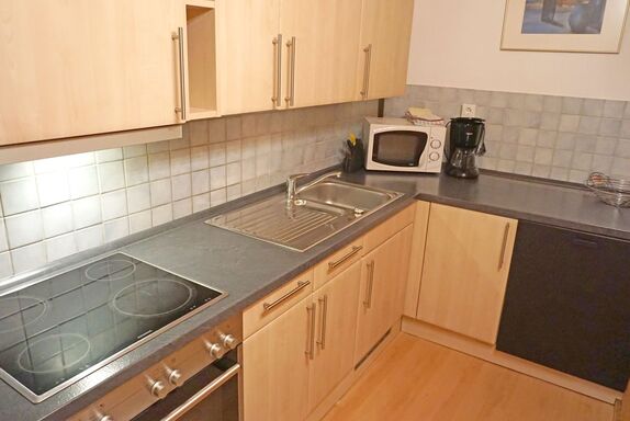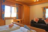 4-Zimmer-Wohnung 120 m2, im Erdgeschoss. Komfortabel und gemütlich eingerichtet: 1 Doppelzimmer mit Waschbecken. 1 Doppelzimmer mit Dusche/WC. 1 Zimmer mit 1 Doppelbett und 1 Ausziehbett (2 Pers.). Wohnküche (Backofen, Geschirrspüler, 4 Glaskeramikplatten, Mikrowelle) mit Essecke und Sat-TV. Dusche, sep. WC. Zur Verfügung: Internet (WLAN, gratis). Bitte beachten: Maximal 1 Haustier/Hund erlaubt. Rauchmelder. 1 Doppelzimmer hat einen begehbaren Schrankraum. Die Wohnung verfügt über einen eigenen Eingang. Kein Fenster in der Wohnküche vorhanden.
