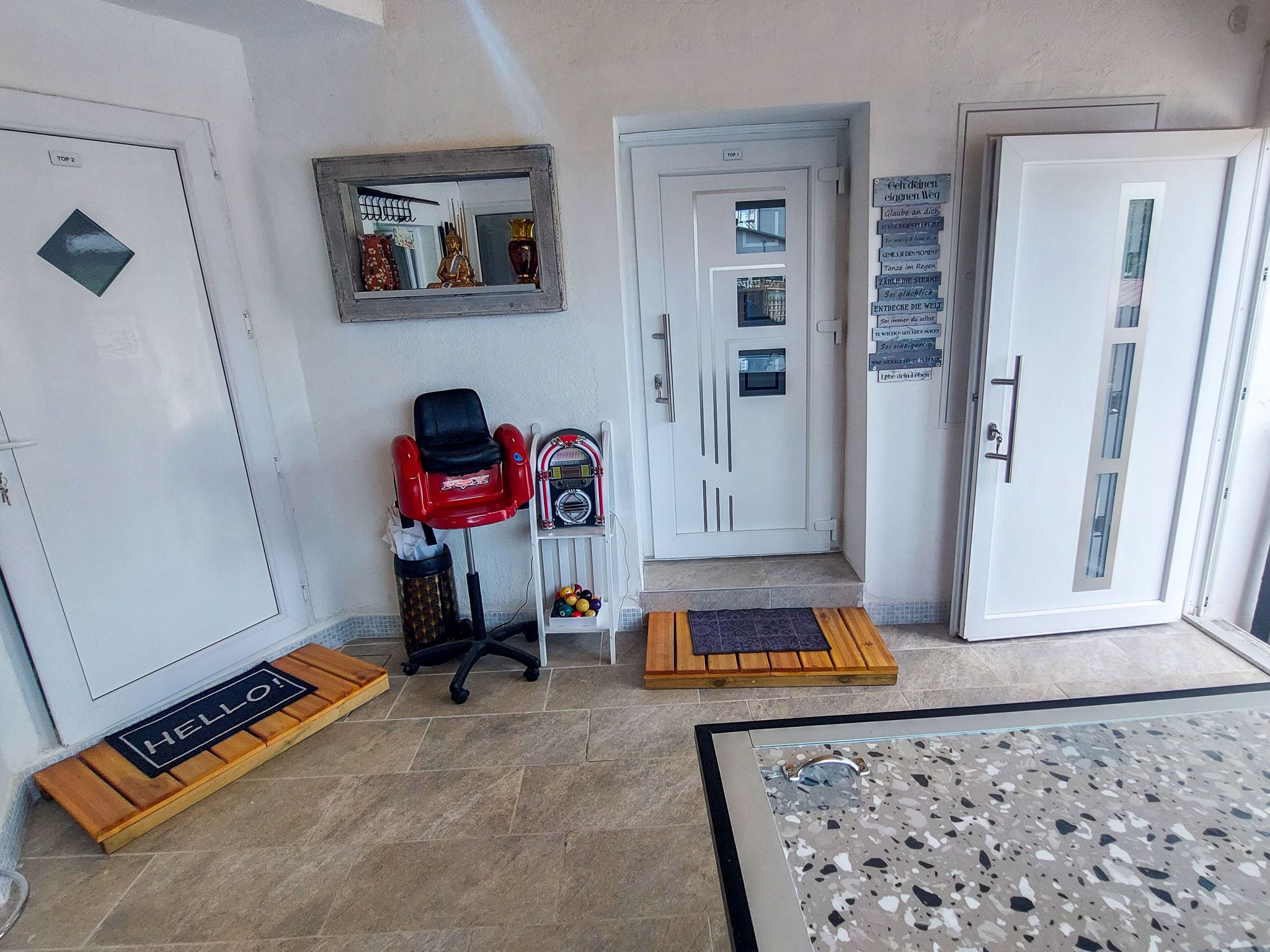 Freistehendes Dreifamilienhaus Garden, auf 2 Stockwerken, renoviert im Jahre 2022. 3 Wohnungen im Ferienhaus. Am Ortsrand, ausserhalb des Ortes, 5 km vom Zentrum von Kirchschlag, im Bezirk Oberpullendorf, ruhige, sonnige Lage, 100 m vom Waldrand, 100 m vom Bach, im Grünen. Zur Mitbenutzung: Grundstück (eingezäunt), wunderschöner Garten zum Entspannen, Teich. Laube, Terrasse, Gartenmöbel, Grill. Im Hause: Zentralheizung. Öffentliche Parkplätze auf der Strasse. Supermarkt 100 m, Einkaufszentrum 14 km, Bäckerei 100 m, Zentrum zu Fuss in 5 Minuten erreichbar, Bushaltestelle 200 m, Freibad 5 km, Thermalbad Sonnentherme Lutzmannsburg 30 km, Badesee Naturbadesee St. Martin 12 km. Wanderwege ab Haus 10 m, Kinderspielplatz 250 m. Nahe gelegene Sehenswürdigkeiten: Burgruine Kirchschlag 4.5 km, Burg Lockenhaus 20 km, Therme Bad Tatzmannsdorf 27 km, Sonnentherme Lutzmannsburg 30 km, Blaufränkischland 28 km. Wandergebiete: Bucklige Welt 1 km. Bitte beachten: Fahrzeug empfohlen. Be- und Entladen am Ferienhaus möglich. Weitere Unterkünfte sind buchbar. Ferienwohnung Ref. AT7372.100.2 befindet sich auf dem gleichen Grundstück.