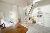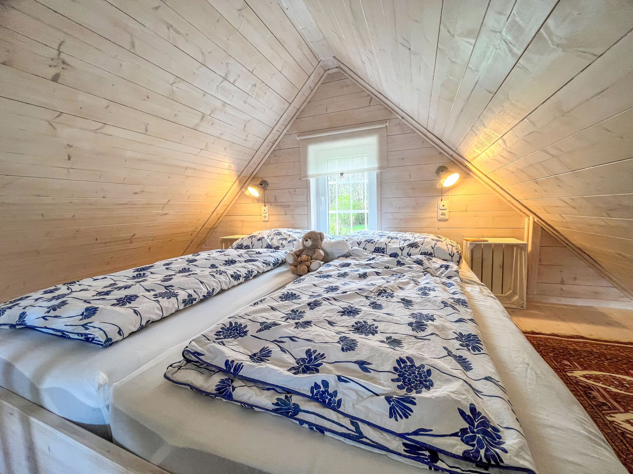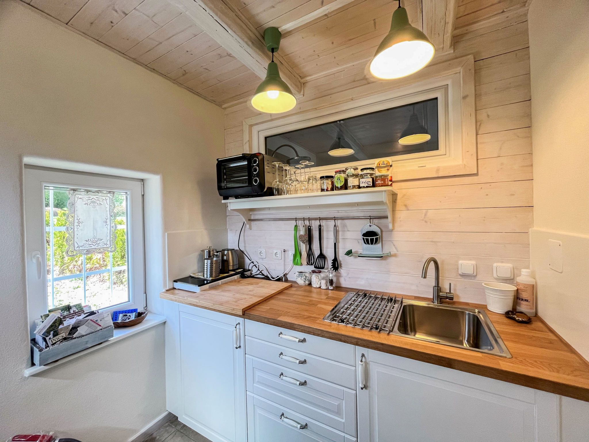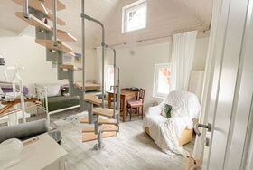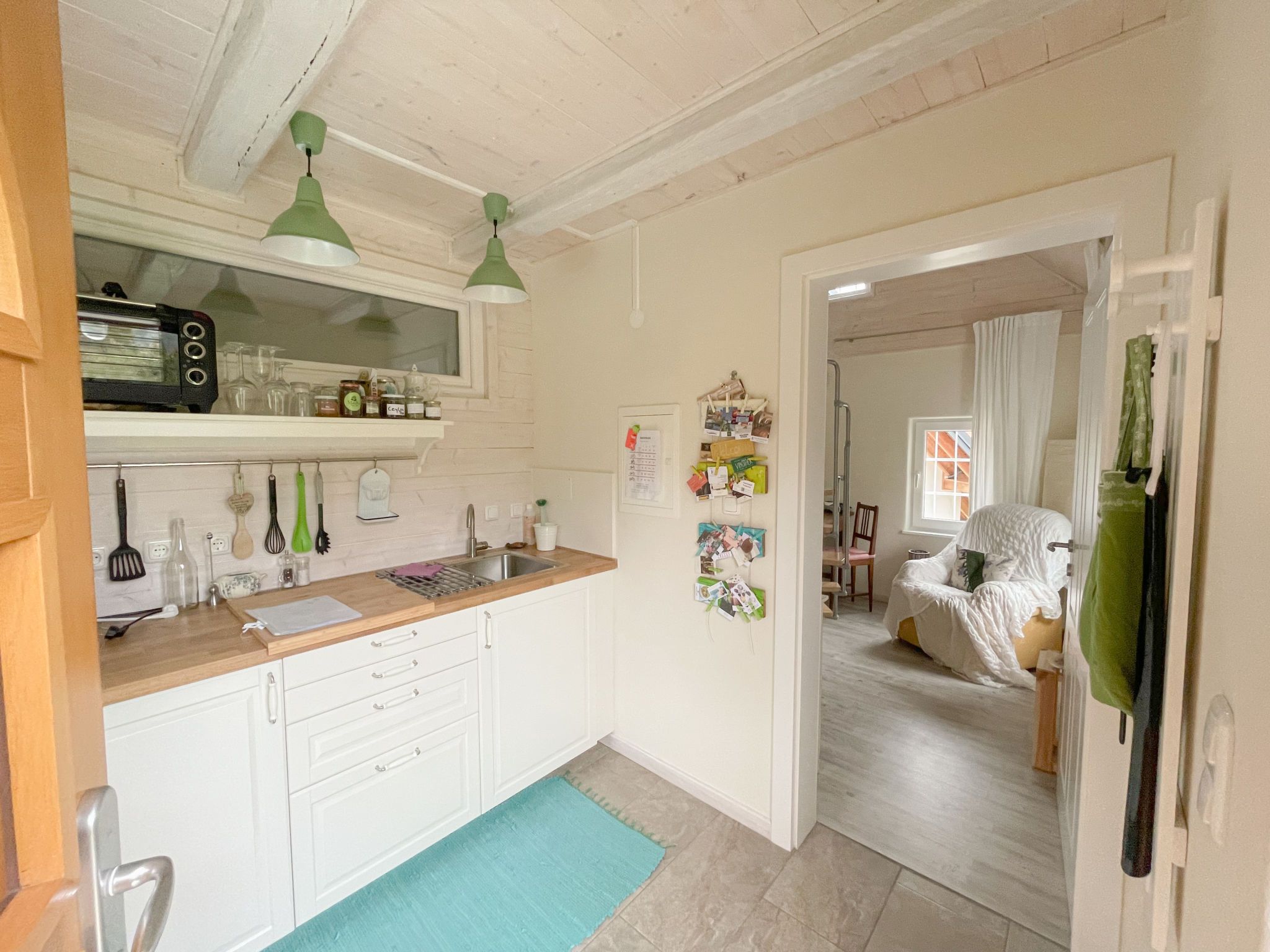 1-Zimmer-Haus 33 m2, im erhöhten Erdgeschoss. Objekt geeignet für 2 Erwachsene. Teilweise abgeschrägt, renoviert im Jahre 2021, geschmackvoll und gemütlich eingerichtet: Wohn-/Esszimmer mit Esstisch und Dusche/WC. Abgeschrägte Galerie mit 1 Doppelbett. Kochnische im Eingang (Mini-Backofen, 2 Induktionskochplatten, Wasserkocher). Parkettboden. Zur Verfügung: Babybett bis 2 Jahre, Haartrockner. Internet (WLAN, gratis). Bitte beachten: Nichtraucher-Haus. Maximal 1 Haustier/Hund erlaubt. Anstelle eines abgeschlossenen Schlafzimmers befinden sich manche Schlafplätze in einem offenen Bereich (Galerie, Nische etc.).