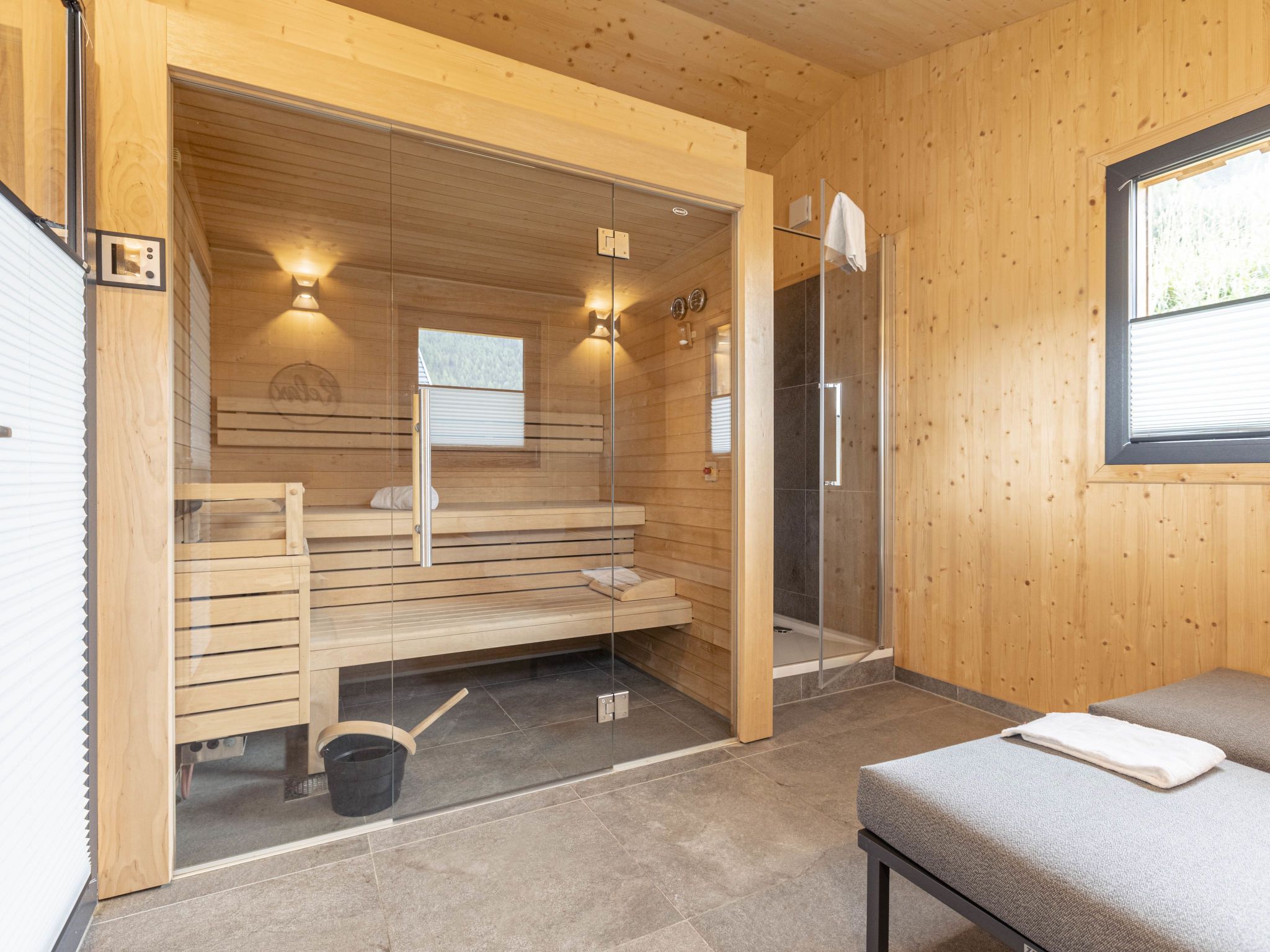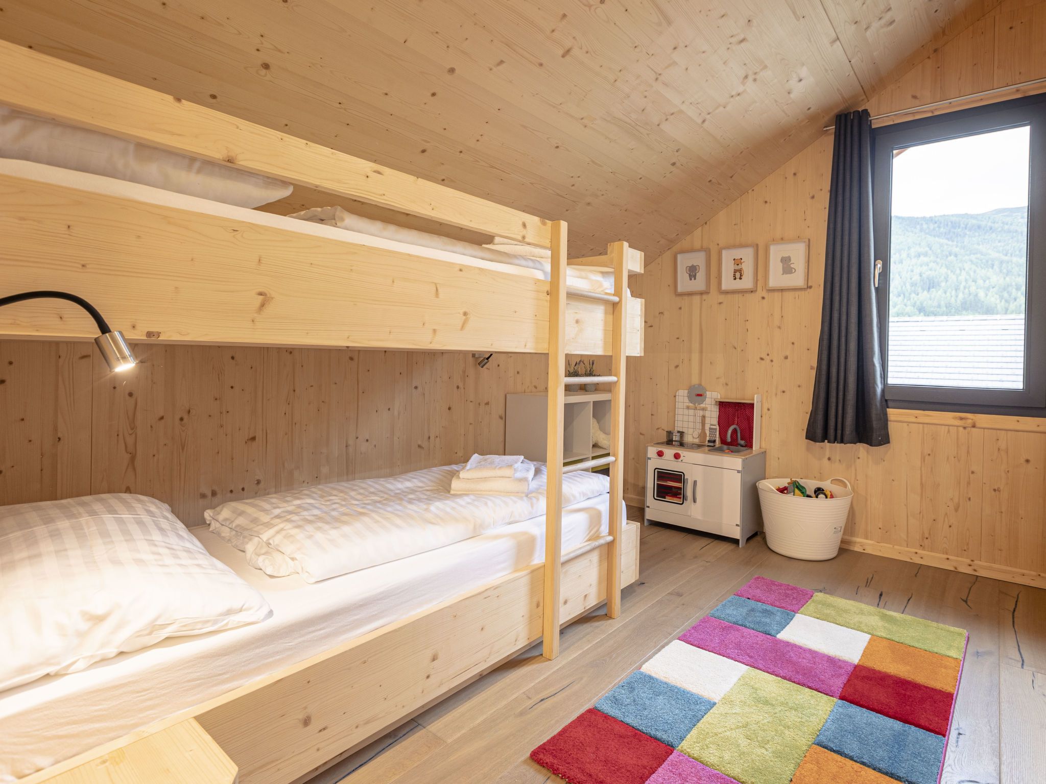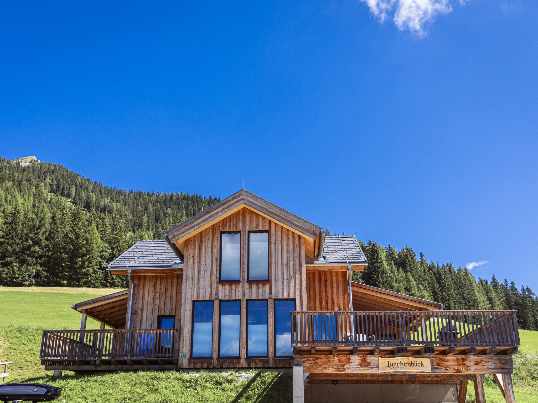 Premium 62 mit Sauna&Sprudelbad, 5-Zimmer-Chalet 140 m2. Geräumig, komfortabel und geschmackvoll eingerichtet: Wohn-/Esszimmer mit Esstisch, Sat-TV und Flachbildschirm. 3 Doppelzimmer. 1 Kinderzimmer mit 1 x 2 Etagenbetten. Offene Küche (Backofen, Geschirrspüler, 4 Glaskeramikplatten, Mikrowelle, elektrische Kaffeemaschine). 3 Duschen/WC, Whirlbadewanne. Holzdielenboden. Terrasse, grosse. Sehr schöne Sicht auf die Berge und die Landschaft. Zur Verfügung: Sauna. Internet (Wireless LAN, gratis). Parkplatz beim Haus. Bitte beachten: Nichtraucher-Haus. Rauchmelder.