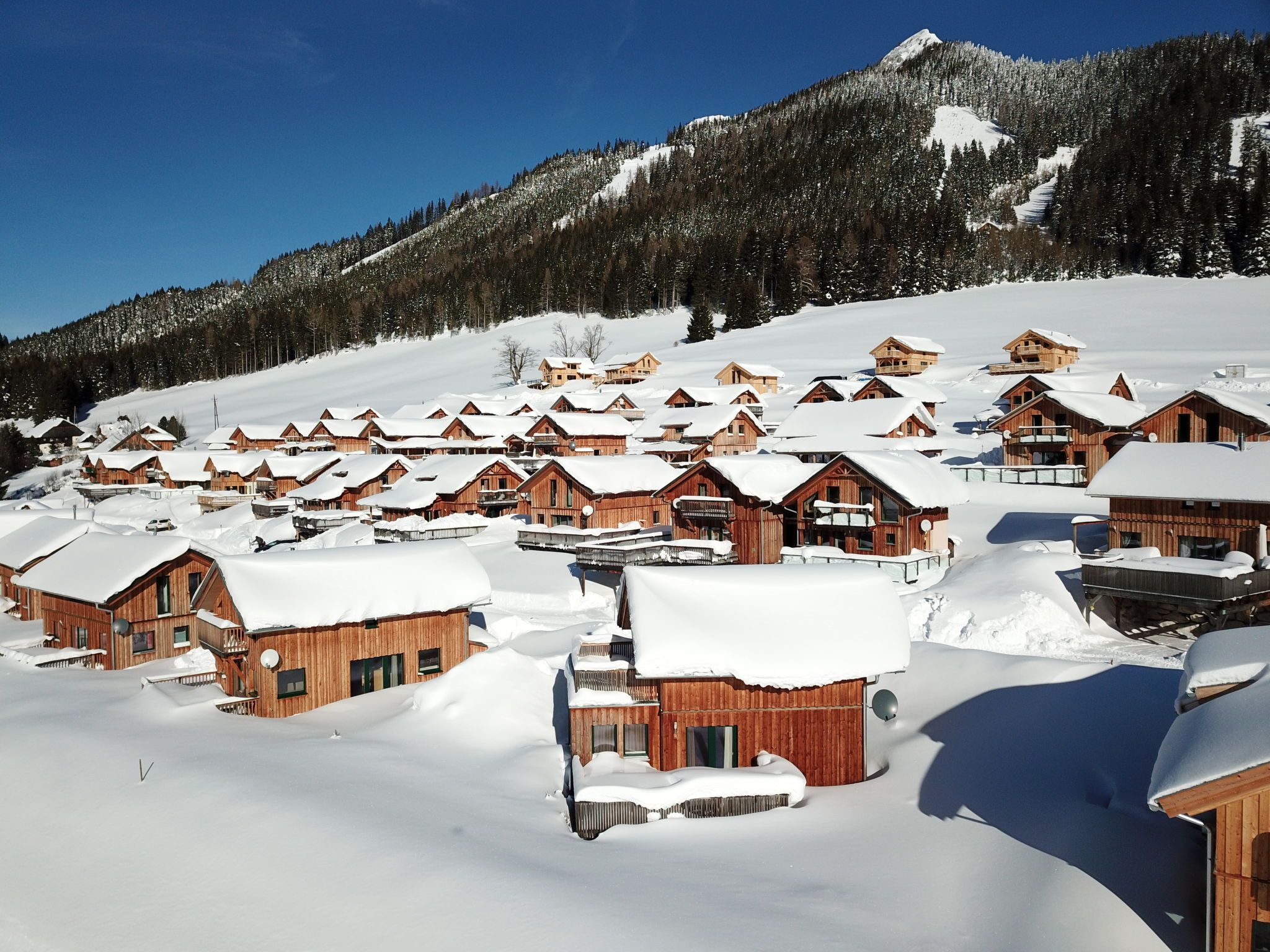 Hohentauern: Im 1. österreichischen Sportdorf erwartet Sie ein gemütliches Feriendorf Almdorf Hohentauern by Alps Resorts, 1'300 m.ü.M.. 300 m vom Zentrum, sonnige Lage, 15 km vom See, 300 m vom Skigebiet. Zur Mitbenutzung: naturbelassenes Grundstück. In der Anlage: Empfang, Wireless LAN, Zentralheizung. Im Winter bitte Schneeketten mitbringen. Parkplatz beim Haus, öffentliche Parkplätze. Lebensmittelgeschäft 300 m, Restaurant 250 m, Bahnstation Selzthal 8 km, Thermalbad AQUALUX Fohnsdorf 36 km, Badesee Gaishorn am See 15 km. Golfplatz (18 Loch) 35 km, Skilift, Skisportanlagen, Skipisten 300 m, Skischule 1.5 km, Langlaufloipe 300 m. Nahe gelegene Sehenswürdigkeiten: Pfahlbaudorf 1 km, Schaubergwerk Oberzeiring 22 km, Red Bull Ring Spielberg 35 km. Bekannte Skigebiete sind gut erreichbar: Lachtal, Kreischberg. Wandergebiete: Gesäuse, Triebener Tauern. Bitte beachten: Bei guter Schneelage Zufahrt mit den Skiern bis zum Haus.
