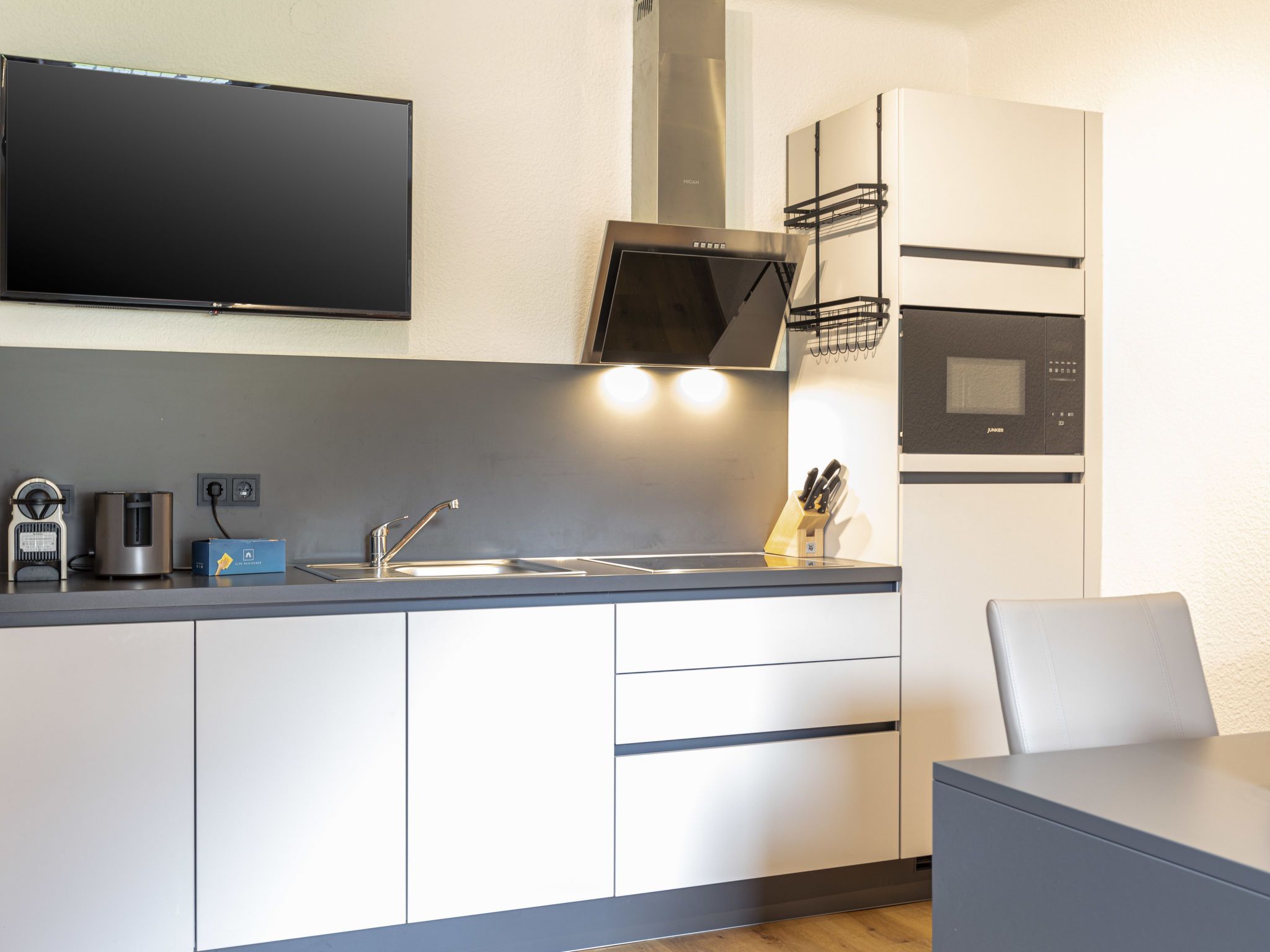 für bis zu 2 Personen, 2-Zimmer-Wohnung 35 bis 40 m2. Hell, modern eingerichtet: 1 Doppelzimmer. Wohnküche (Geschirrspüler, 4 Glaskeramikplatten, Toaster, Mikrowelle, elektrische Kaffeemaschine, Kapseln für die Kaffeemaschine (Nespresso) extra). Dusche/WC. Holzdielenboden. Balkon oder Terrasse. Balkonmöbel. Sehr schöne Panoramasicht. Zur Verfügung: Internet (WLAN, gratis). Bitte beachten: Nichtraucher-Unterkunft. Maximal 1 Haustier/Hund erlaubt. Rauchmelder. Beim Mietobjekt handelt es sich um ein Typenhaus bzw. Um eine Typenwohnung. EZ152