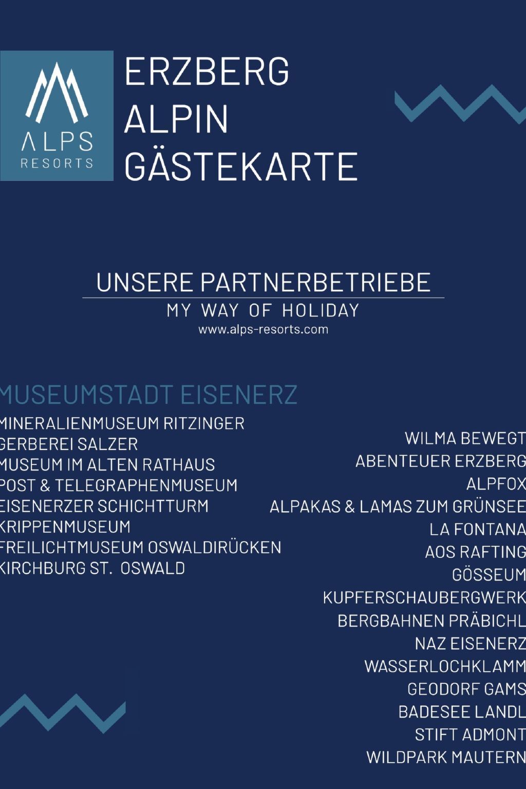 Hier wurde eine historische Bergarbeitersiedlung behutsam für den Tourismus adaptiert. Moderne, komfortable Ferienanlage Erzberg Alpin by Alps Resorts. 3 km vom Zentrum, sonnige, erhöhte Lage, 1.5 km vom See, 11 km vom Skigebiet. Zur Mitbenutzung: grosser Garten mit Pflanzen und Bäumen, Liegewiese. Kinderspielplatz, begrünter Innenhof. In der Anlage: Empfang, Wireless LAN, Zentralheizung, Waschmaschine (zur Mitbenutzung, extra). Frühstück und Halbpension (extra). Parkplatz beim Haus. E-Ladestation. Supermarkt 1.5 km, Restaurant 200 m, Tauchzentrum 6 km, Hallenbad 3 km, See Leopoldsteiner See 1.5 km. Sportzentrum 100 m, Skisportanlagen 11 km, Langlaufloipe 6 km, Eisfeld 1.5 km. Nahe gelegene Sehenswürdigkeiten: Abenteuer Erzberg 5 km, Naturpark Gesäuse 12 km, Schaubergwerk Radmer 17 km. Bekannte Skigebiete sind gut erreichbar: Skigebiet Präbichl 12 km. Wandergebiete: Hochschwab. Bitte beachten: Fahrzeug empfohlen. Das Foto ist nur ein Wohnungsbeispiel. Eintritt in das Vitalbad Eisenerz + 1 Stadtführung pro Aufenthalt GRATIS für alle Gäste! Das Vitalbad hat im September wegen Renovierung geschlossen. Erzberg Alpin Gästekarte inkludiert.