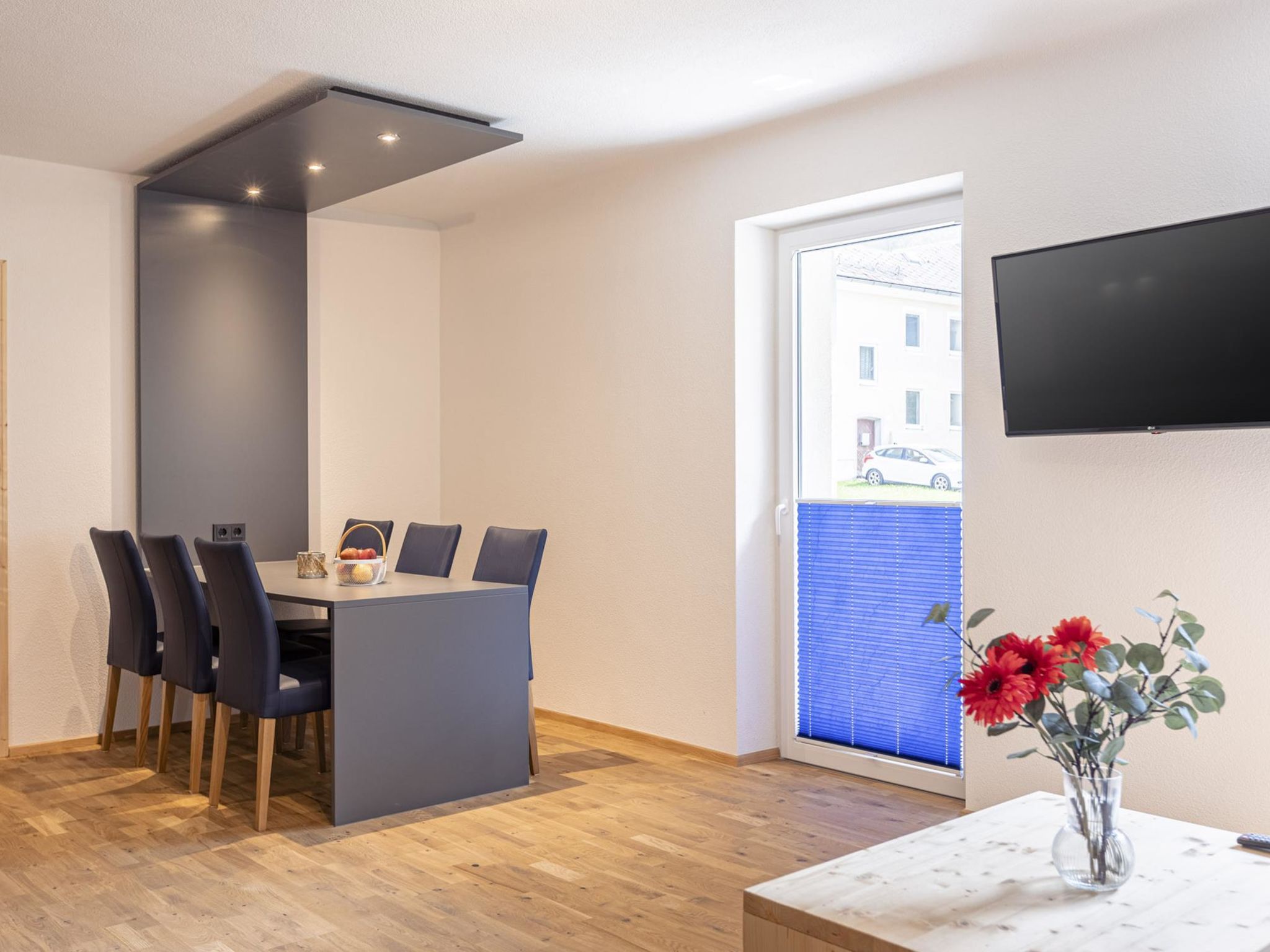 für 5 P. Mit IR-Sauna & Sprudelwanne, 3-Zimmer-Wohnung 59 m2. Hell, modern eingerichtet: Wohn-/Esszimmer mit Essecke und Sat-TV (Flachbildschirm). 1 Doppelzimmer. 1 Zimmer mit 1 Bett und 1 Doppelbett. Offene Küche (Backofen, Geschirrspüler, 4 Glaskeramikplatten, Toaster, Wasserkocher, Mikrowelle, elektrische Kaffeemaschine). Dusche/WC, sep. WC, Whirlbadewanne. Balkon. Balkonmöbel. Schöne Sicht auf die Berge. Zur Verfügung: Sauna. Internet (WLAN, gratis). Bitte beachten: Nichtraucher-Unterkunft. Maximal 1 Haustier/Hund erlaubt. Beim Mietobjekt handelt es sich um ein Typenhaus bzw. Um eine Typenwohnung. Die Sauna ist eine Infrarotkabine!